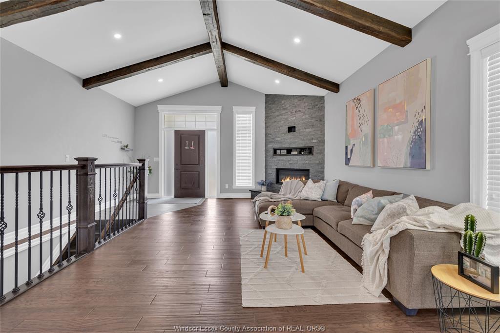 Gorgeous 5 bedroom, 3 bath, raised ranch with bonus room in the heart of belle river. Open concept layout, this home has soaring ceiling and exposed beams and gas fireplace in the main floor living room. The stylish white kitchen features granite counter tops, quality appliances, and a beautiful backsplash. 2 spacious main floor bedrooms and convenient laundry. The bonus room features the elegant primary bedroom and luxurious ensuite. Step out through the kitchen patio doors to the huge backyard, complete with covered porch and deck. The fully finished lower level offers 2 additional bedrooms, a full bathroom, and an oversized family room. This is a great family home.