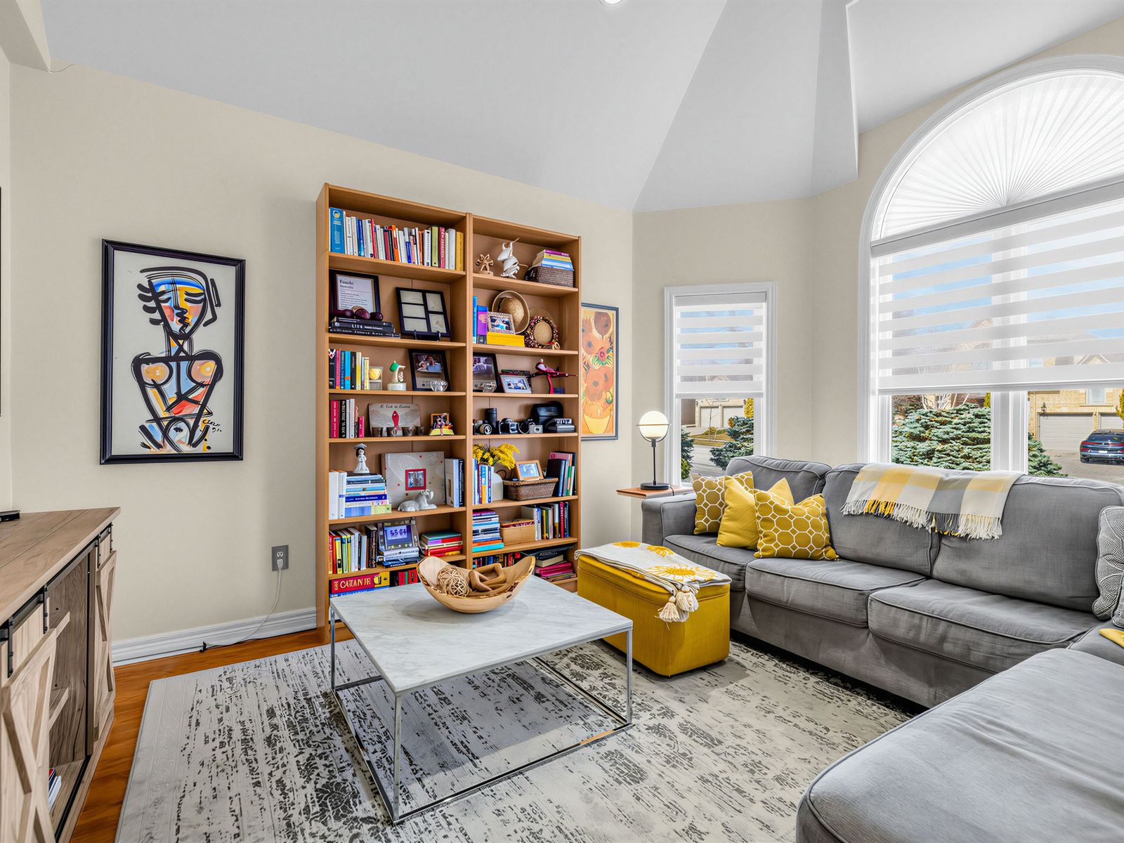 Welcome to this stunning home in the highly sought-after islington woods community. Step into elegance starting with the custom designed front door. This beautifully maintained residence featuring a practical open-concept layout and a grand open-to-above foyer. A luxurious living room. Vaulted ceilings. Spanning the length of the home and elegant french doors creates a bright and private living room. The spacious family room also features a cozy gas fireplace, perfect for both relaxing and entertaining. The modern chefs kitchen is equipped with quartz countertops, ceramic backsplash, stainless steel appliances, and two built-in ovens, seamlessly flowing into a bright breakfast area with a walkoutto the backyard. Step outside to a beautifully landscaped yard with two stone patio seating areas,offering a private, resort-style setting. Upstairs, the expansive primary bedroom features a luxurious 6-piece ensuite, while another bedroom enjoys access to a 4-piece semi-ensuite. The partially finished basement provides additional living space with a large recreation area, 3-piece bathroom, oversized cold room, and plenty of storage. Additional highlights include a main floor laundry room with built-in storage units, two washersand one dryer, and an in-ground sprinkler system. Located in a prestigious detached only family-friendly neighbourhood, close to top-rated schools, parks, trails, shopping, and restaurants, this exceptional home offers the perfect balance of comfort, luxury, and convenience.