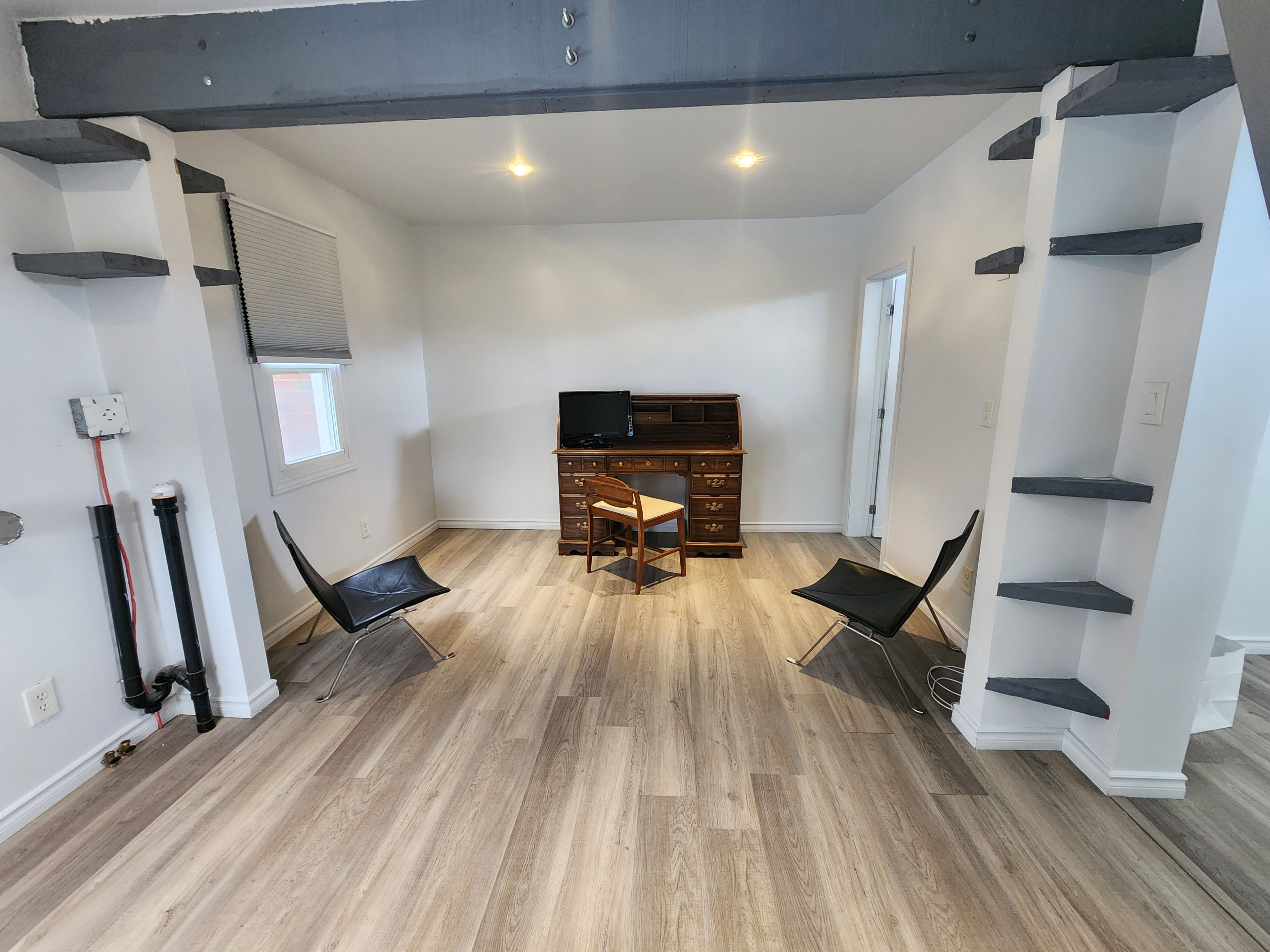 • Cozy living room and loft area with window for extra lighting.