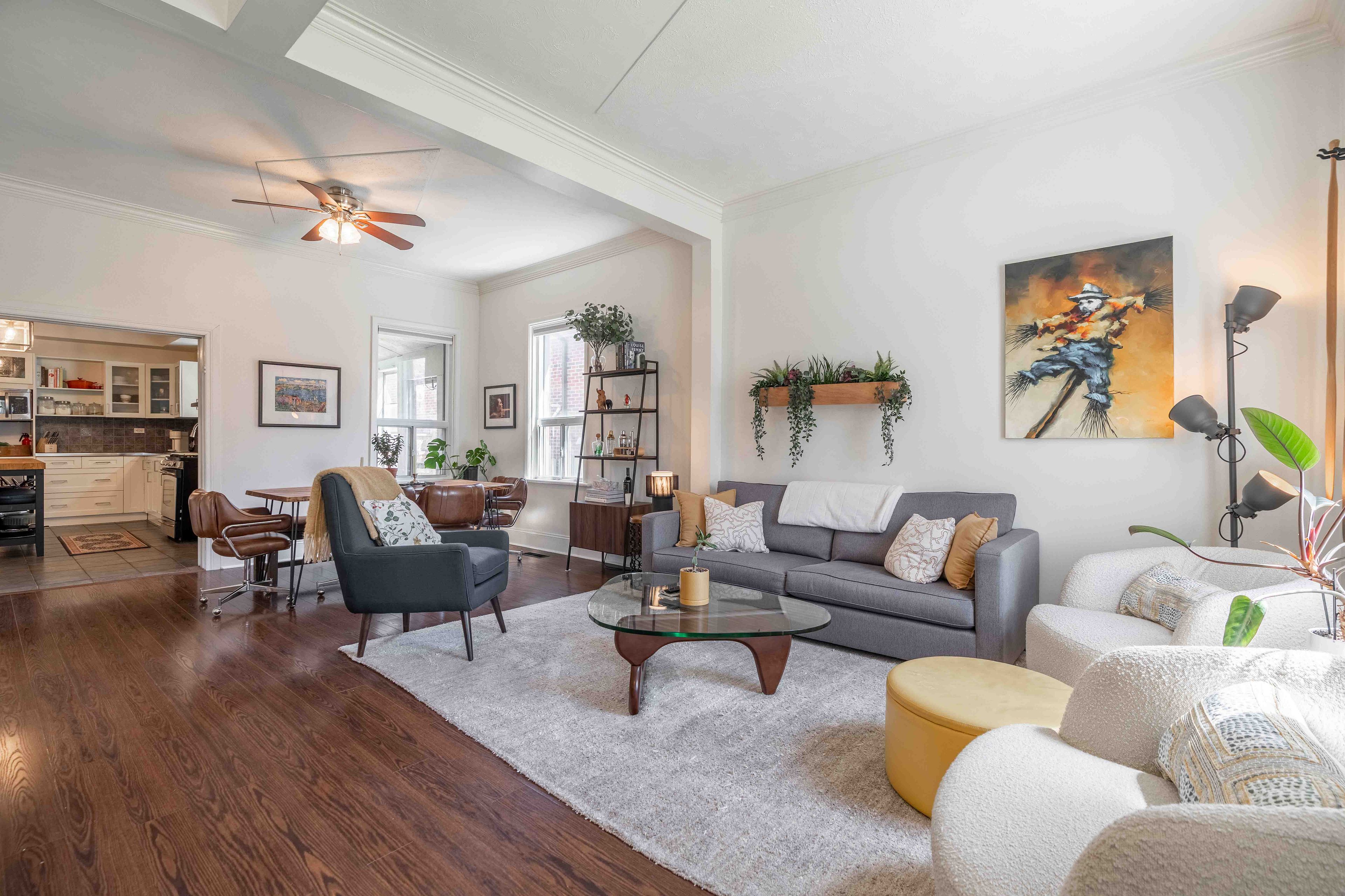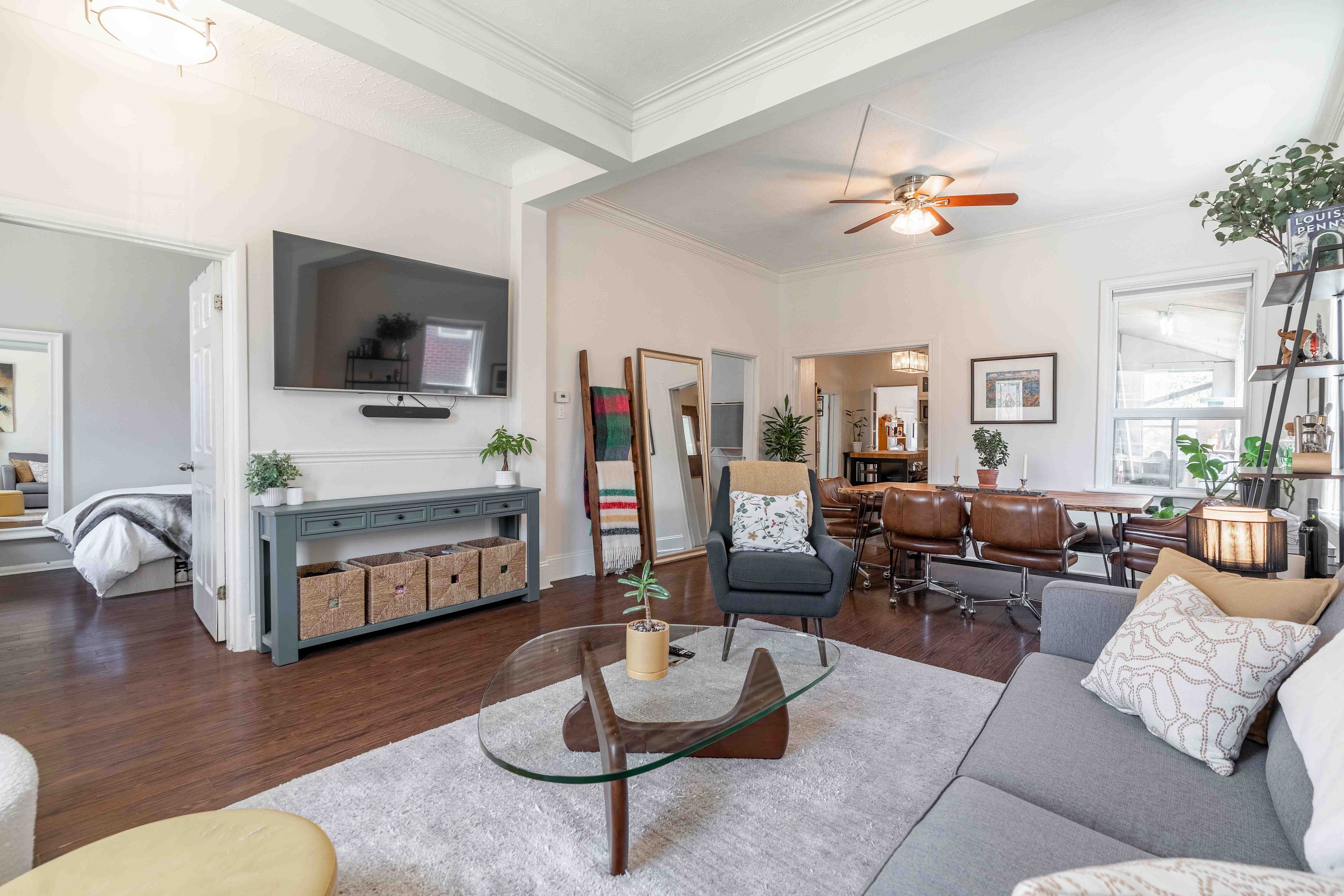 • Spacious two-unit bungalow with 10 ft ceilings and modern finishes.