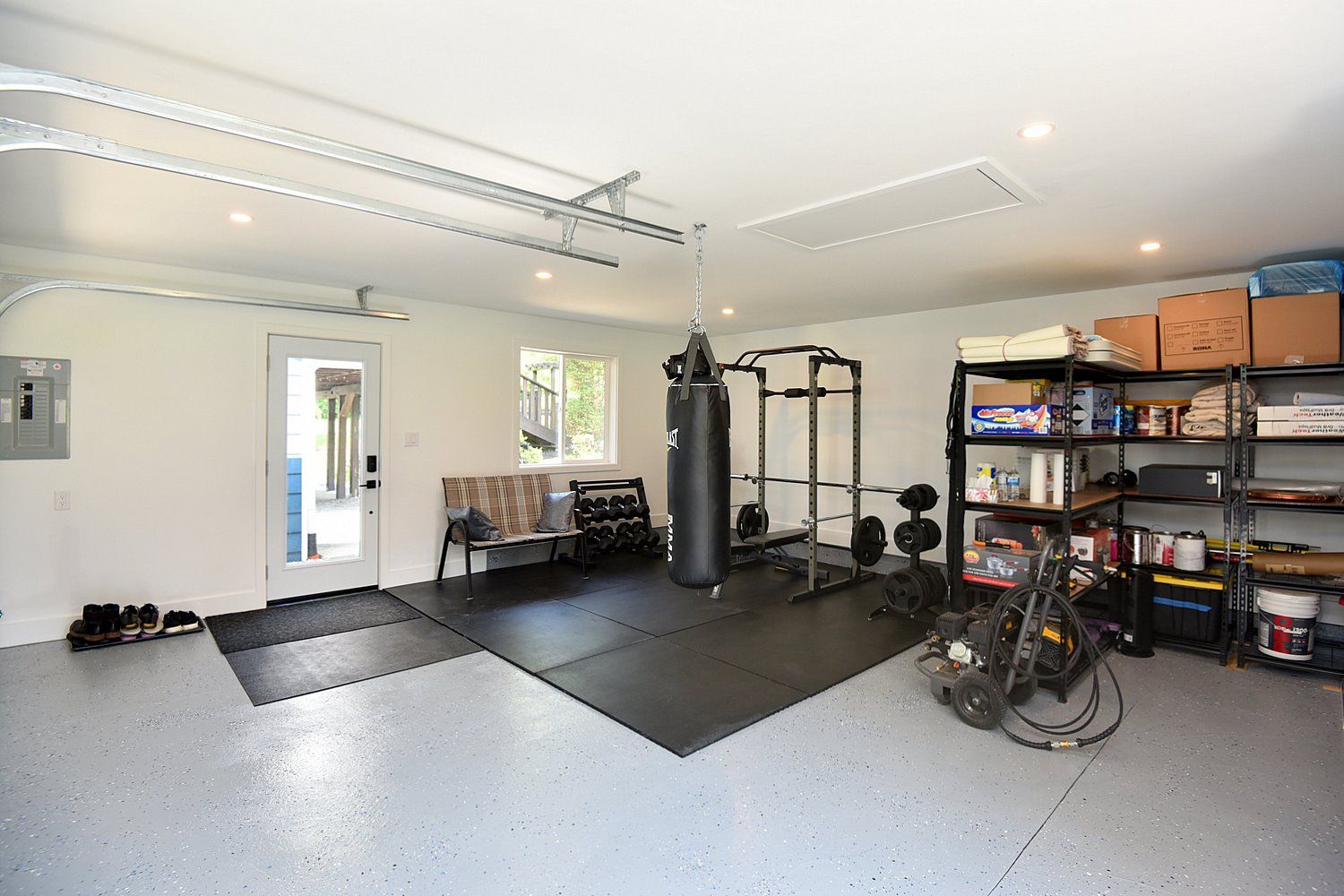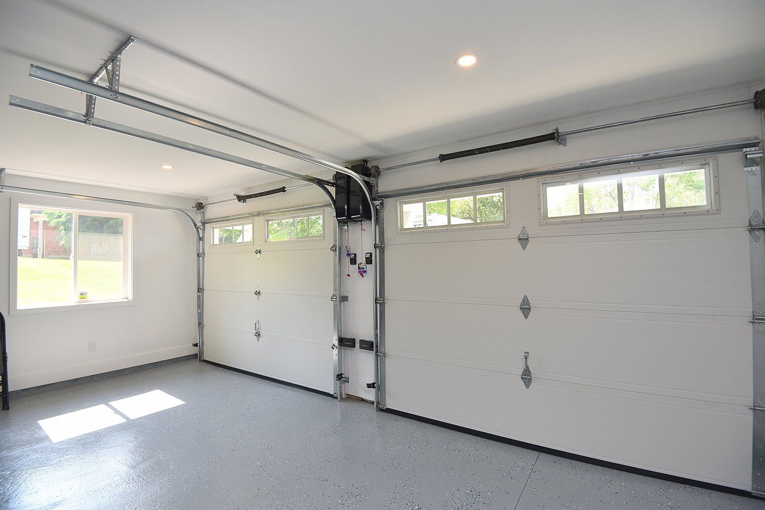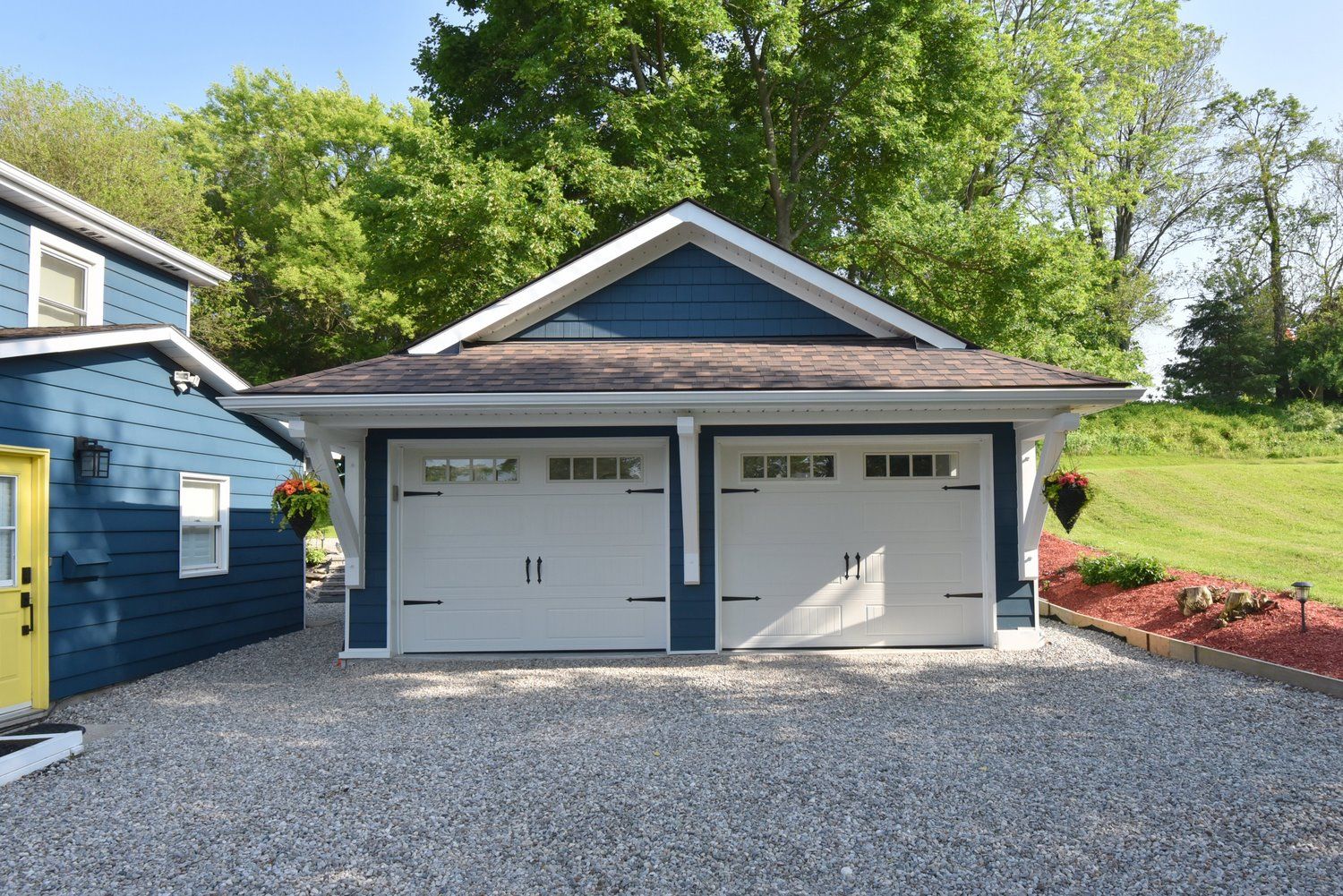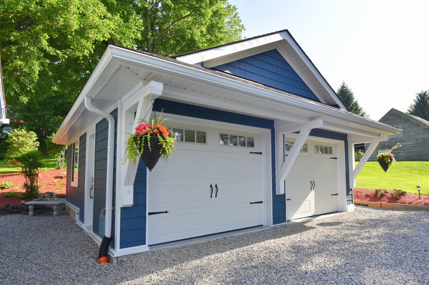 • Newly built detached garage with epoxy floors and ample storage options.