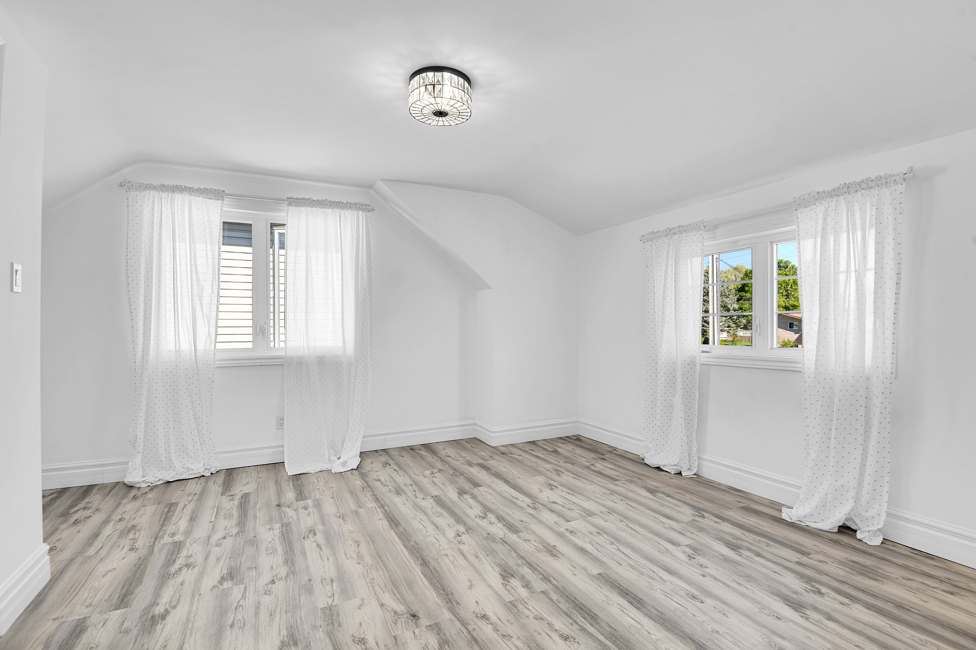 Step into this beautifully renovated 2-storey home, with fresh, updated finishes. Completely renovated on all three levels in 2022, this home features a modern aesthetic with a crisp white exterior and interior accented by striking black trim, creating a clean and timeless look throughout. The main floor offers a convenient bedroom, perfect for guests or home office use, while the second level features two additional bedrooms, including a primary suite with a charming 2-piece ensuite. A fully finished basement adds even more space with a fourth bedroom, and 3pc bath with new shower enclosure and laundry, ideal for growing families or added privacy. Situated in a highly-regarded north end neighborhood, this property boasts a rare and spectacular quadruple lot spanning 1. 75 acres, backing directly onto chevrier park. The res20 zoning allows for a separate residence to be built on this property, and also allows for commercial uses such as community center, day care center, school, seniors residence and more! The list of updates includes everything from new windows and lvp flooring throughout, new gas fireplace, new roof, siding and rear privacy deck, and more! Call today for the full list of renovations and to book your private showing!