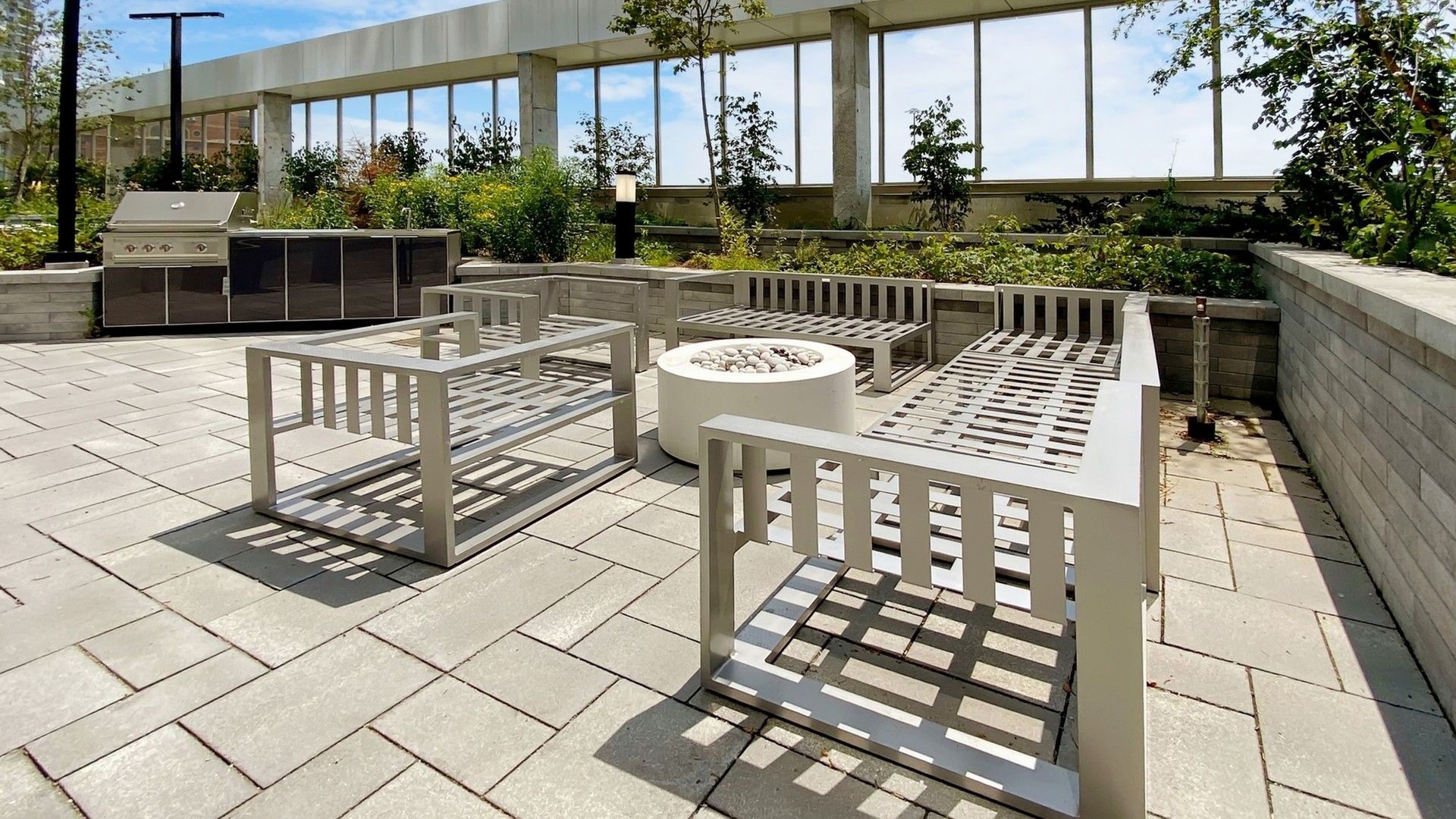 • Building amenities include gym, lounge, rooftop deck, and kids zone.