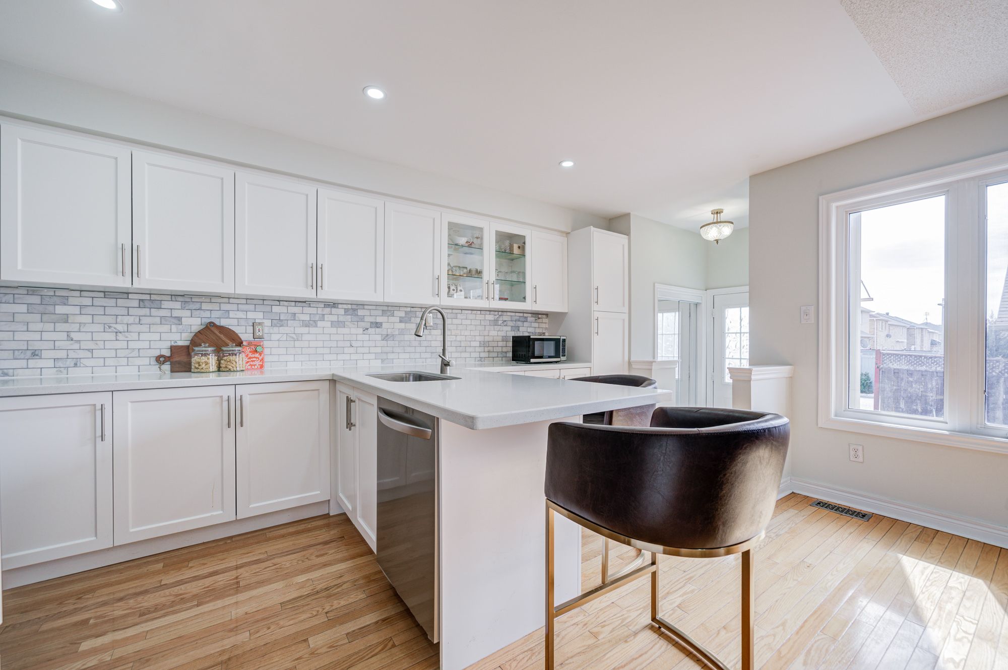 Well maintained cozy 3 bed 3 bath freehold townhouse in high demand greensborough community. Freshly painted. Hardwood flooring throughout main & 2nd fl. Brand new staircase & 2nd fl flooring (2026). Upgraded light fixtures. Upgraded kitchen countertops & cabinates. Upgraded 2nd fl bathrooms cabinates. Backyard facing south with lots of sunlight. Roof (2020). Professionally finished basement featuring bedroom/office. Mount joy public school & bur oak secondary school zone. Close to go station, hospital, restaurant, supermarkets & all amenities. Must see!