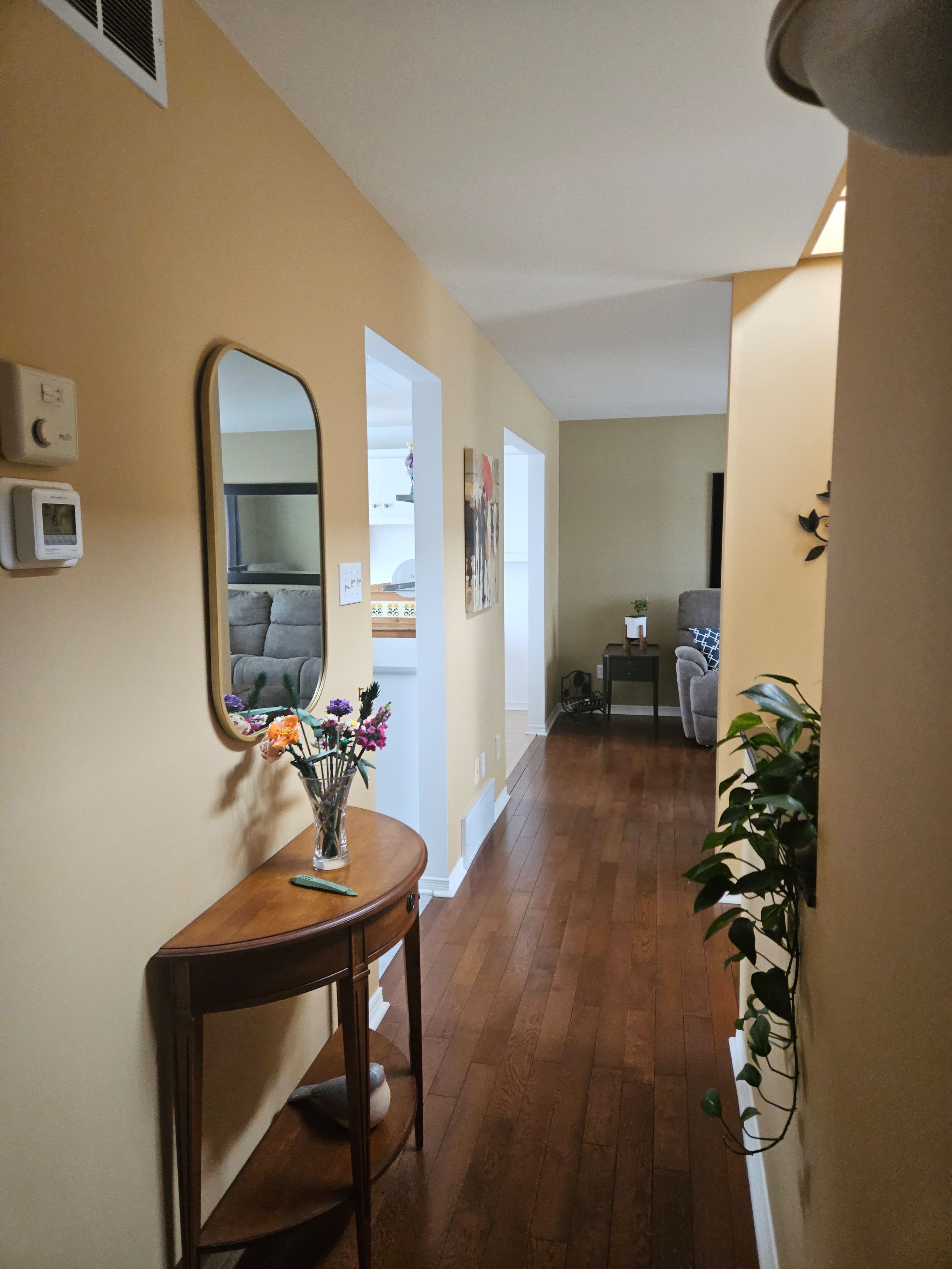 • Bright main foyer and open concept kitchen, dining, and living spaces.