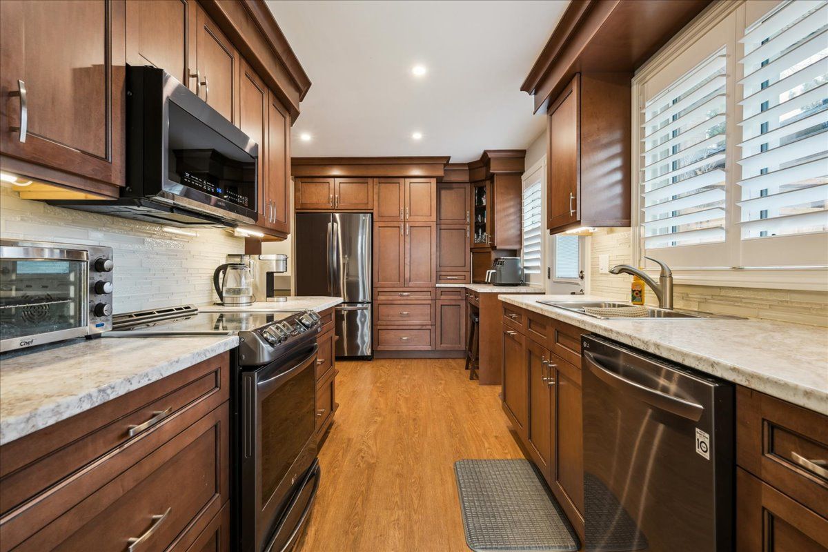 • Modern kitchen with stainless steel appliances and easy backyard access.