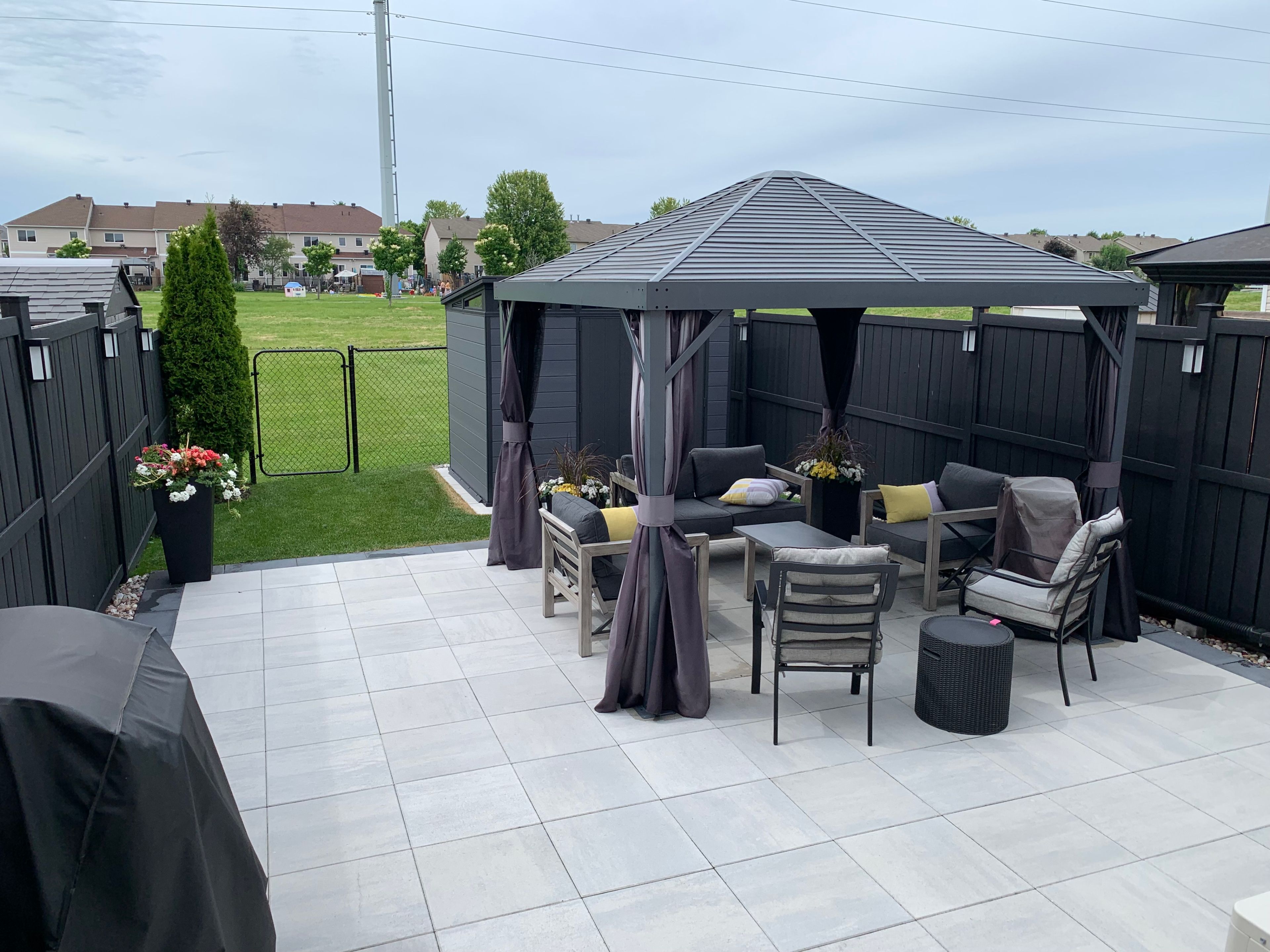 • Private backyard oasis with gazebo, shed, and direct access to open space.