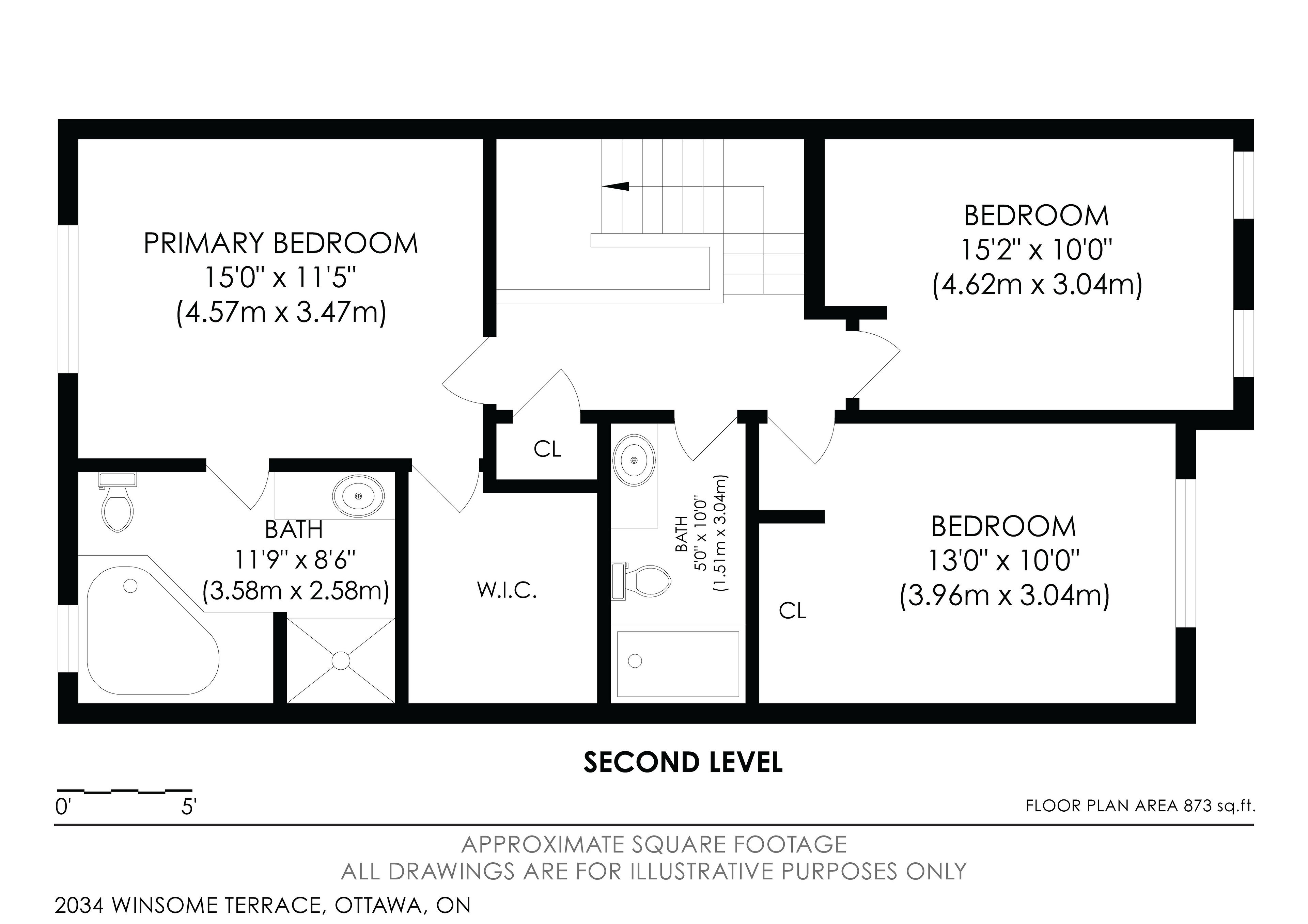 • Three large bedrooms upstairs, including a primary suite with ensuite bathroom.