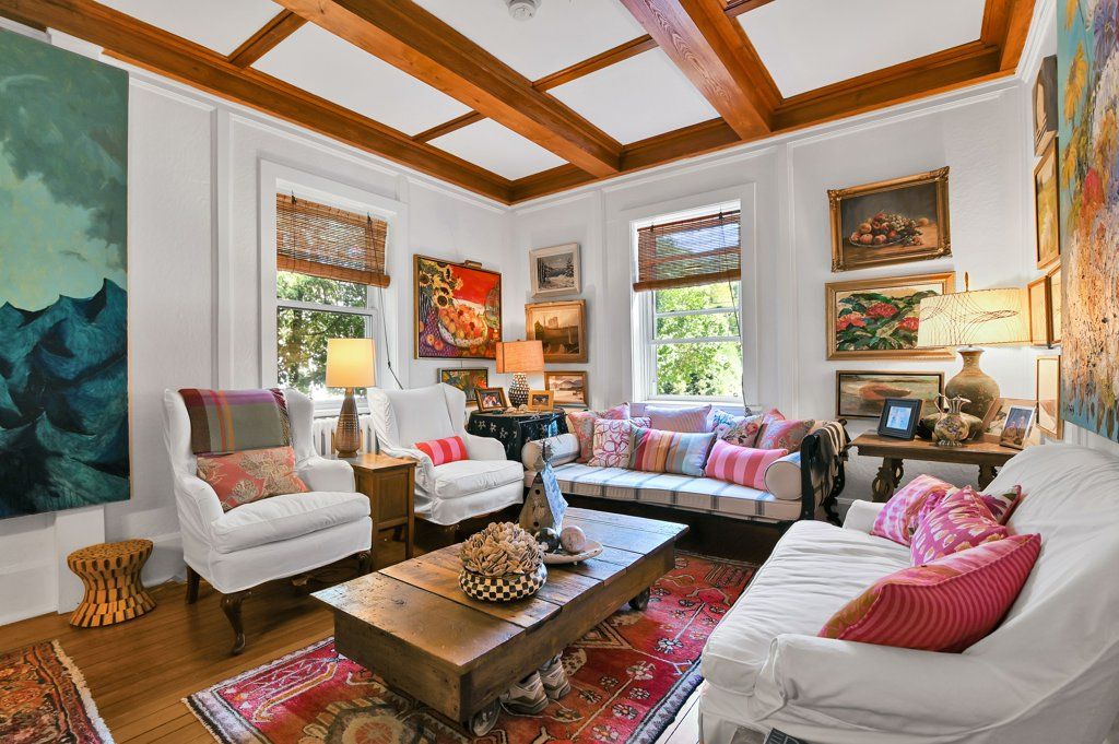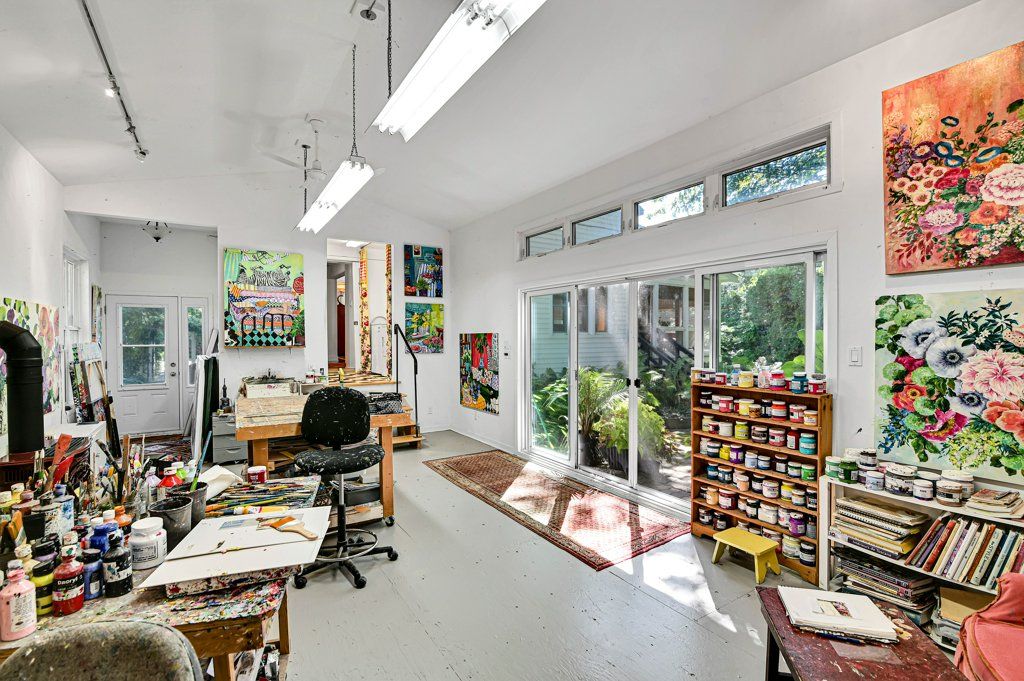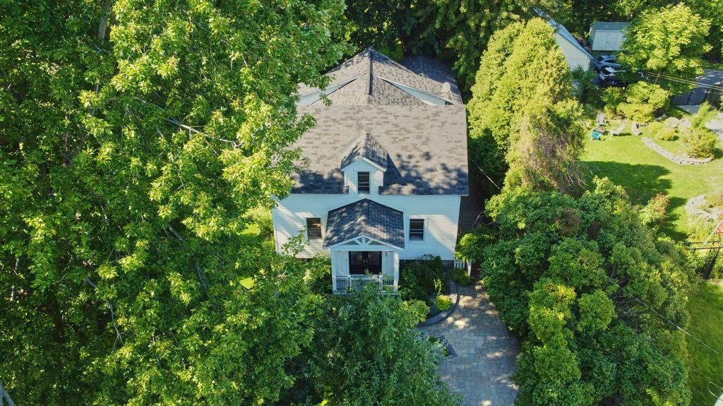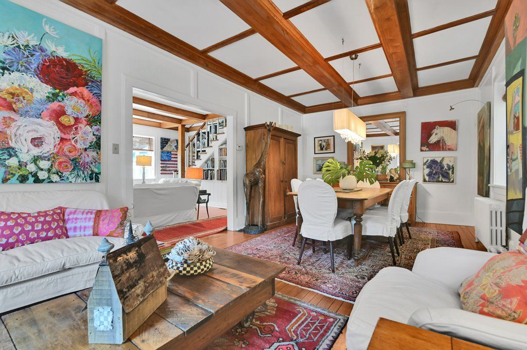 • Charming exterior with covered porches and mature landscaping adds character.