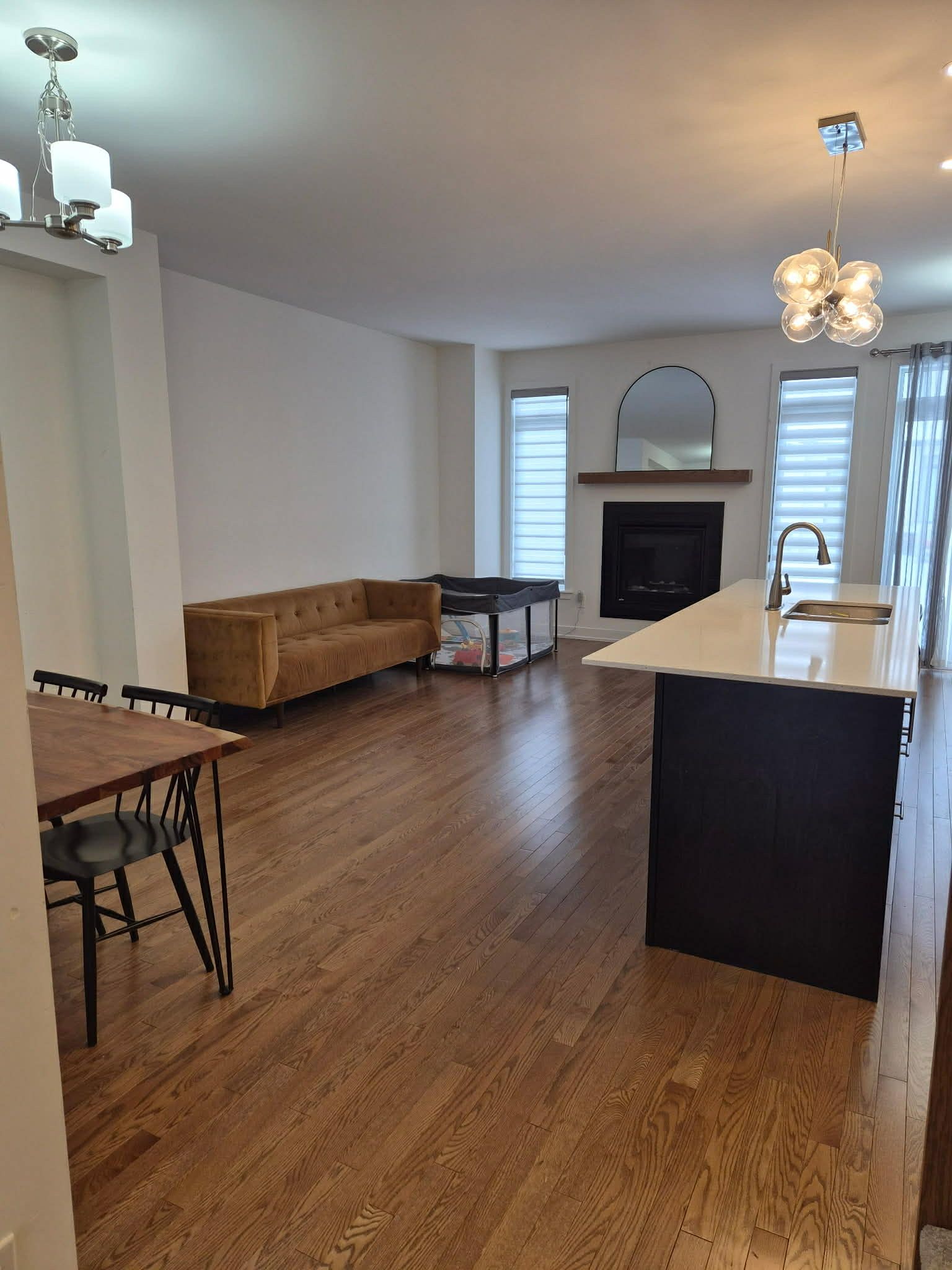 Located in the desirable bridlewood trails community, this beautifully upgraded whitney model was built by claridge homes in 2022 and offers 1825 sq. Ft. Of thoughtfully designed living space on a generous lot with lot of backyard space. With 3 bedrooms and 2. 5 bathrooms, this home delivers comfort, functionality, and modern style in one of kanata's newest and fastest-growing neighbourhoods. The main level features hardwood floors, smooth ceilings, pot lights, and a versatile open-concept layout ideal for both daily living and entertaining. The chef-inspired kitchen is equipped with quartz counters, a breakfast bar, large undermount sink, upgraded backsplash, high upper cabinets, hood vent, and premium stainless steel appliances. Mix of custom blinds and sheer curtains add a polished touch. Upstairs, the spacious primary bedroom includes a walk-in closet and a luxurious 3-piece ensuite, glass shower with niche, and ample storage. Three additional bedrooms, upgraded tile in the main bath, and a linen closet complete the upper level. The finished basement offers a cozy gas fireplace, with framed and insulated exterior walls in the unfinished area for added comfort and storage. Additional highlights include a large single attached garage with inside access to a mudroom/laundry room, hrv and humidifier added to the hvac system, on-demand hot water heater. Ideally located near eagleson road and terry fox drive, this home is close to shopping, grocery stores, parks, schools, ncc trails, and farmland, with easy access to highways 417 and 416, stittsville, richmond, central kanata, the canadian tire centre, and a convenient 20-minute commute to downtown ottawa.