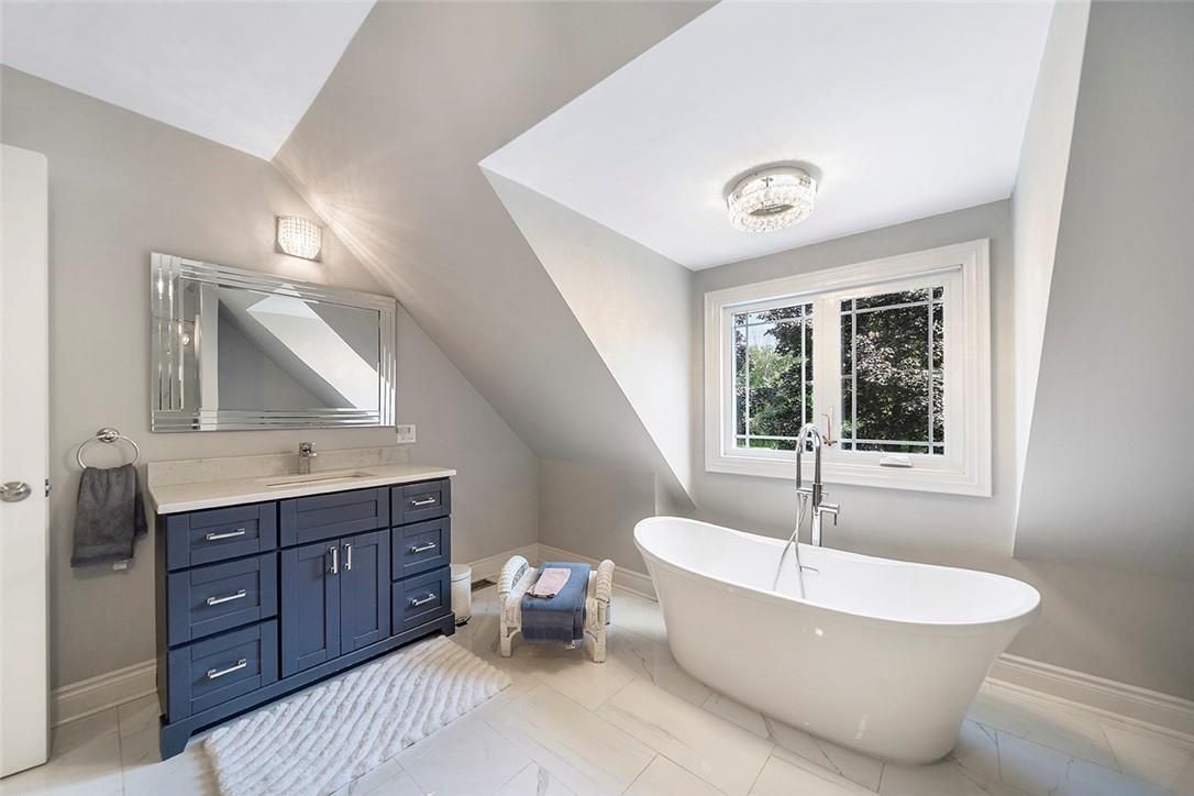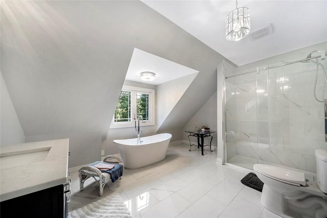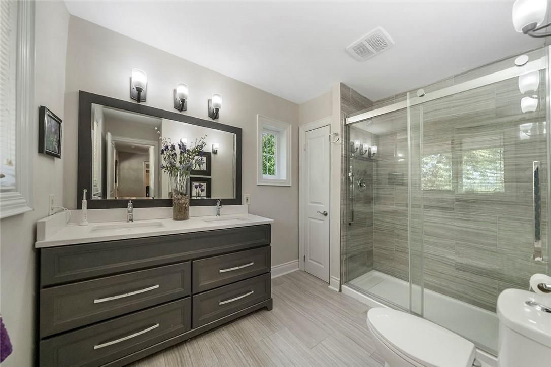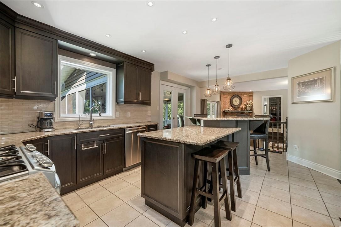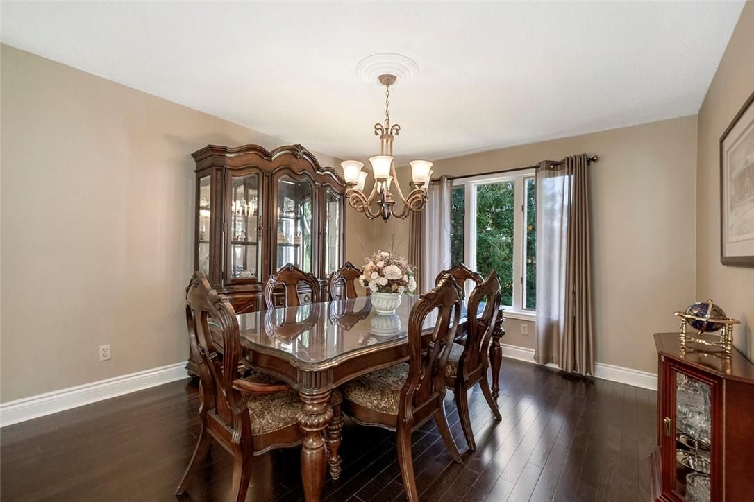 Welcome to this stunning 2-storey home, perfectly nestled on a picturesque 0. 9-acre lot, surrounded by mature trees that offer both privacy and tranquility. This bright and inviting home has been meticulously updated with modern touches throughout. As you step inside, you'll be greeted by a spacious eat-in kitchen featuring stainless steel appliances, a chic tile backsplash, abundant cabinetry, and a large island ideal for both meal prep and casual dining. The main floor also boasts a sunken living room, a cozy family room, a formal dining area, a convenient laundry room, and a luxurious 3-piece bath complete with dual sinks and a glass shower. Upstairs, you'll find three generously-sized bedrooms, including a luxurious primary suite with a walk-in closet and a spa-like 4-piece ensuite that includes a soaker tub and a glass shower. An additional 4-piece semi-ensuite bath serves the other bedrooms, ensuring comfort and convenience for all. The fully finished basement offers even more living space, with a large rec room, an additional bedroom, and a 1-bedroom in-law suite featuring a kitchenette, living/dining area, and a 3-piece bath with a shower perfect for extended family or guests. Outdoor living is equally impressive with a massive covered porch and a large deck in the backyard, providing ample space for entertaining or simply enjoying the serene surroundings. A detached shop with power and gas line run, a spacious 2-car attached garage, and a large patio leading up to the charming covered front porch complete this home's exterior appeal. This home has seen numerous updates over the years, ensuring it is move-in ready for its next owners. Some of the recent renovations include new shingles, new siding, exterior painting, new lights, new blinds throughout, and much more. The interior updates are just as extensive, with new hardwood flooring, updated bathrooms, and modern fixtures ensuring a contemporary and comfortable living space.