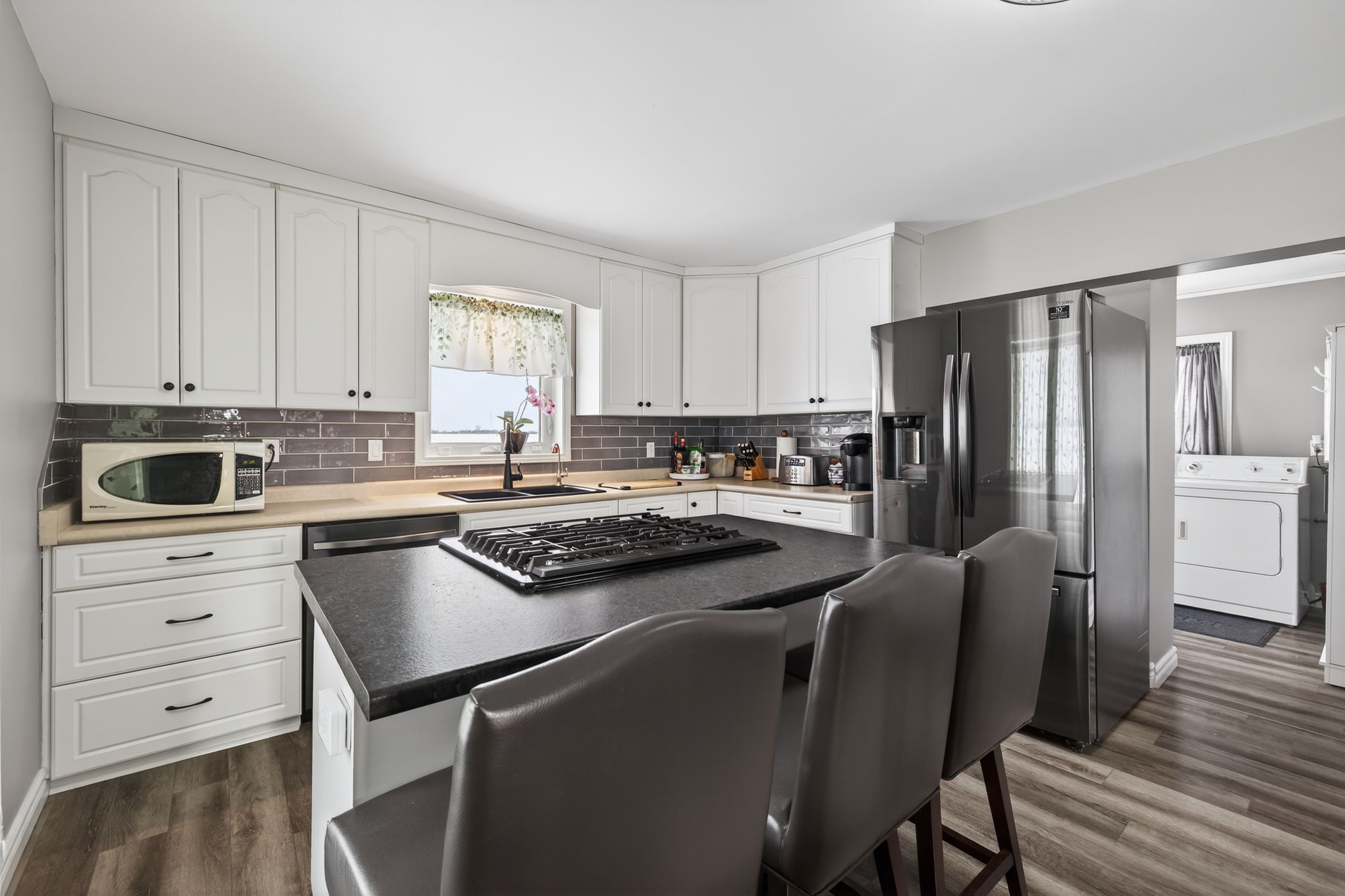 Looking for peace, minimal neighbours, and a quiet country place that still keeps you close to the water? This one delivers. Amazing setup with a dream 35' x 90' shop/garage featuring a natural-gas heated workshop side, new overhead garage doors, and a storage shed, plus plenty of room for the truck, boat, toys, tools, and real projects. Set on approximately 1+ acre, it's peaceful and private while still being just 9 minutes to merlin and 17 minutes to tilbury, plus only a few minutes to lake erie and an easy trip to mitchell's bay-perfect if you like to spend summer days on the water. Inside, enjoy an updated kitchen with island, open concept layout, bright living space, and 3 bedrooms, including a main floor bedroom for convenience. Paved road, municipal water, natural gas-country living with the right utilities.