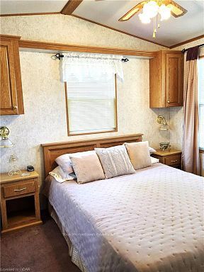 Spacious 3-bedroom trailer in excellent condition, perfect for family getaways year-round! This fully furnished trailer includes everything you need, even down to the dishes. Enjoy the large layout with plenty of room for everyone, featuring a modern rain head shower for added comfort. The water lines are heat traced, ensuring no worries during winter stays. Step outside to relax on the great deck with a retractable awning for shade, or gather around the cozy fire pit, complete with wood to get you started. This well-kept trailer offers everything you need for a comfortable and memorable stay. Concrete strips underneath assure no shifting with the change of seasons. Maple leaf acres is open year round with indoor pool and access to belwood lake. Season is may 1 to oct. 31 with all weekend access and 21 flex days to use off season.