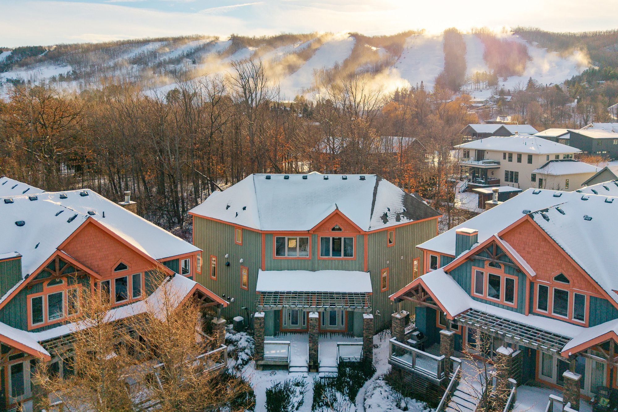 Totally updated and impeccably designed, this 4-bedroom, 3. 5-bath freehold semi-detached chalet in desirable sierra woodlands offers the perfect blend of luxury, comfort, and convenience. The impressive private, open-concept great room features vaulted ceilings, a gas fireplace, views of the ski hills, and a walk-out to the deck complete with a hot tub, ideal for year-round relaxation or entertaining. The gourmet designer kitchen boasts top-quality built-in appliances and a centre island with seating, perfect for entertaining. The quality continues with heated floors in the bathrooms, including the luxurious primary ensuite with double sinks and a steam shower. A second bedroom also enjoys its own ensuite, also with heated floors, offering comfort and privacy for guests or family. The ground level has a large cozy family room with fireplace, perfect for movie or games nights. The 2-car garage provides ample storage for all your recreational gear. Enjoy the unbeatable location, just a short walk to craigleith ski club, take advantage of the seasonal pool, and explore the tennis courts directly across the street. Northwinds beach, blue mountain village, alpine ski club, trails, and amenities are all close by. With lawn maintenance and snow removal right to your door, this is the ultimate low-maintenance getaway where you can just lock the door and leave.