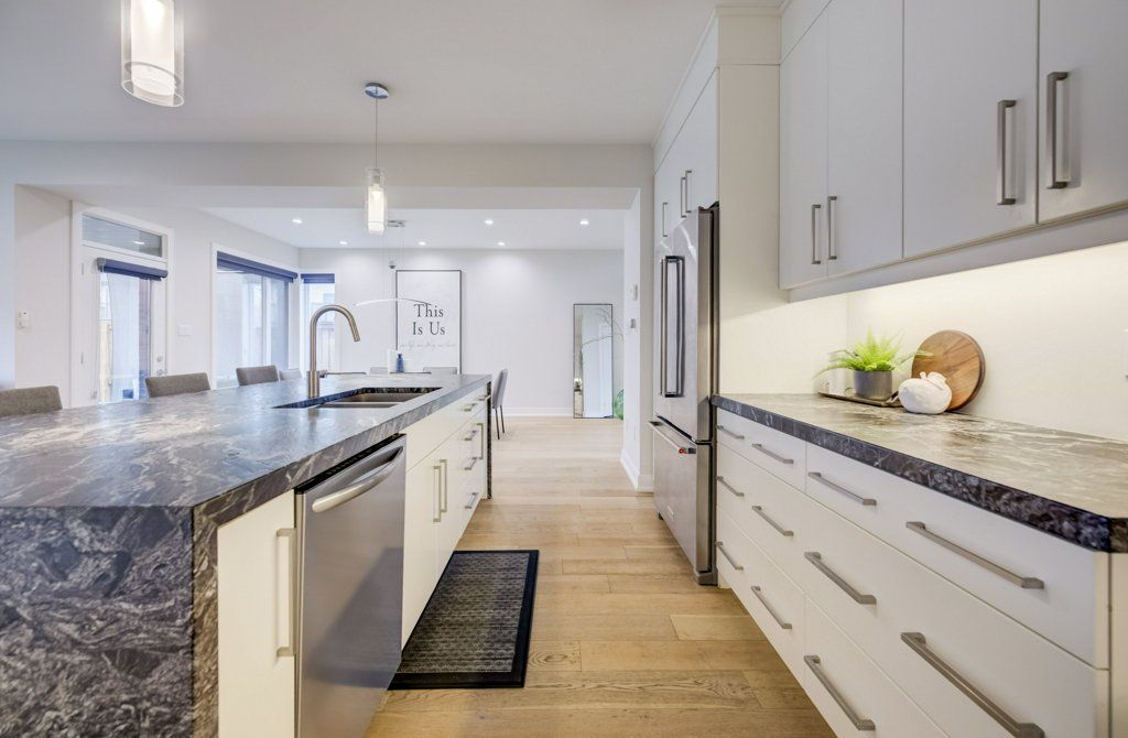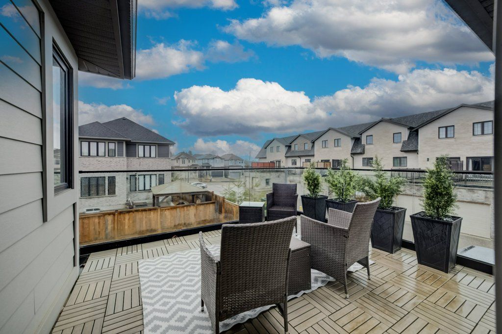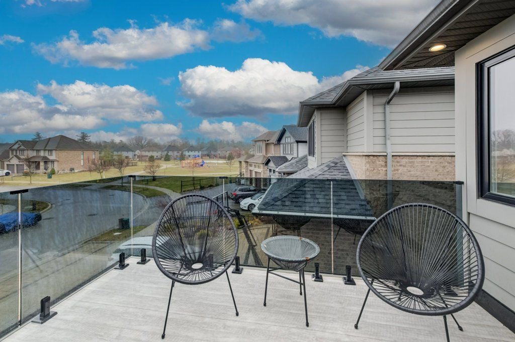 Custom-built by award winning custom home builder john welton of sunvale homes this modern masterpiece in waterloo's prestigious kiwanis park neighborhood offers a lifestyle defined by luxury and convenience. Located just minutes from highway 85 and premium amenities, the home greets you with a sophisticated open-concept design with seamless flow. The breathtaking foyer features a soaring ceilings and a striking floating staircase with custom glass railings. The home's open-concept heart flows into a chef-inspired kitchen anchored by leathered granite waterfall countertops, a sensor-activated faucet, and stainless appliances. Adjacent, a sleek laundry suite with garage access is cleverly tucked behind a custom glass sliding door. The living room, anchored by a gas fireplace, serves as a gathering hub that transitions seamlessly to the dining room and covered outdoor porch with privacy screen. Enter the primary suite through a custom oversized wooden swing door to find a retreat featuring a private balcony, a sprawling walk-in closet, and a spa-inspired 5-piece ensuite boasting a massive three-shower-head walk-in shower, a deep soaker tub, and elegant marble finishes. A loft, complete with gas fireplace, custom built ins and tinted privacy-glass balcony, offers a secondary lounge or office/flex space while two additional plush bedrooms provide ample comfort for family or guests. The finished basement serves as the ultimate entertainment hub, complete with a projector and screen, a full bathroom, and a spacious fourth bedroom with walk in closet and custom storage. No detail was spared in the finished garage which functions as a showroom or gym with integrated heating, an ev charger, recessed pot lights, and rubber flooring. From the sleek architectural lines to the trails of the grand river, kiwanis park with outdoor pool, dog park and more just steps away, this 4 bed, 3. 5 bath home represents a rare opportunity to own a work of art in a premier community.