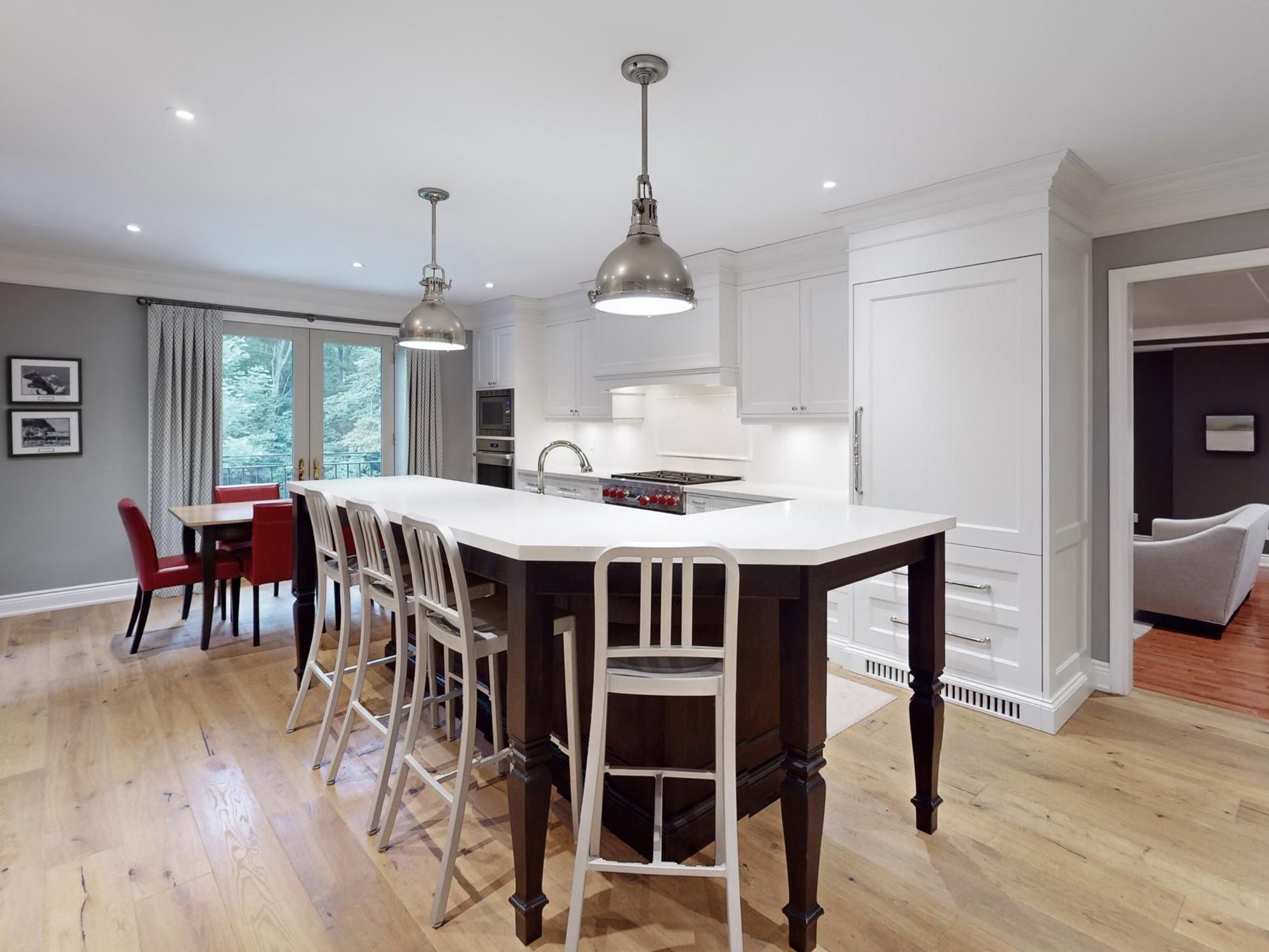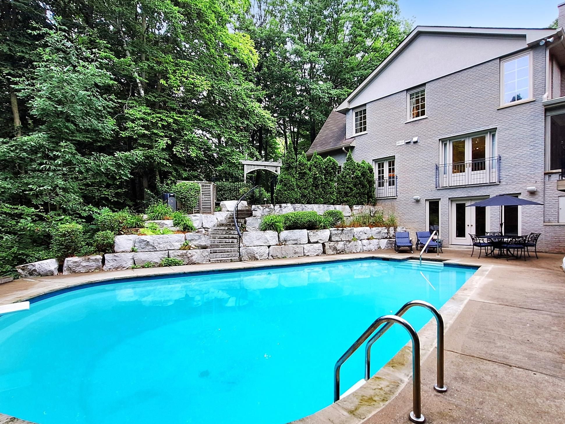 Custom built estate home nestled amongst 4. 43 acres of towering trees in prestigious exclusive estate community. This remarkable home features great upgrades incl: pot lights, crown moulding, wainscoting, multiple walk-outs, large windows w/panoramic views & numerous fireplaces. Stunning kitchen, family rm & primary bedroom was designed by jane lockhart. The renovated kitchen is a modern masterpiece w/valence lighting, walk-in pantry, coffee station & high-end built-in appliances featuring a cabinet facade. Ideal for entertaining, the kitchen also has a large island, cozy fireplace and a breakfast area with access to a muskoka room. The sun-drenched muskoka room has gorgeous views of the serene rear grounds & boasts access to a deck overlooking the pool area. Spacious mudroom with access to the garage and private access to the in-law suite that has a spacious living room, private bedroom & ensuite bathroom. The formal dining room with corner display units that feature glass shelving and accent lighting. Immaculate sunken living rm is complete with coffered ceilings, built-in wall unit with ample storage, shelving and countertops for display. Spacious family rm boasts cork flooring & w/o to private deck. The finished, walk-out lower level is an entertainer's dream with a spacious, open concept recreation room, games room featuring a built-in seating booth, private gym with mirrored walls, a cantina and a wet-sauna. The fully landscaped rear grounds boasts multiple entertainment areas with an inground pool overlooking a private lush forest as a backdrop. Large armour stones provide ambiance of being at a muskoka retreat as well provide beautiful garden beds for seasonal & perennial plants. The upper entertaining patio enjoys private views of the property & multiple access points to the indoor for effortless entertaining. The front grounds is breathtaking with towering trees, circular driveway, lush gardens & a grand exterior vestibule. Video may be on during viewings.