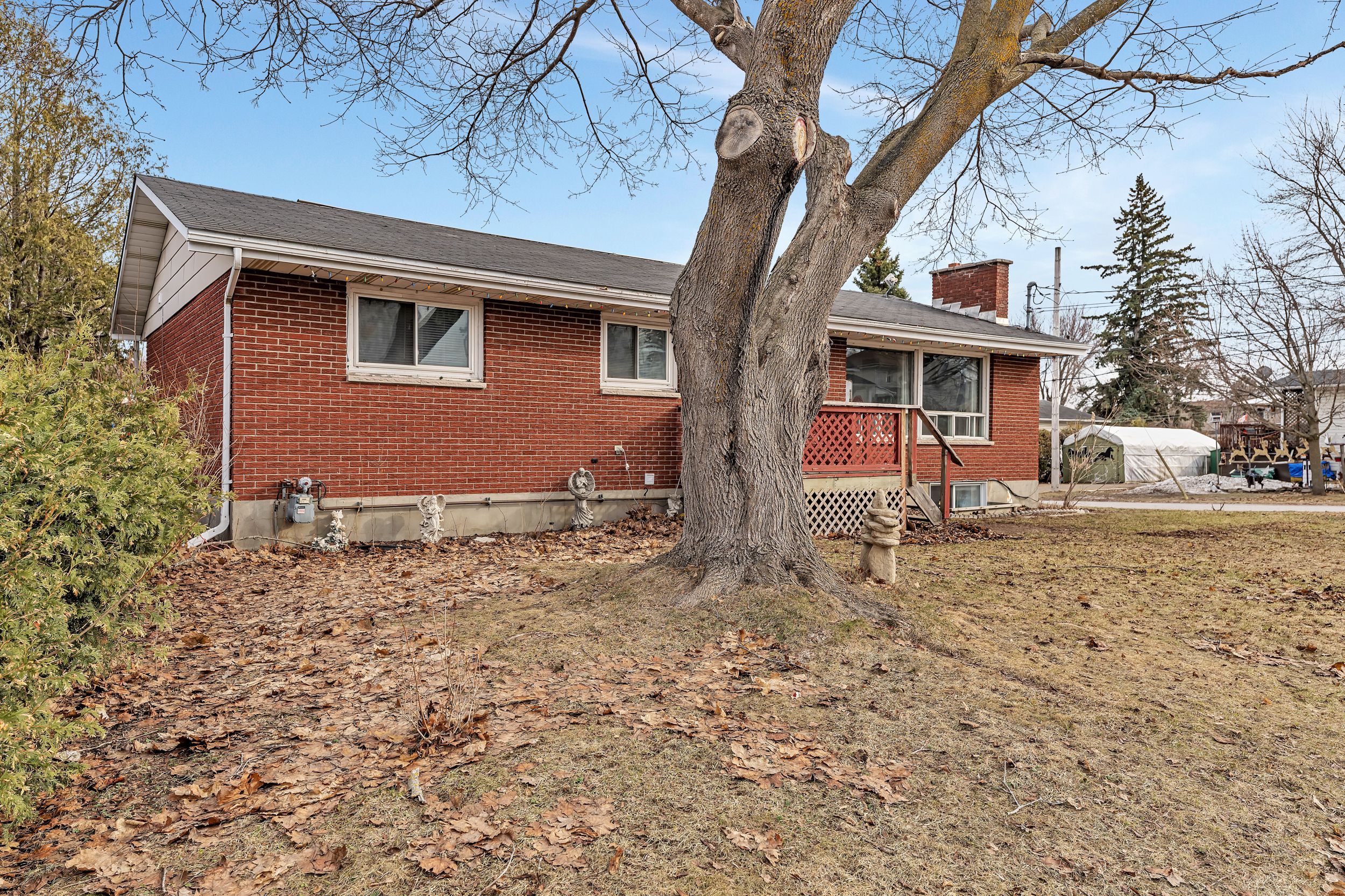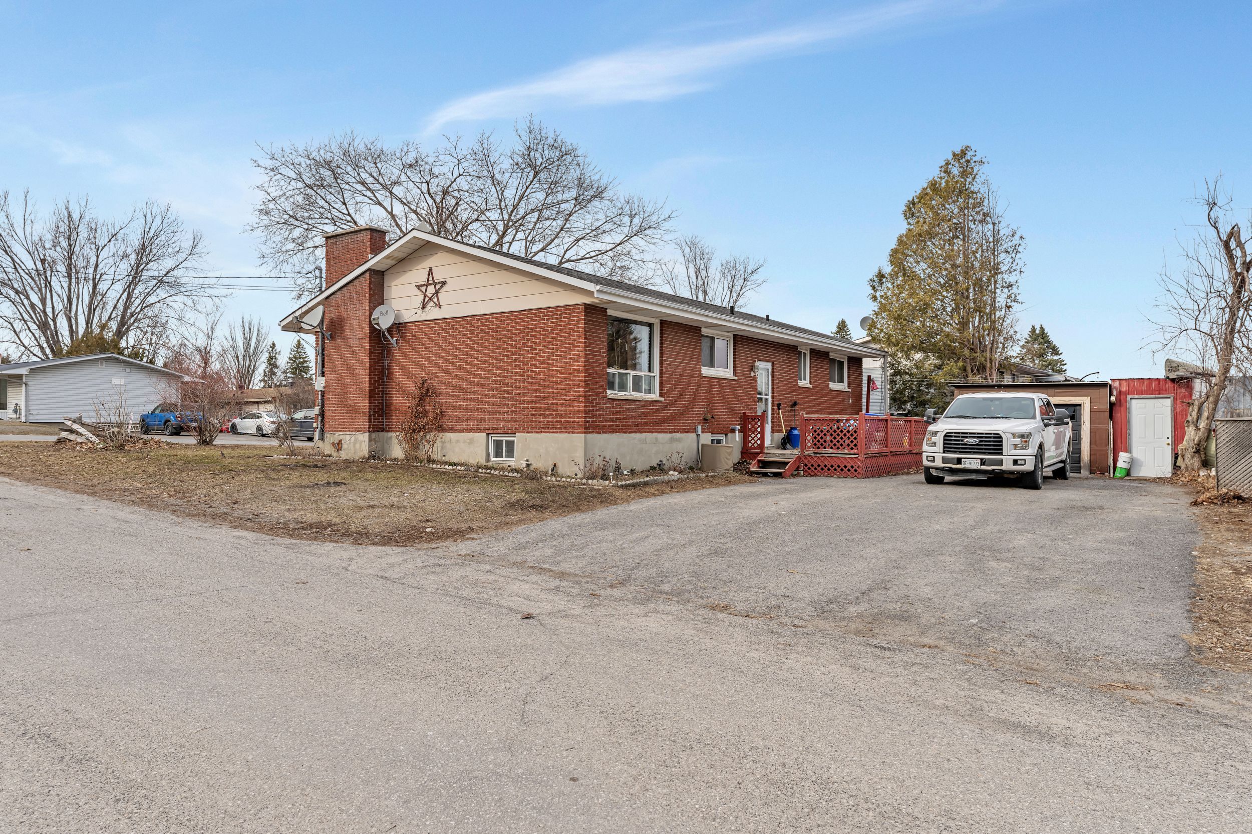 This solid brick bungalow built in 1975 offers approx. 2,231 sq. Ft. Of finished space. Its a duplex, on a corner lot, on a quiet, residential neighborhood in the heart of kemptville steps to many shops & services in town. Think of the possibilities? You could live in one apartment and rent out the other. You could buy this strictly as an investment property and rent out both units. Its also perfect for multi-generational living or to accommodate a nanny or caregiver. The first floor unit boasts 3 generously sized bedrooms, a large living room with a wood burning fireplace and huge front picture windows. You will also find a spacious kitchen with main floor laundry. There is a formal dining room with a window to the backyard. There is also a full 3 piece bath with soaker tub! The lower level has a seperate entrance and offers a large living room open to the kitchen that has a convenient breakfast bar. There is a seperate dining area. Two bedrooms on this level plus a den. There's a full 3 piece bathroom as well as a recently installed full load washer and dryer. The back deck is spacious and the extra large driveway offers parking for several vehicles. There are also two sheds for ample storage! Seperate hydro meters for each unit. Forced air, natural gas for both units. Two seperate hot water tanks. Municipal sewer. Roof shingles 2014, furnace 2015, central air 2007, newer hwt's x 2. Property taxes: $3,682/ 2026. Approx. Utilities: natural gas heating for both units $80/month winter, $50/month summer, hydro main unit $60/month, $40 lower unit, water & sewage $240 every 2 months, hwt rentals $24 per month plus maintenance fee $140 every quarter. A fabulous investment opportunity in a great location - walking distance to many local amenities in kemptville and only minutes to hwy #416. The main floor is tenanted and they would like to stay. The lower level is presently vacant. Kindly provide 24 hour notice for showing requests. ~welcome home~