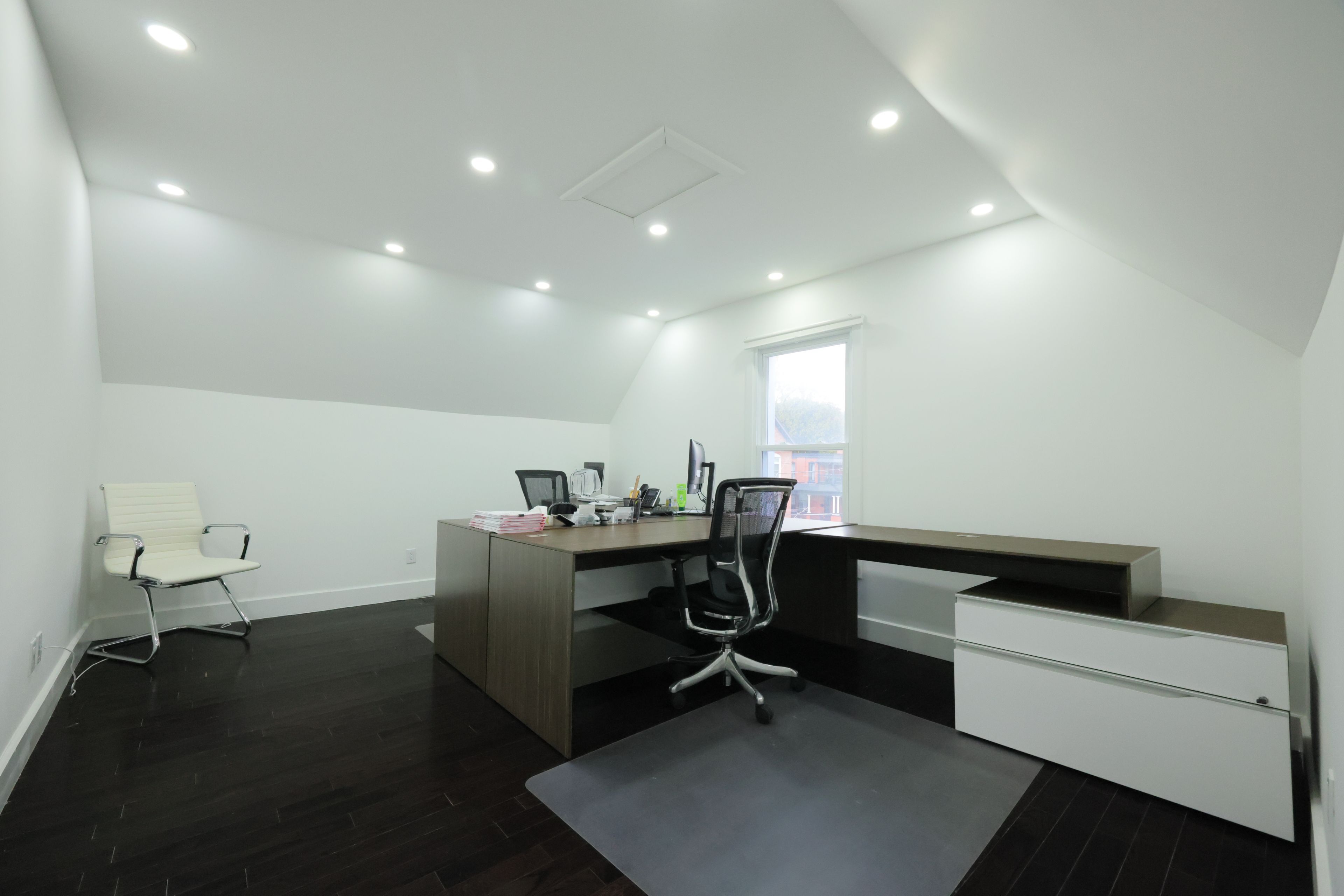 A beautifully maintained, freestanding 2-storey commercial office building in the heart of downtown brampton - the perfect spot for professional offices including lawyers, accountants, it firms, consultants, medical practitioners, or any business seeking premium visibility. This upgraded office space blends timeless character with modern finishes, offering approximately 2,040 sq. Ft. Of functional, move-in-ready space. Located on a prominent corner lot, the property provides exceptional exposure, ample on-site parking, and convenient access to transit, go station, and major highways. The interior features two separate kitchens, modern flooring and lighting, and large windows that flood the space with natural light. The flexible layout allows for two independent office users or a shared professional setup, creating strong investment and income potential. Contemporary office furniture is negotiable, making this an easy turnkey opportunity. Perfectly positioned steps from city hall, restaurants, banks, and major amenities, this property delivers the ideal blend of heritage charm and modern efficiency in one of brampton's most sought-after commercial corridors.