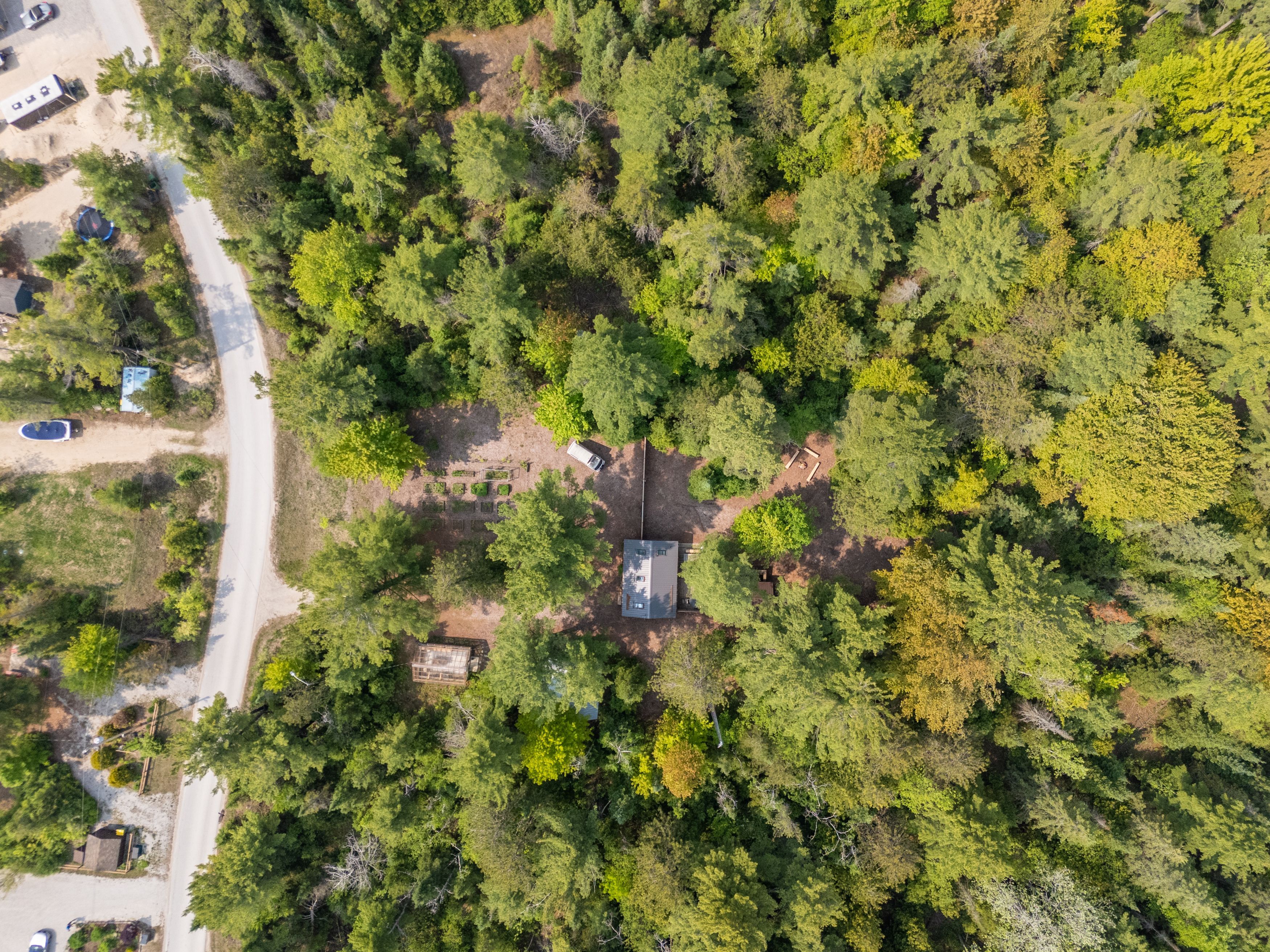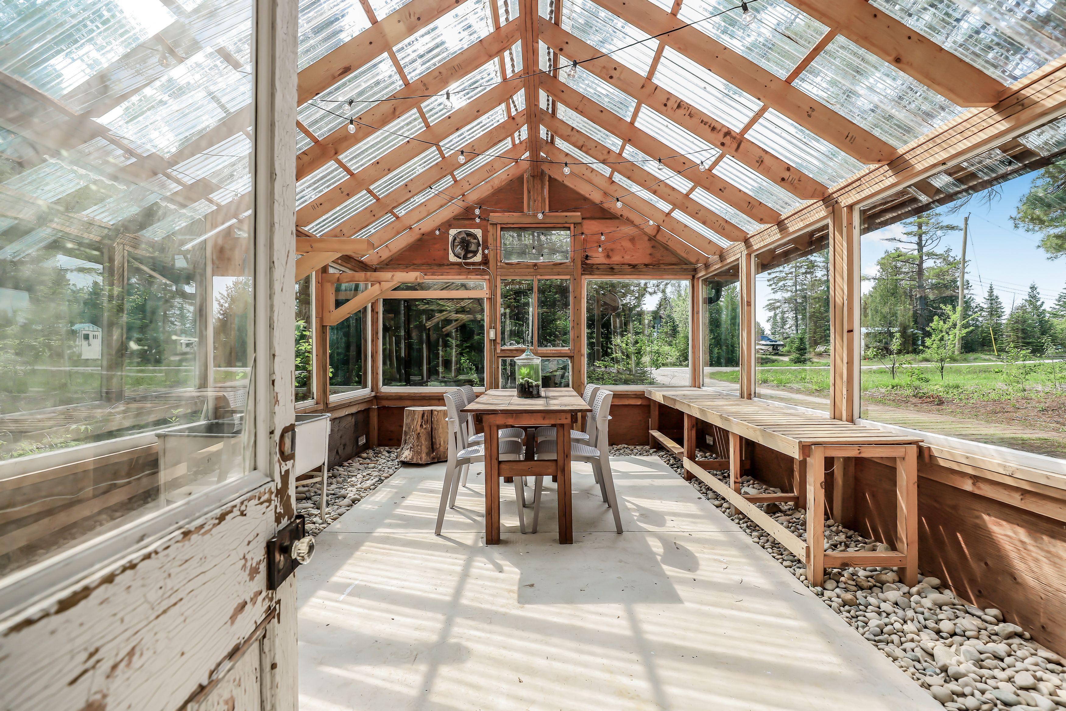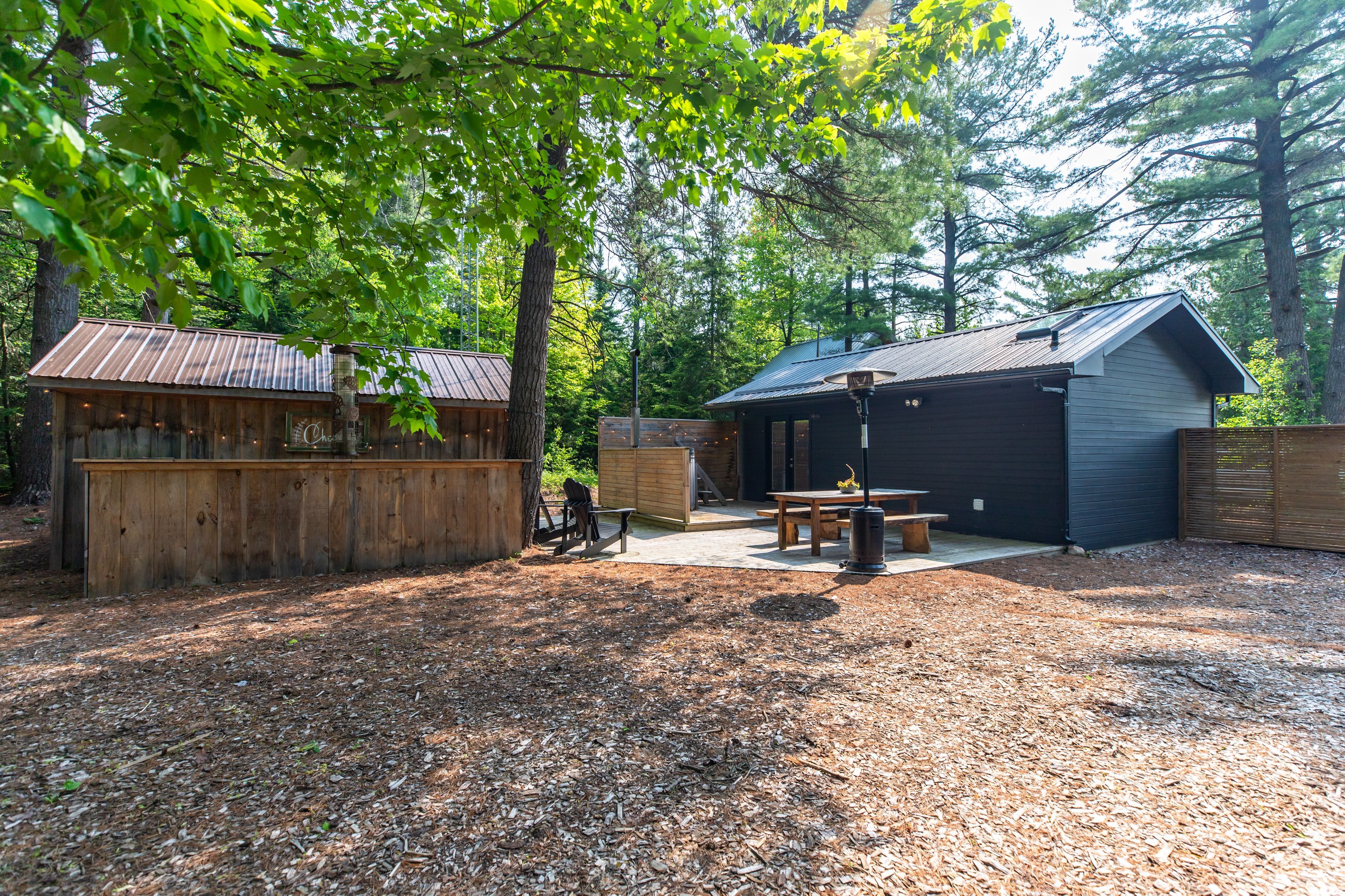 Welcome to 204 ogimah road, your perfect summer retreat on the bruce coast! This is an incredible opportunity for anyone looking for an affordable summer getaway. Situated on leased land, this is a unique property that offers excellent value with everything you could want in a seasonal retreat. Nestled on a large, private lot, surrounded by beautiful large trees, the property features two dwellings, a greenhouse, and multiple outdoor spaces designed for relaxation and enjoyment. Whether you're seeking tranquility or outdoor fun, this is property is a summer dream come true. The main building, constructed in 2020, boasts a spacious layout with a large bathroom, a lower-level bedroom, and a generous second-level primary bedroom/living area combination, ideal for hosting guests or simply unwinding. The second building offers even more flexibility, featuring a bright and functional kitchen/dining area, a utility room, and a bathroom/laundry room and shallow loft area for storage. Step out the back onto a large deck complete with outdoor seating, a wood-fired cedar hot tub, a powered storage shed, an outdoor bar, and a fantastic campfire area, perfect for summer evenings under the stars. Just steps from the sauble river and a short drive to sauble falls, the beautiful beaches of lake huron, and the vibrant community of sauble beach, this property is ideally located to enjoy all the area has to offer.
