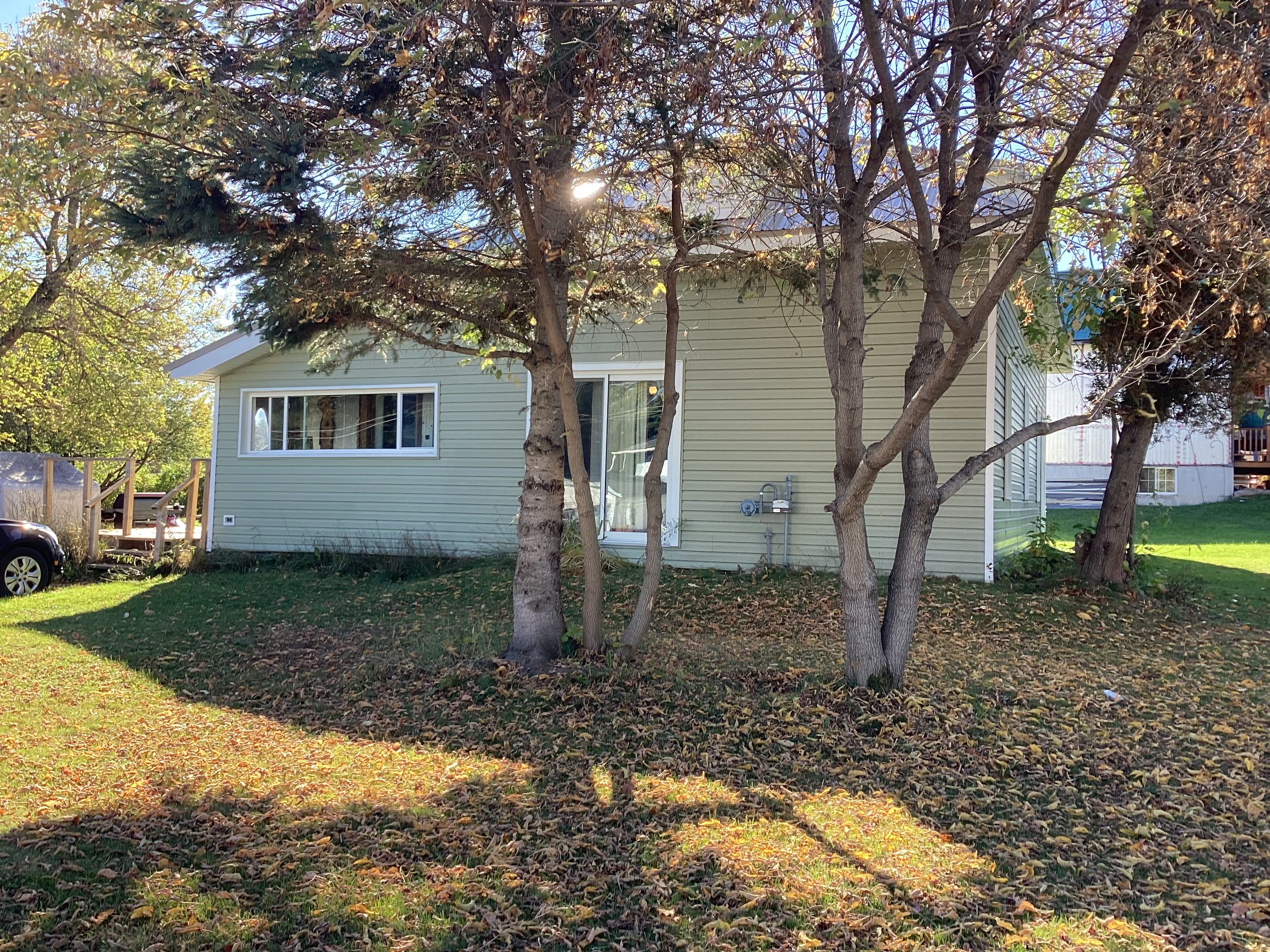 Spacious family home on large level corner lot, located near school, medical centre, recreational facilities. Exterior upgrades of newer vinyl siding, newer windows and metal roof, newer back deck. Kitchen, dining room, and large living room, 4 pce bath, and 2 smaller rooms make up the main floor, upper level offers bed/siting room, and additional large space presently used for storage. Home is ready for new owner to refresh and set up to meet their needs. Municipal services. Take a look at this opportunity today. Buyer to verify home/room measurements.