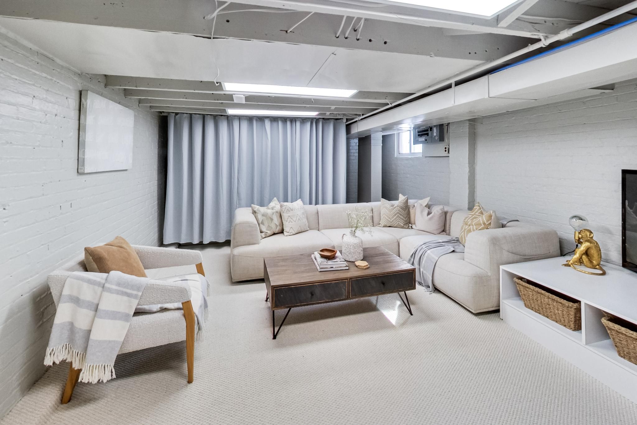 • Tall basement with two rooms and new bathroom.