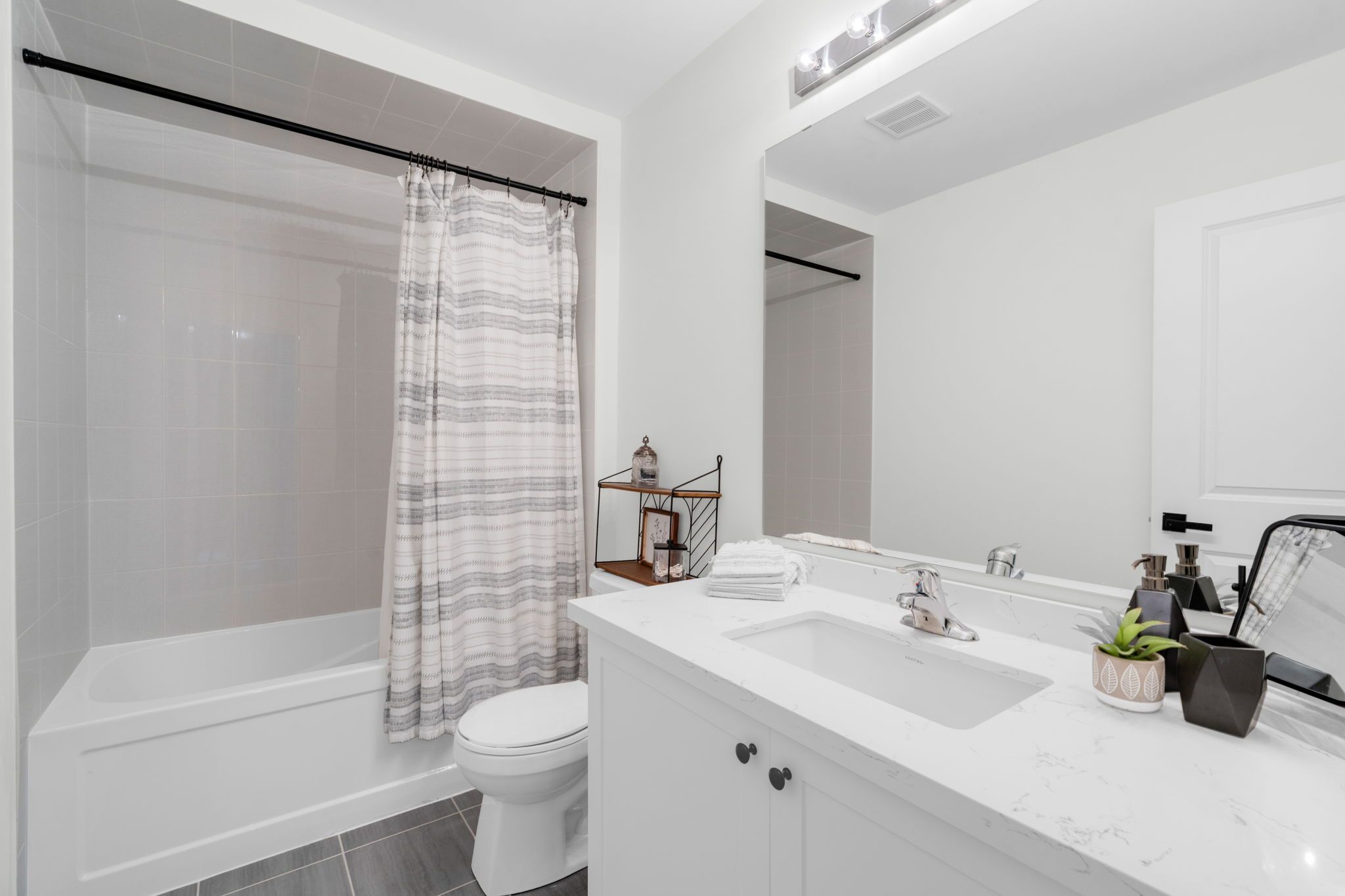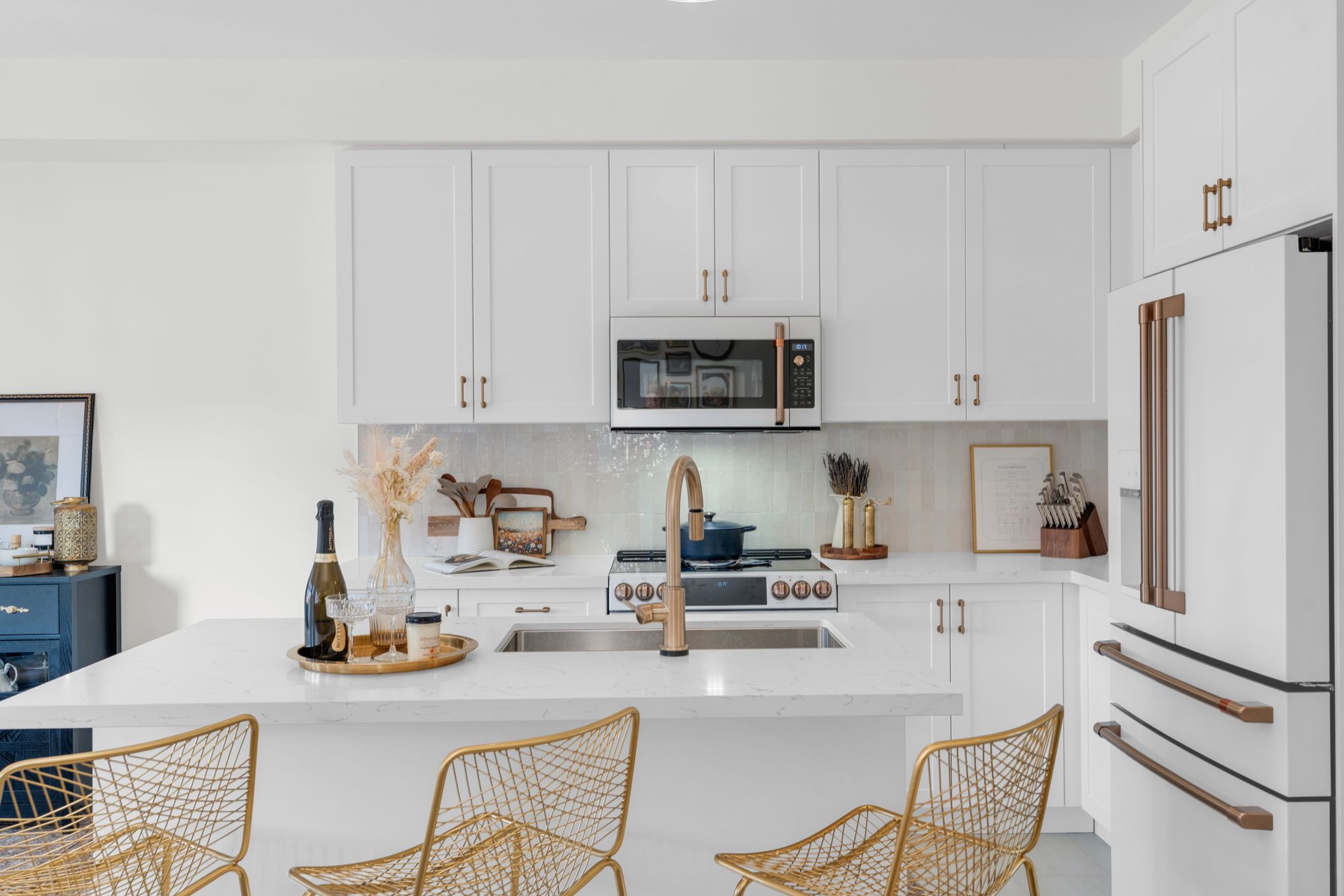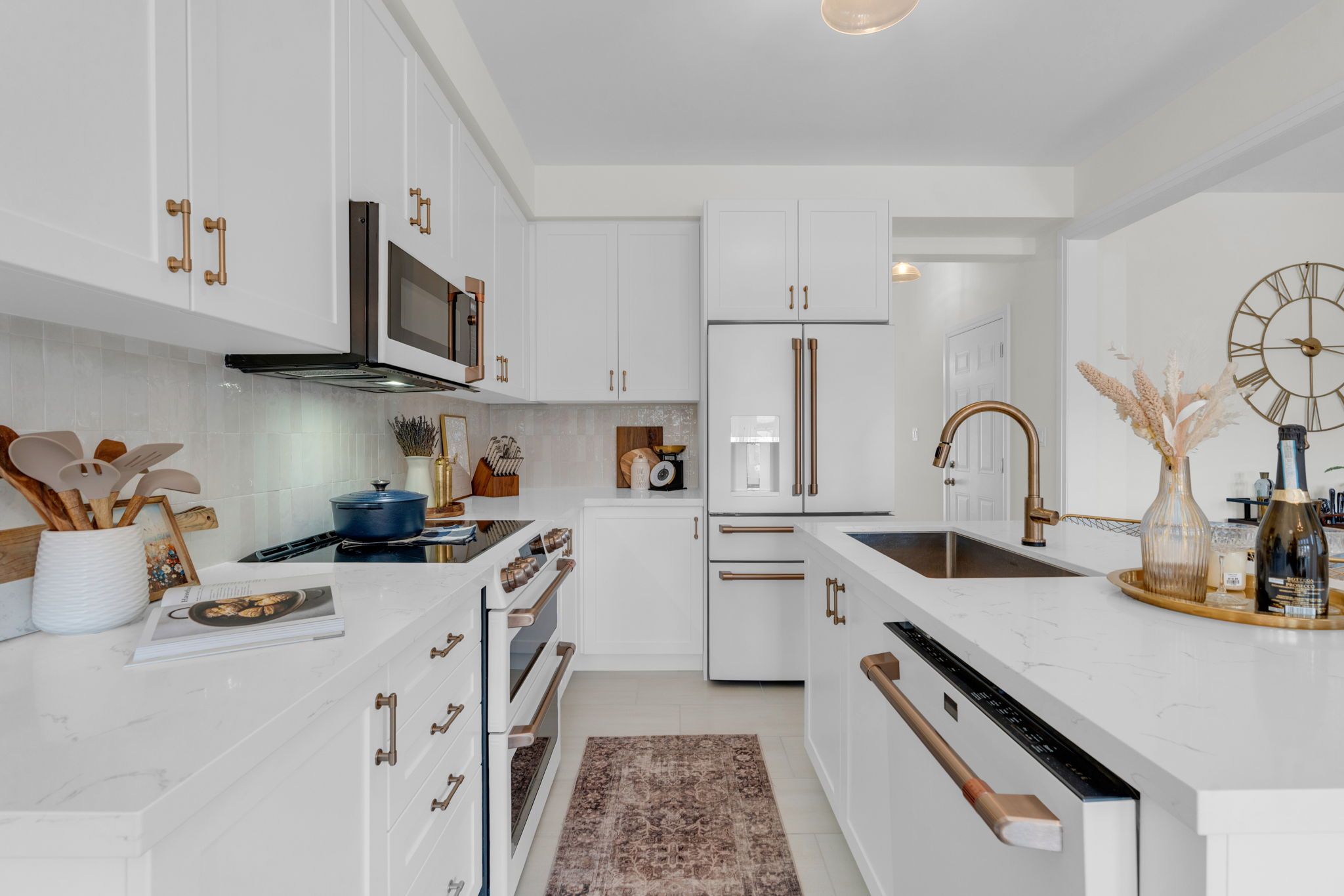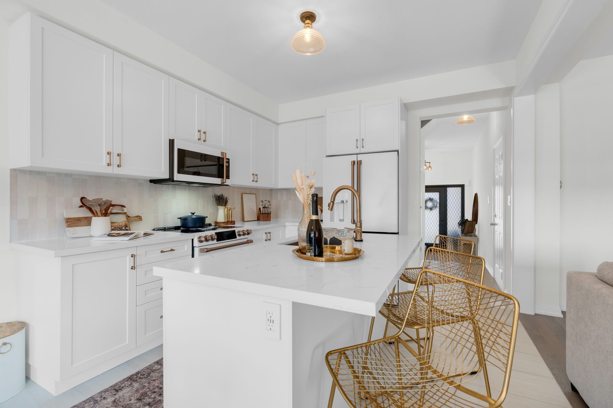• Gourmet kitchen featuring quartz countertops and premium appliances.