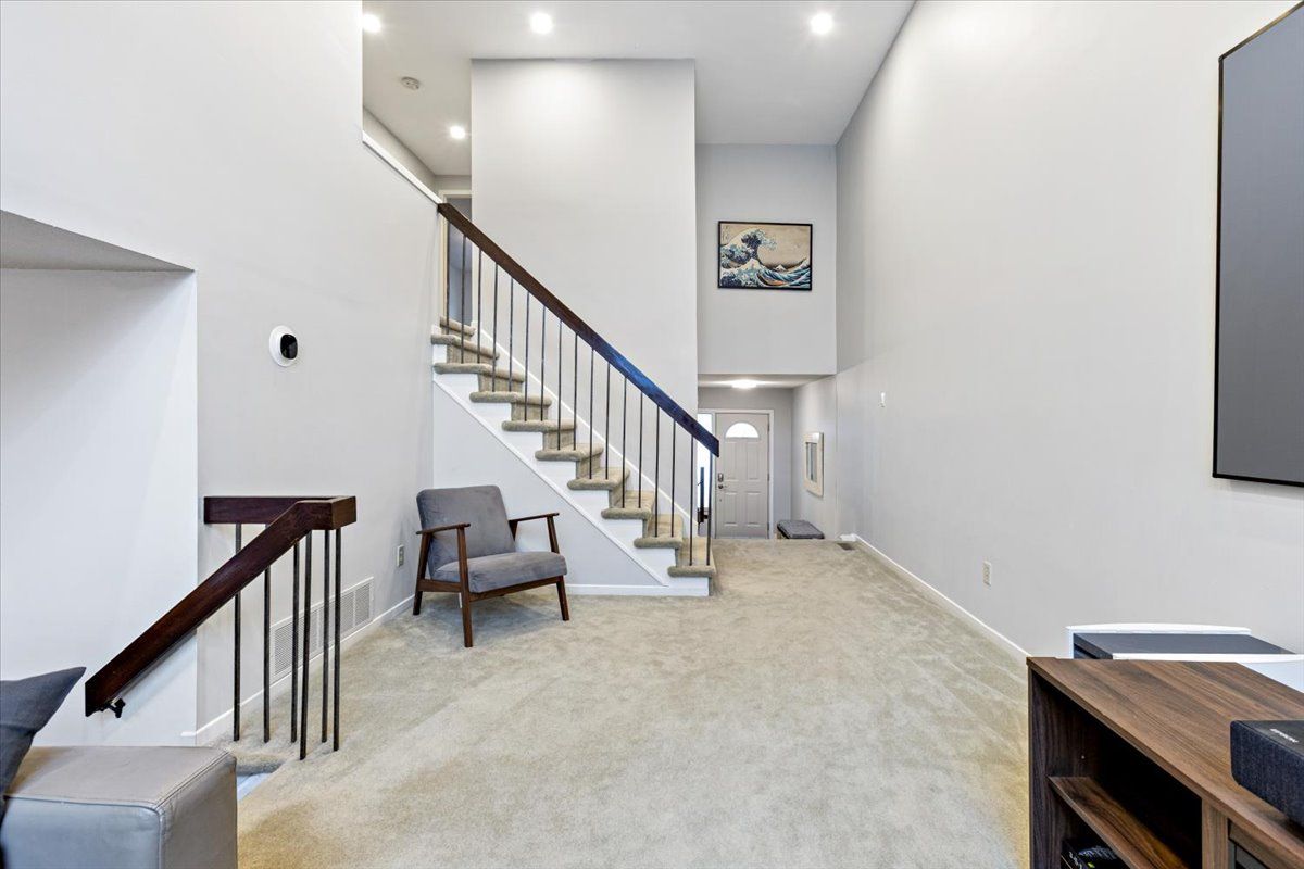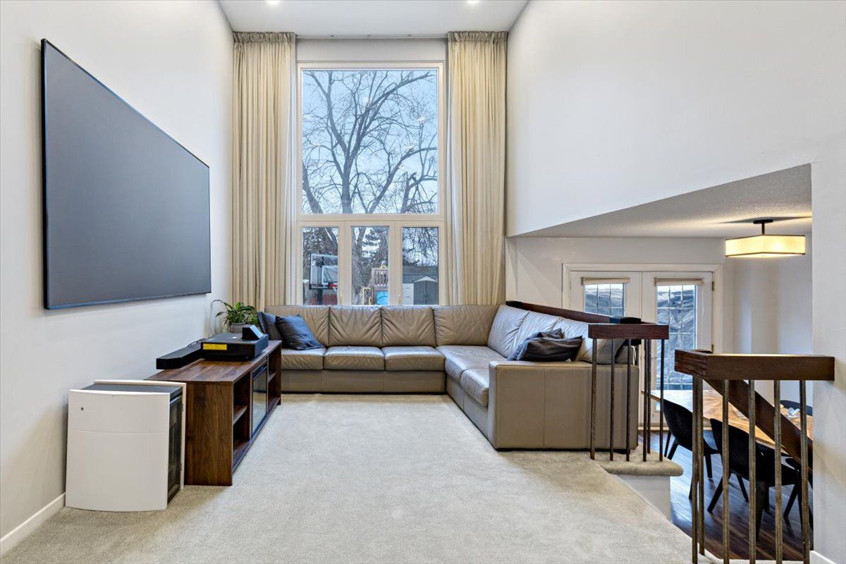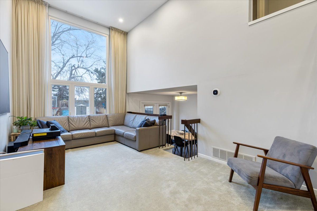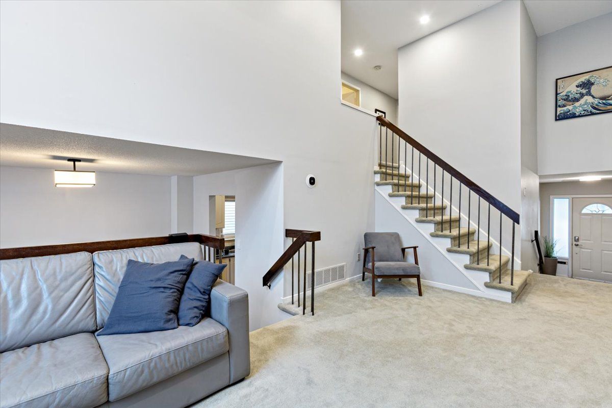 • Bright living room with cathedral ceilings and large picture window.