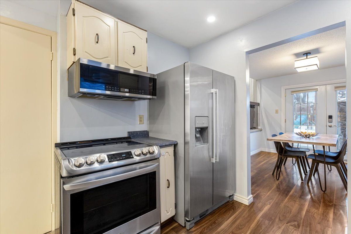 Welcome to this beautifully maintained 3-bedroom, 3-bathroom home in the highly desirable german mills community. The bright and airy living room features stunning cathedral ceilings and a large picture window that fills the space with natural light. The kitchen is equipped with stainless steel appliances and offers an open-concept layout overlooking the family room - perfect for everyday living and effortless entertaining. The newly renovated basement adds valuable additional living space and includes a modern 3-piece washroom, ideal for guests, extended family, or a recreation area. Curb appeal shines with a flagstone front walkway, while the backyard boasts a newer stone patio - perfect for outdoor dining and summer gatherings. Conveniently located close to major highways, shopping, the community centre, parks, and top-rated schools, this home offers the perfect balance of comfort and convenience. A wonderful opportunity to own in one of markham's most established and family-friendly neighbourhoods! **upgraded to 200 amp service (2021)"ev ready" 240v outlet in garage (2021), new 200 amp breaker panel (2021) pot lights (2021)new furnace (2022)new heat pump (2025) roof (2022) interlocking backyard and side (2021)gazebo (2021)playset (2021)garden shed (2021)** some photos are virtually staged** open house sat & sun 2-4 p. M.***