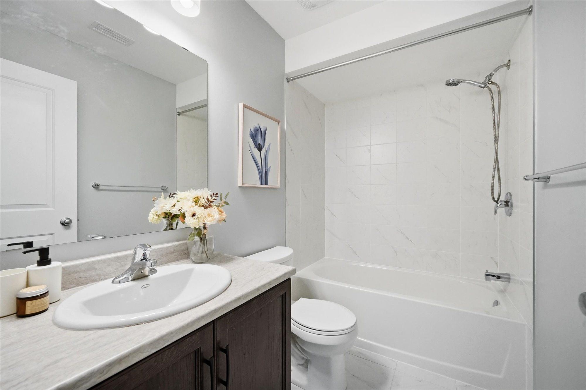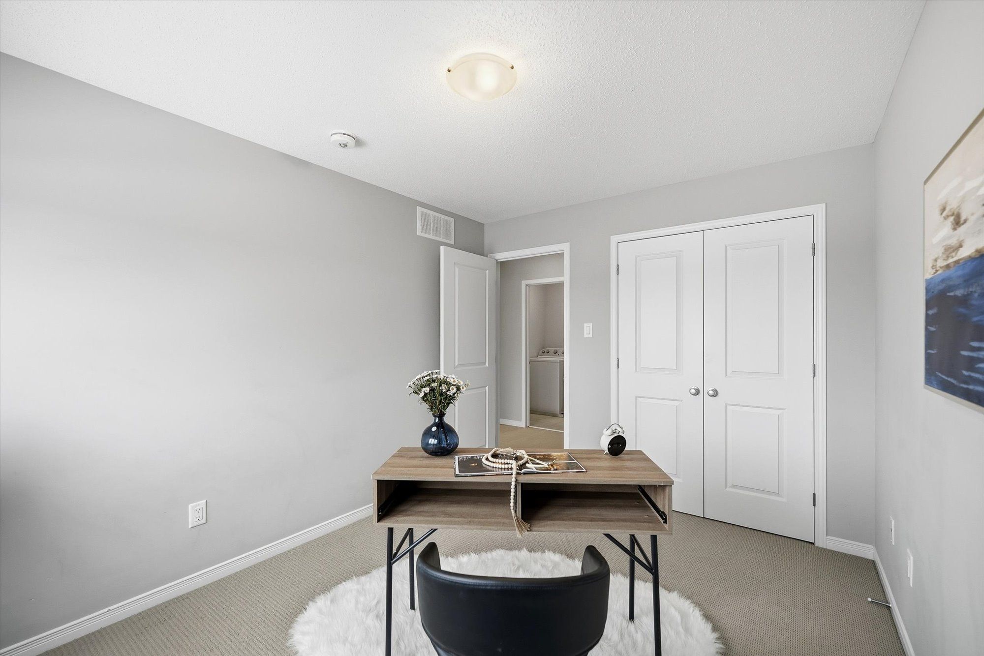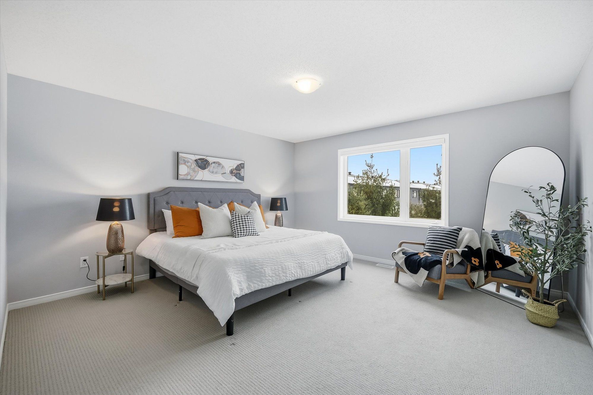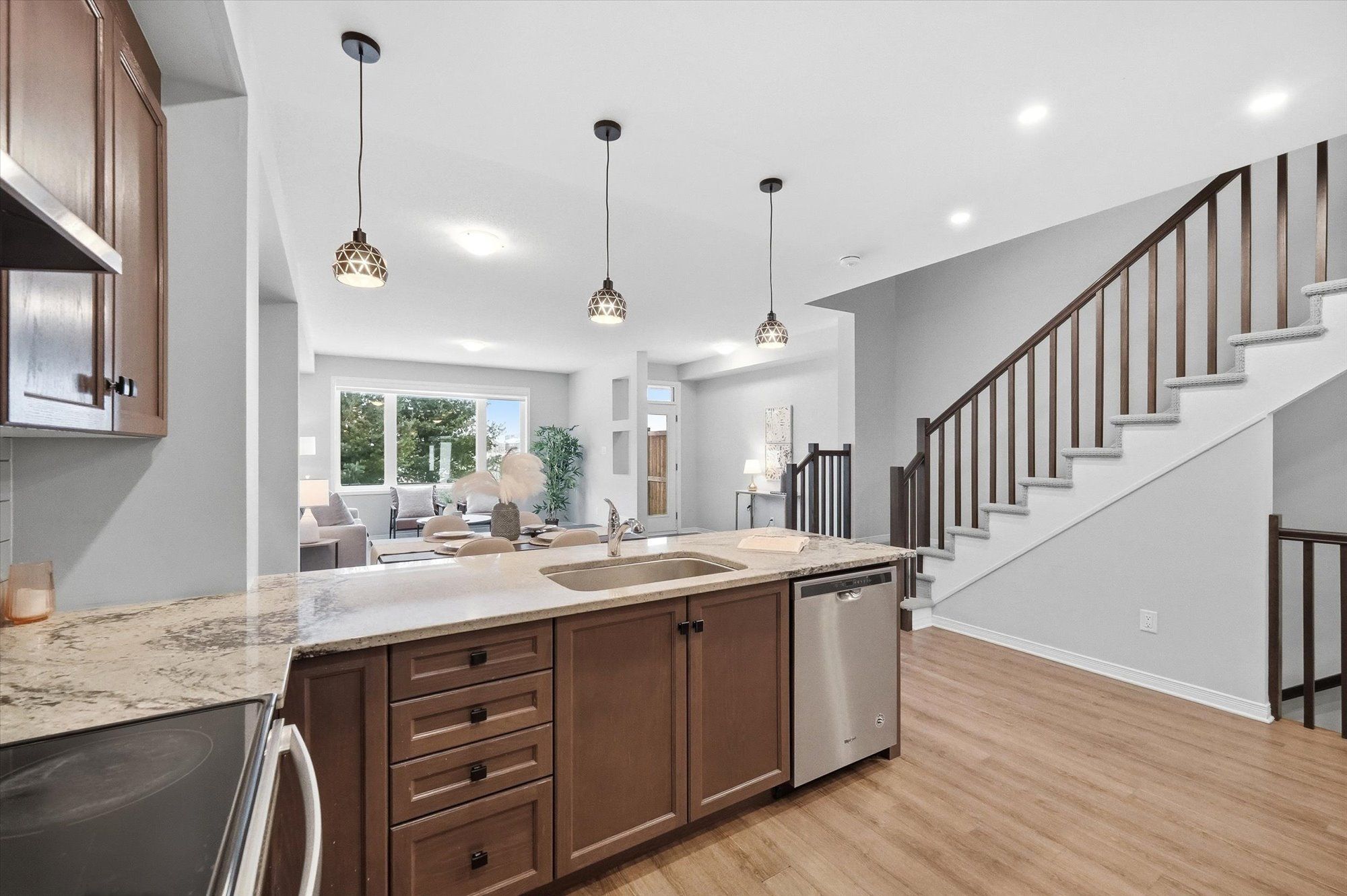 Stunning cardel townhome backing onto a pond - no rear neighbours! This beautifully maintained cardel townhome offers approximately 2,200 sq. Ft. Of stylish and functional living space, featuring 3 spacious bedrooms and 4 bathrooms in a highly desirable family-friendly community. The main floor impresses with 9-foot ceilings, expansive windows, and an abundance of natural light, creating a bright and airy ambiance throughout. The open-concept design flows effortlessly between living and dining areas into a sophisticated kitchen, showcasing a large island with granite countertops, stainless-steel appliances, ceramic tile, and a walk-in pantry. Designed for both everyday living and stylish entertaining, this space is as functional as it is inviting. Upstairs, the expansive primary suite features large windows overlooking the pond, a spacious walk-in closet, and a luxurious 5-piece ensuite with double sinks, a glass shower, and a relaxing soaker tub. Two additional generously sized bedrooms, a full bathroom, and second-floor laundry add everyday convenience. Central vacuum rough-ins are thoughtfully pre-installed for added future convenience. The builder-finished basement extends the living space with a versatile recreation area ideal for a home office, gym, or media lounge, complemented by ample storage and a full bathroom, offering excellent flexibility for guests or multigenerational living. Enjoy peaceful outdoor living with no rear neighbours and direct pond views, offering privacy and a serene natural backdrop year-round. Perfectly located near parks, quality schools, shopping, and transit, this move-in-ready home combines modern comfort, thoughtful upgrades, and an unbeatable setting.