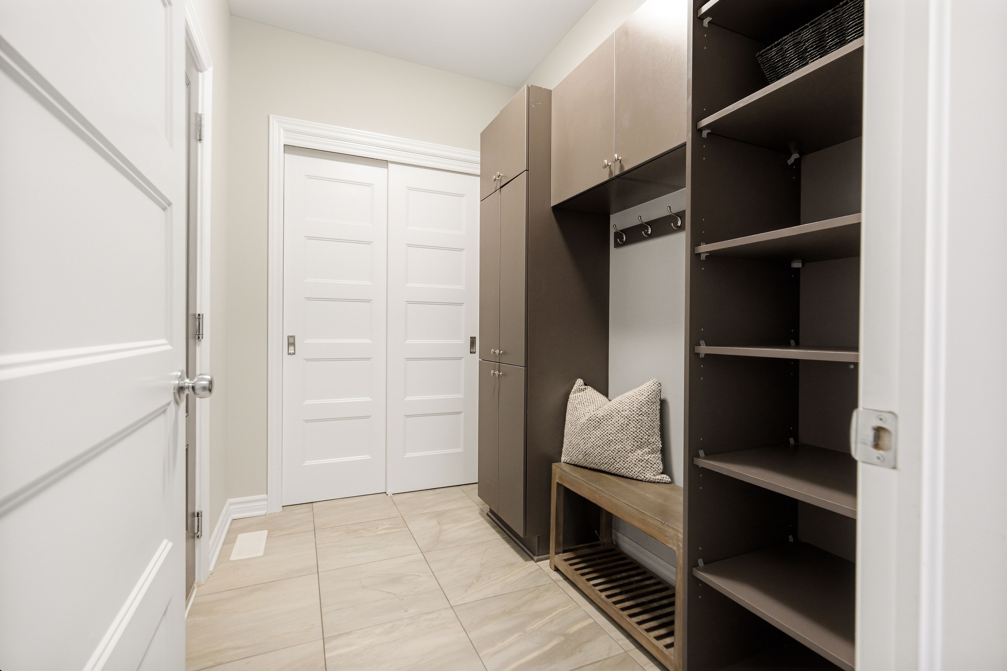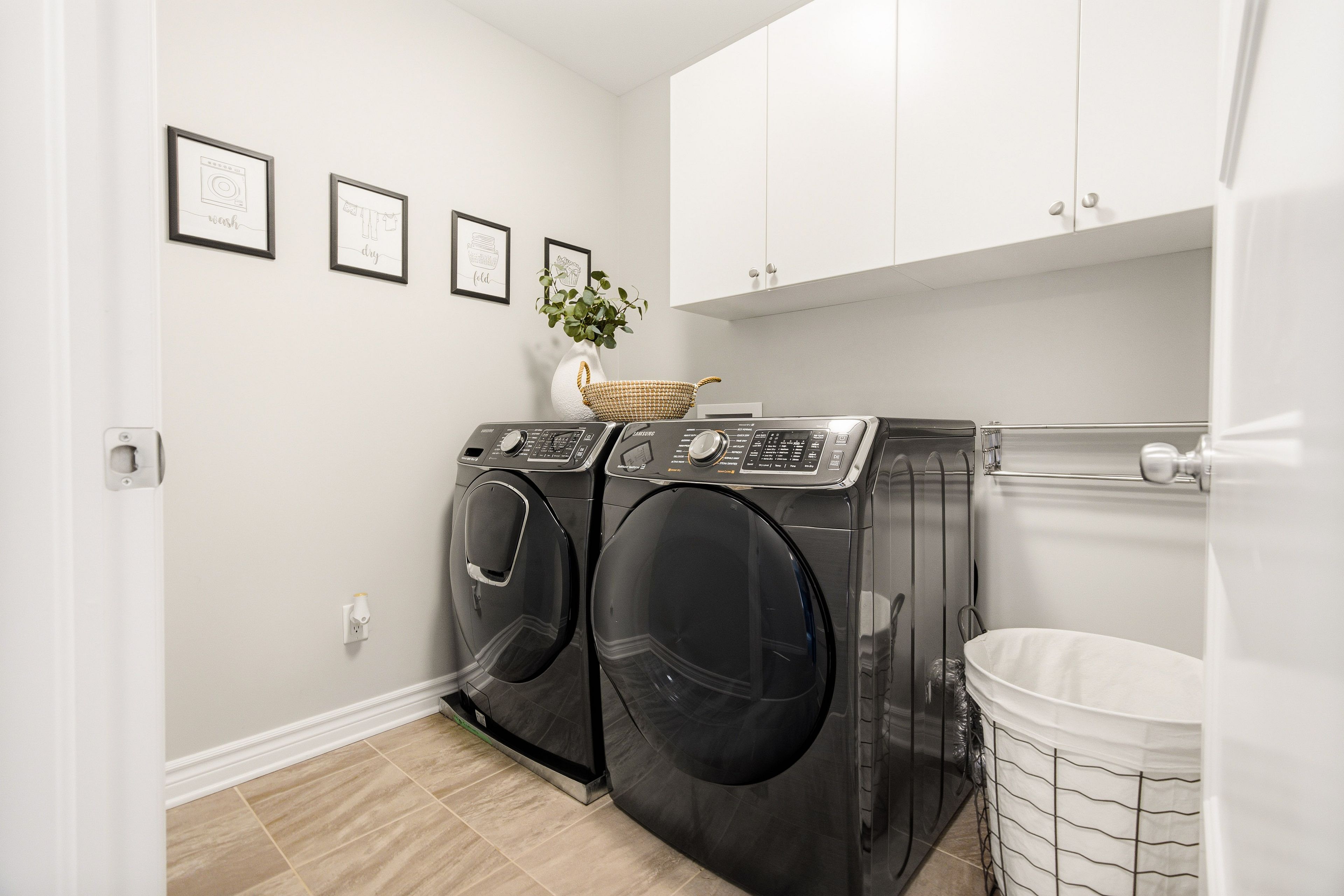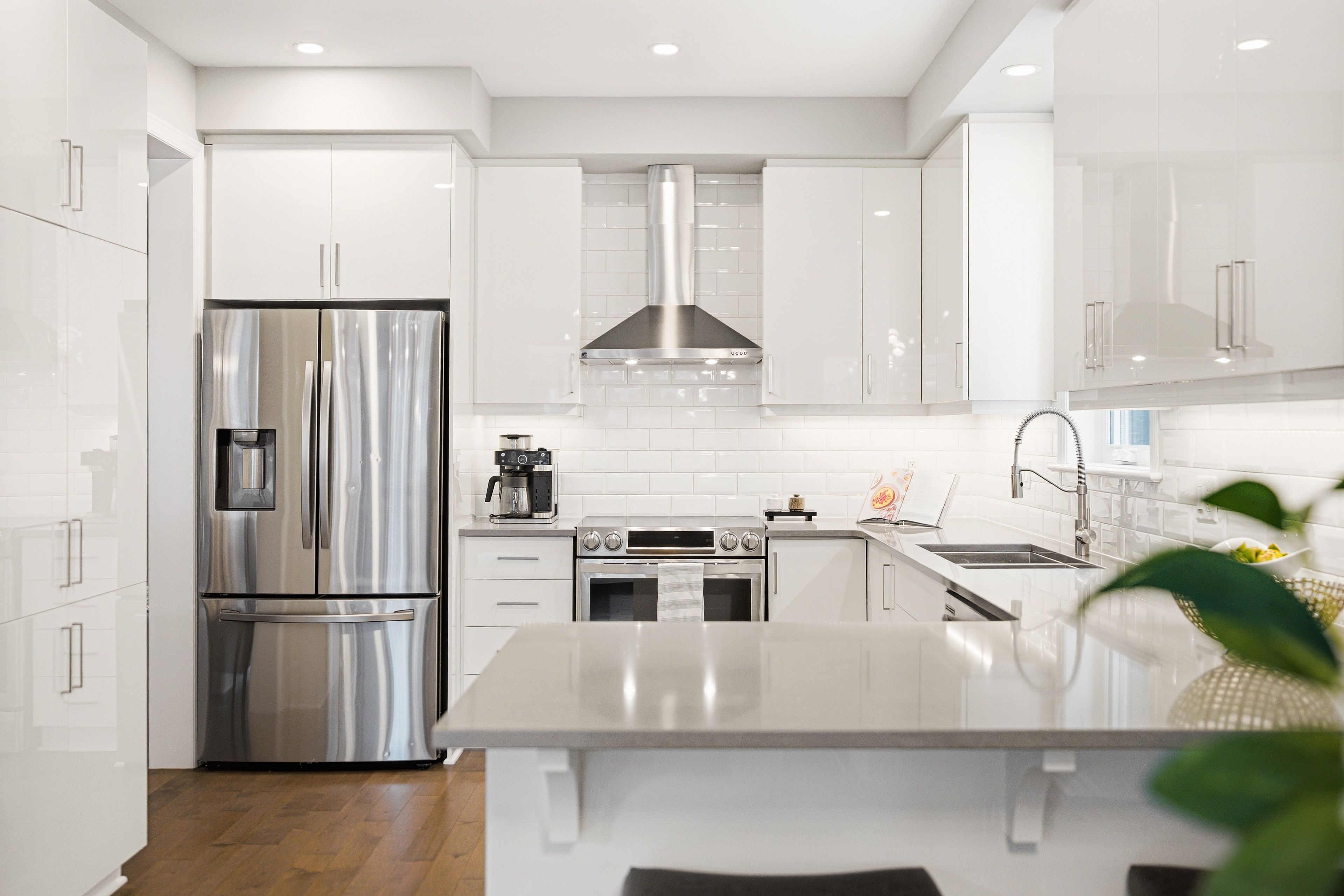 • Kitchen features quartz counters, upgraded cabinetry, and ample counter space.