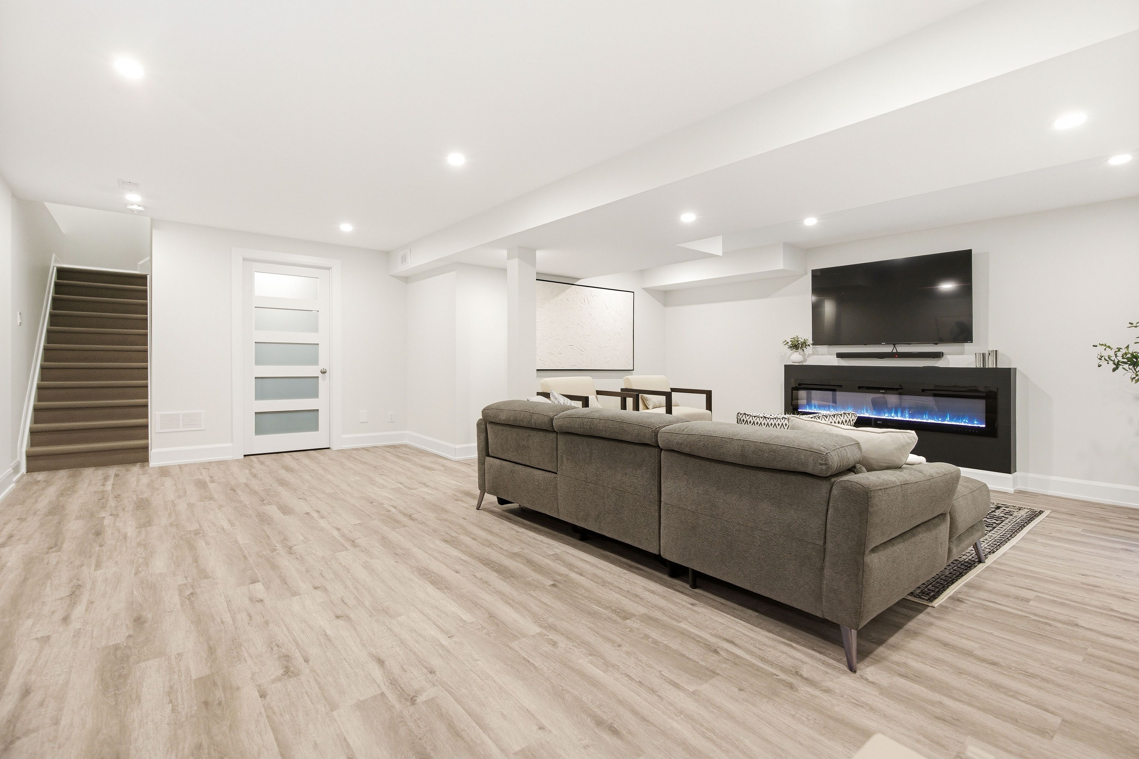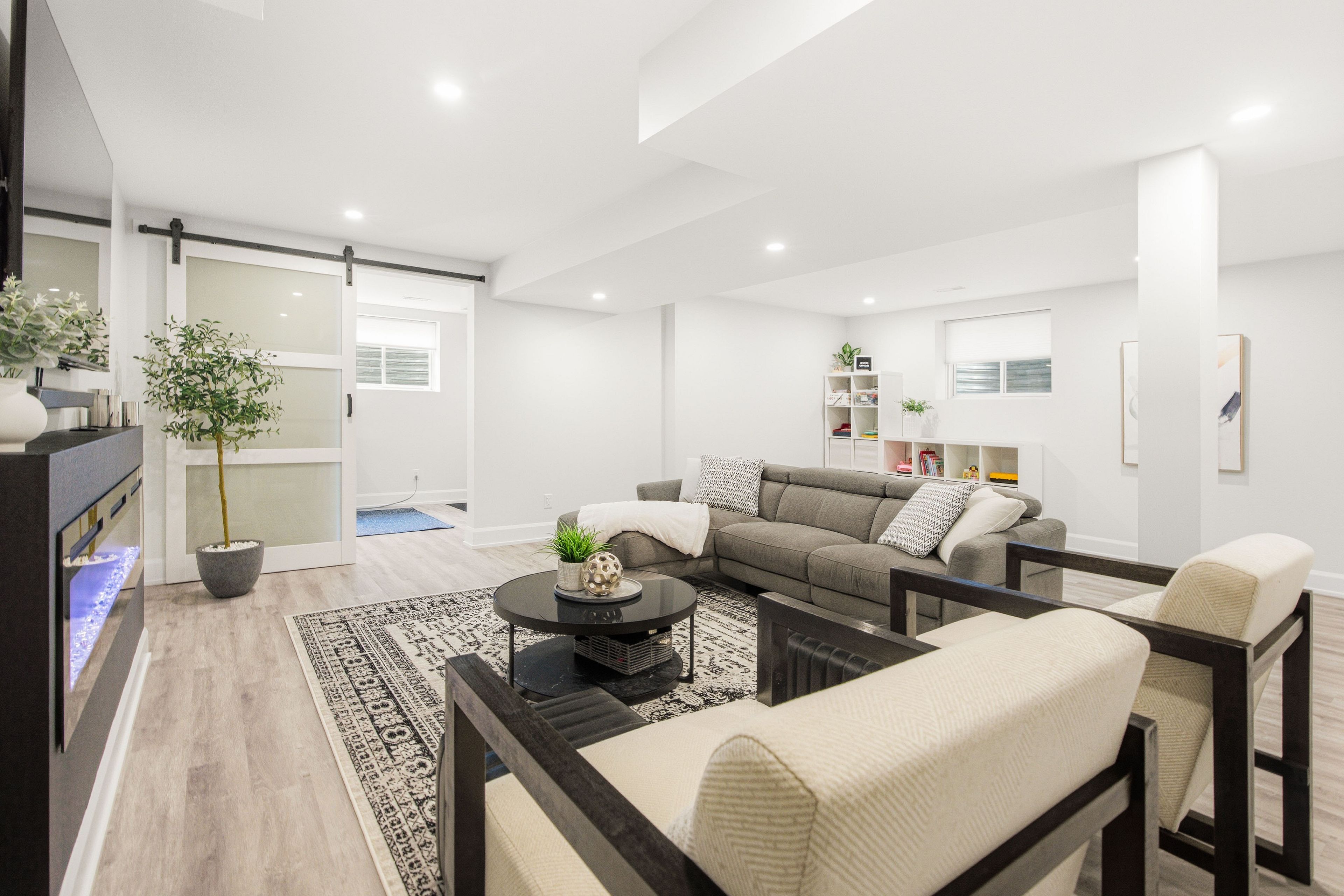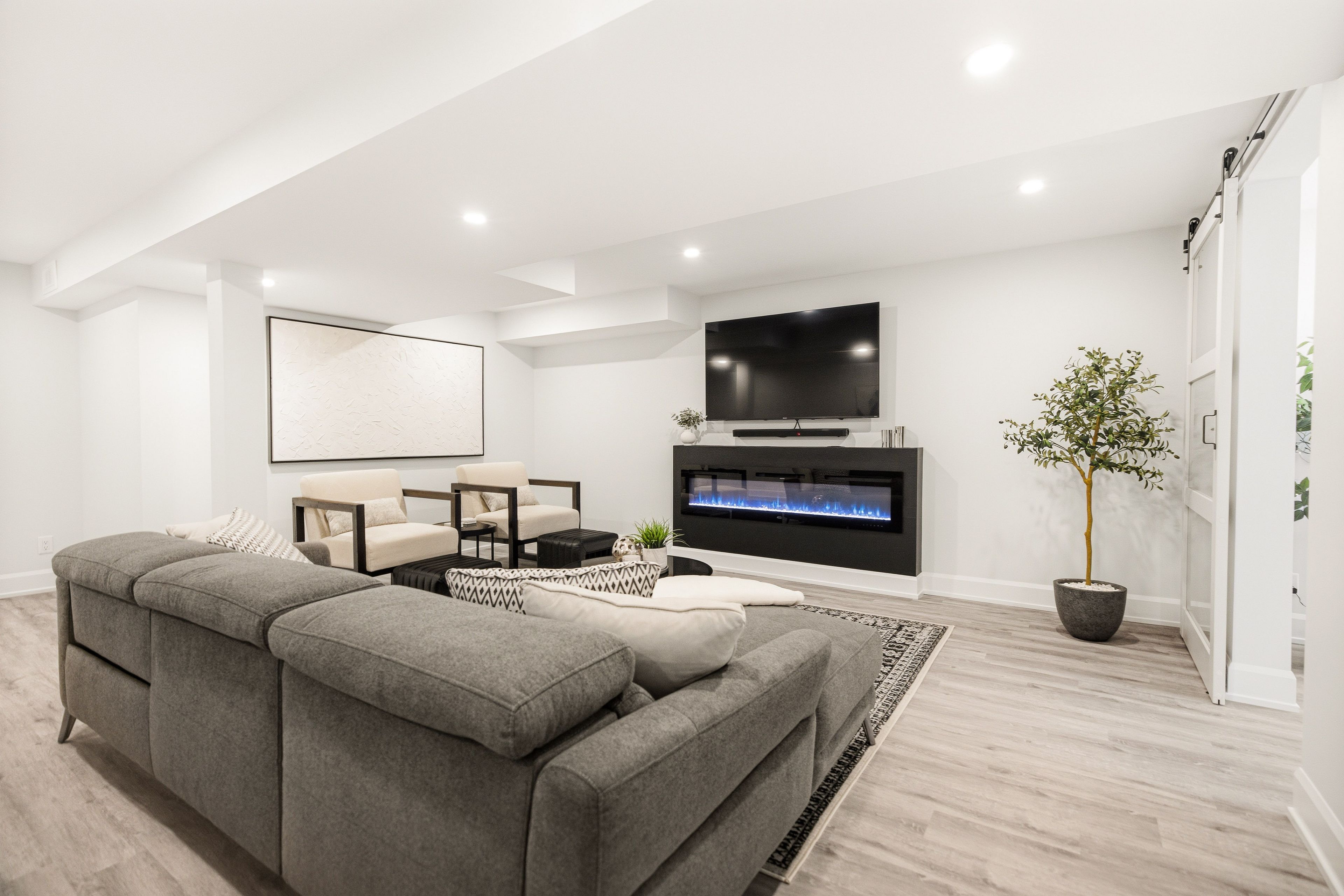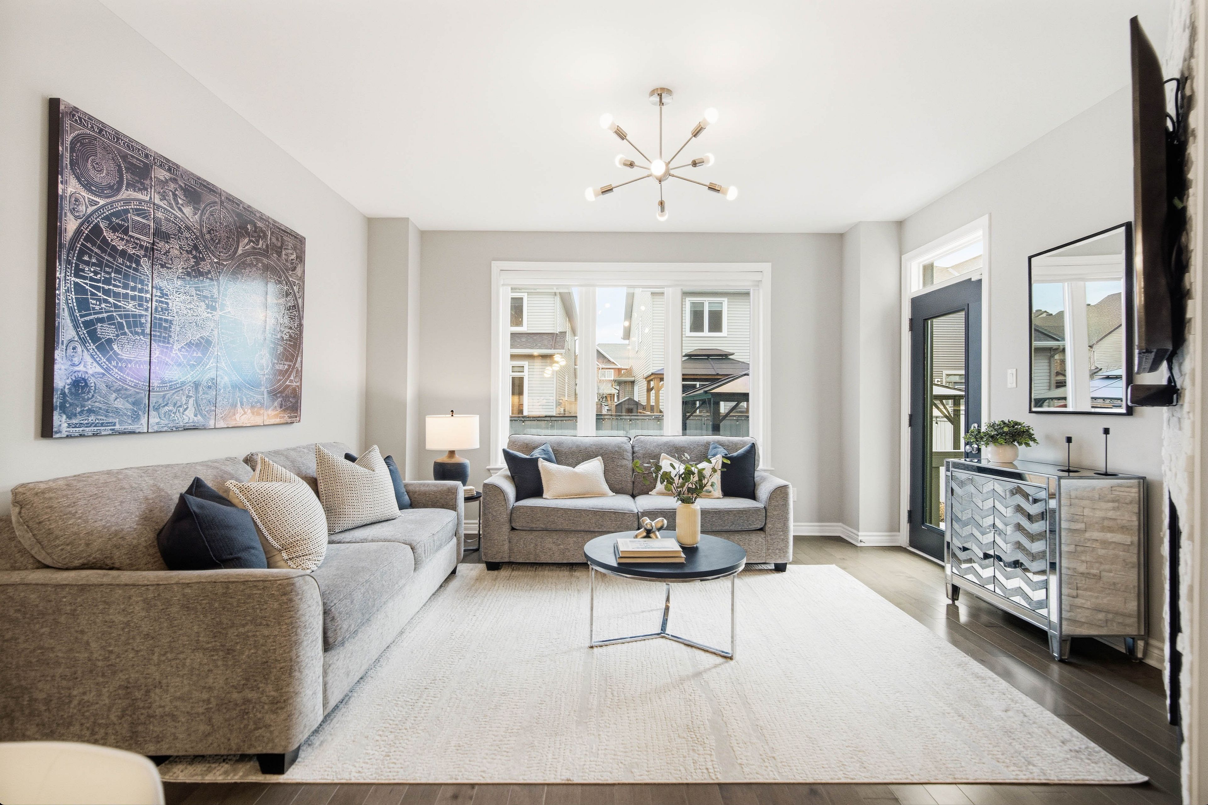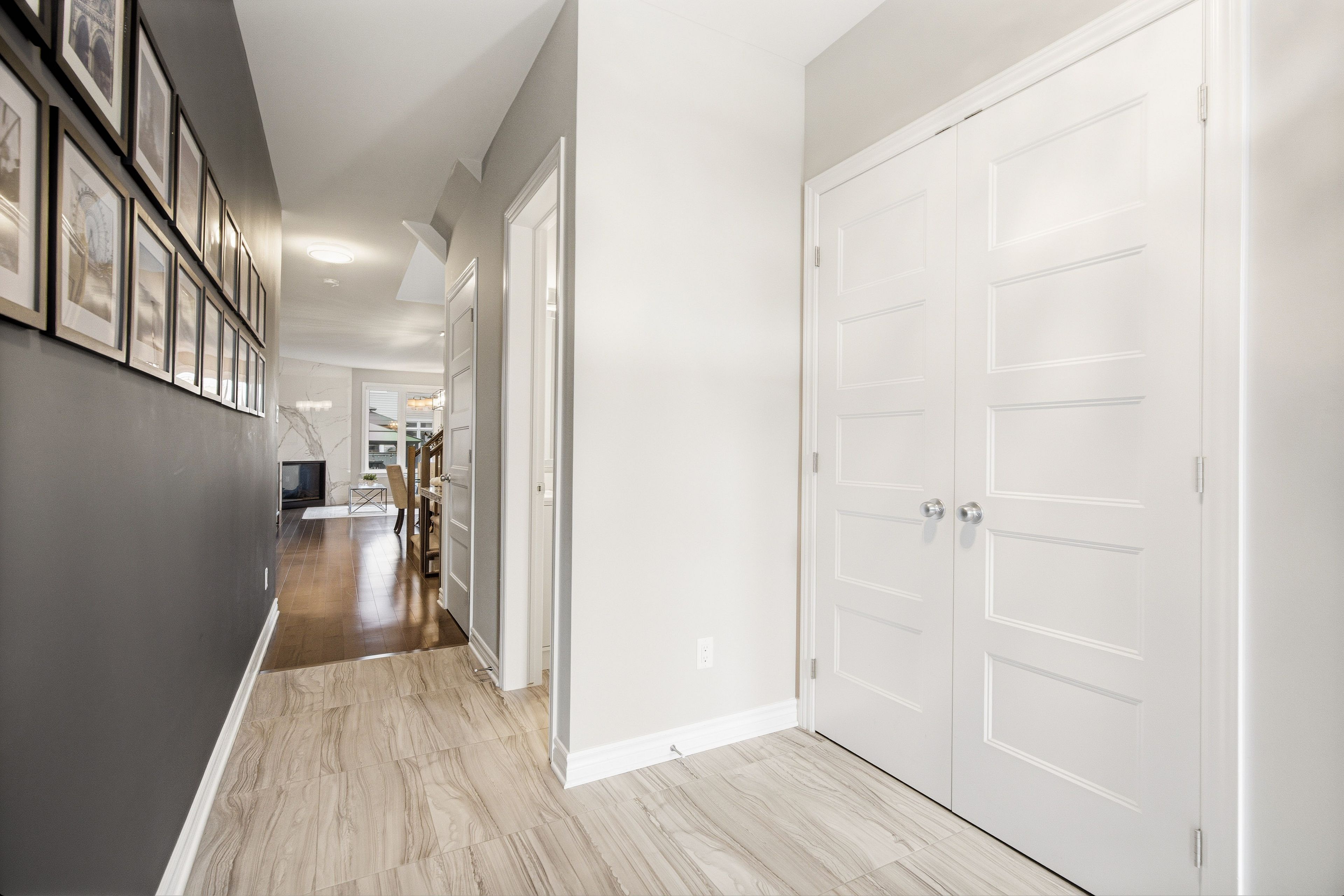 • Two-sided fireplace in the living room creates a cozy atmosphere.