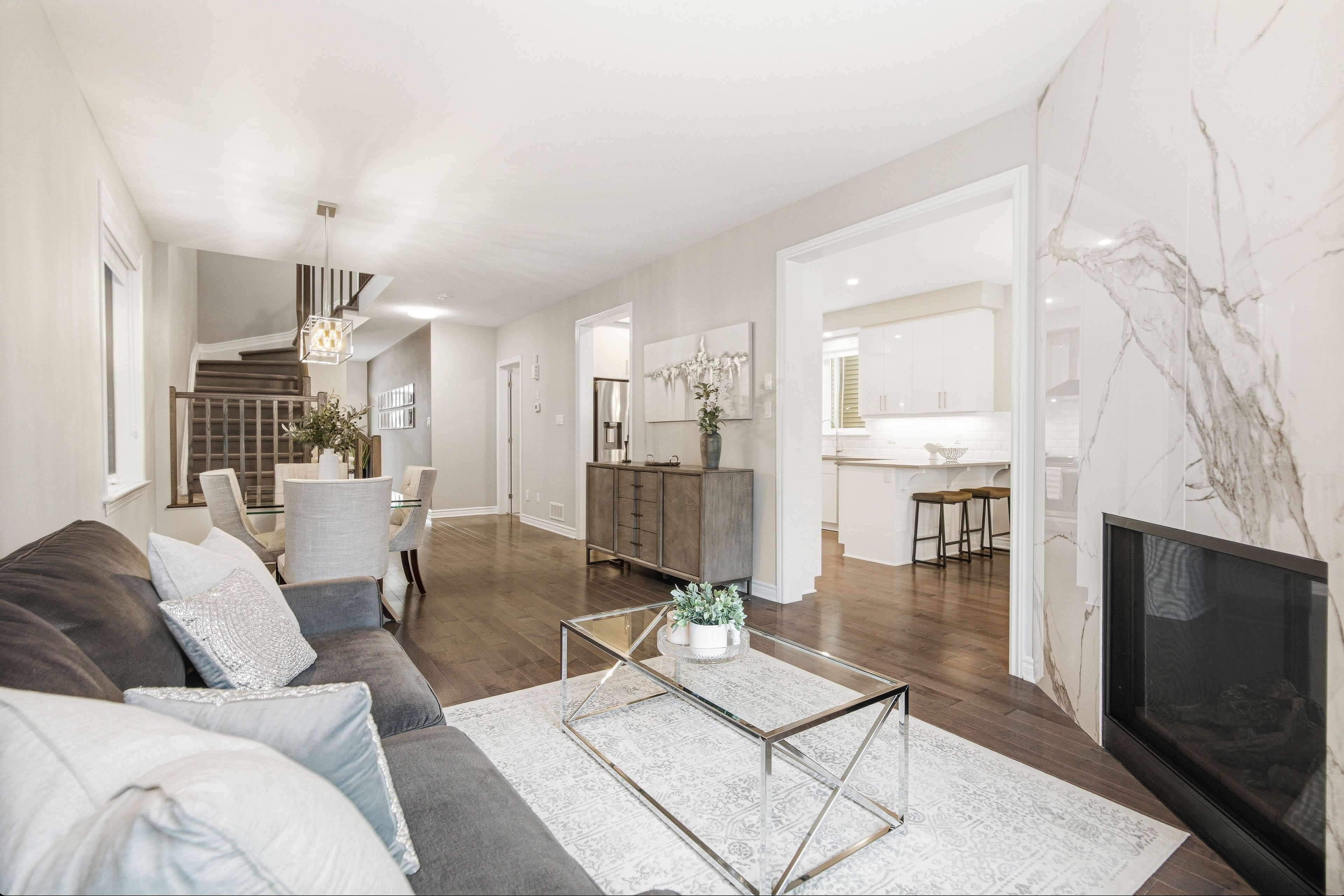 If you've been searching for a newer home where the upgrades are already done - this one is worth a look. Set in findlay creek village, one of ottawa's go-to communities for families, you're close to schools, parks, dog park and everything you need day-to-day, while still being about 20 minutes to downtown. Built in 2019 by tartan, this 'parkhill' model offers nearly 3,000 sq. Ft. Of finished space and stands out well beyond typical builder-grade. From the moment you walk in, the difference is clear, featuring upgrades throughout a functional layout that feels open but still defined. The living room is anchored by a two-sided fireplace with a custom marble surround, and the kitchen delivers with upgraded quartz counters and cabinetry, a pantry wall and plenty of functional counter space. The peninsula opens to the separate family room, overlooking the backyard. Upstairs, the 3-bedroom + loft layout gives you spacious rooms to accompany the bright and flexible loft area, with a primary suite featuring a 5-piece ensuite and two separate walk-in closets. There's also a proper laundry room for washing and sorting - not just a closet in the hallway. The finished basement adds even more living space with a rec room, fireplace, and a flexible den. The fully fenced and interlocked yard with gazebo expands your functional outdoor living space and is ready for summer with zero hassle. Just move in and enjoy this move-in ready family home in a community that continues to grow in demand.