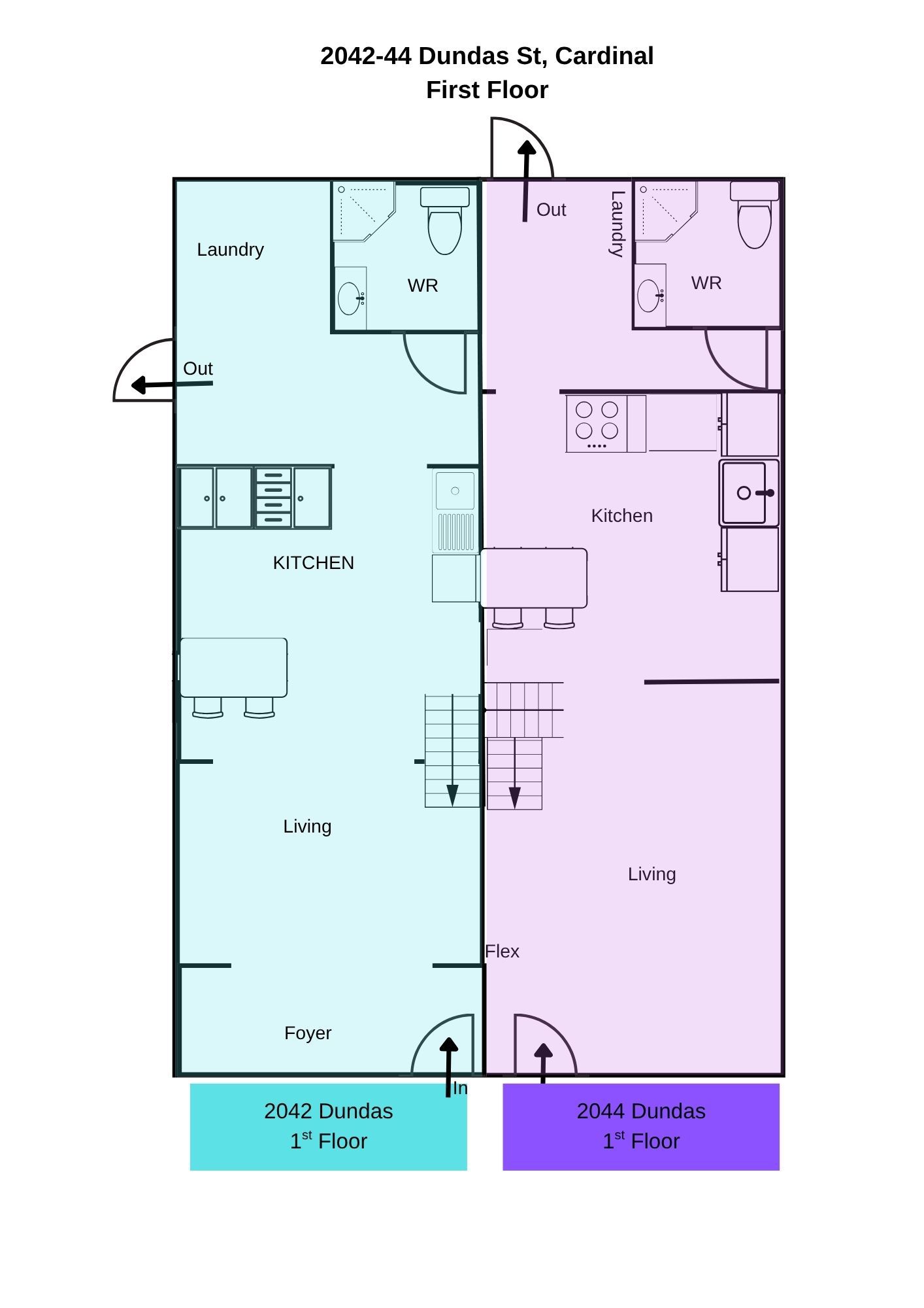 Turnkey duplex live in or rent out. Welcome to this freshly renovated duplex with new central air systems installed in august. You can enjoy the charming riverside town of cardinal just a short walk to the st. Lawrence river, parks, and shopping. Each side of this spacious property features 2 bedrooms, 2 full bathrooms, and a versatile den perfect for a home office, nursery, or guest space. Thoughtfully designed with bright, open living areas, eat-in kitchens, main floor laundry, and large entryways, the layout offers comfort and functionality for a variety of living needs. Whether you're looking for a multi-generational setup, rental income, or space to run a home-based business, this property delivers flexibility in a quiet, family-friendly neighbourhood close to schools and local amenities. A fantastic opportunity to own a high-potential duplex in a peaceful, sought-after community.