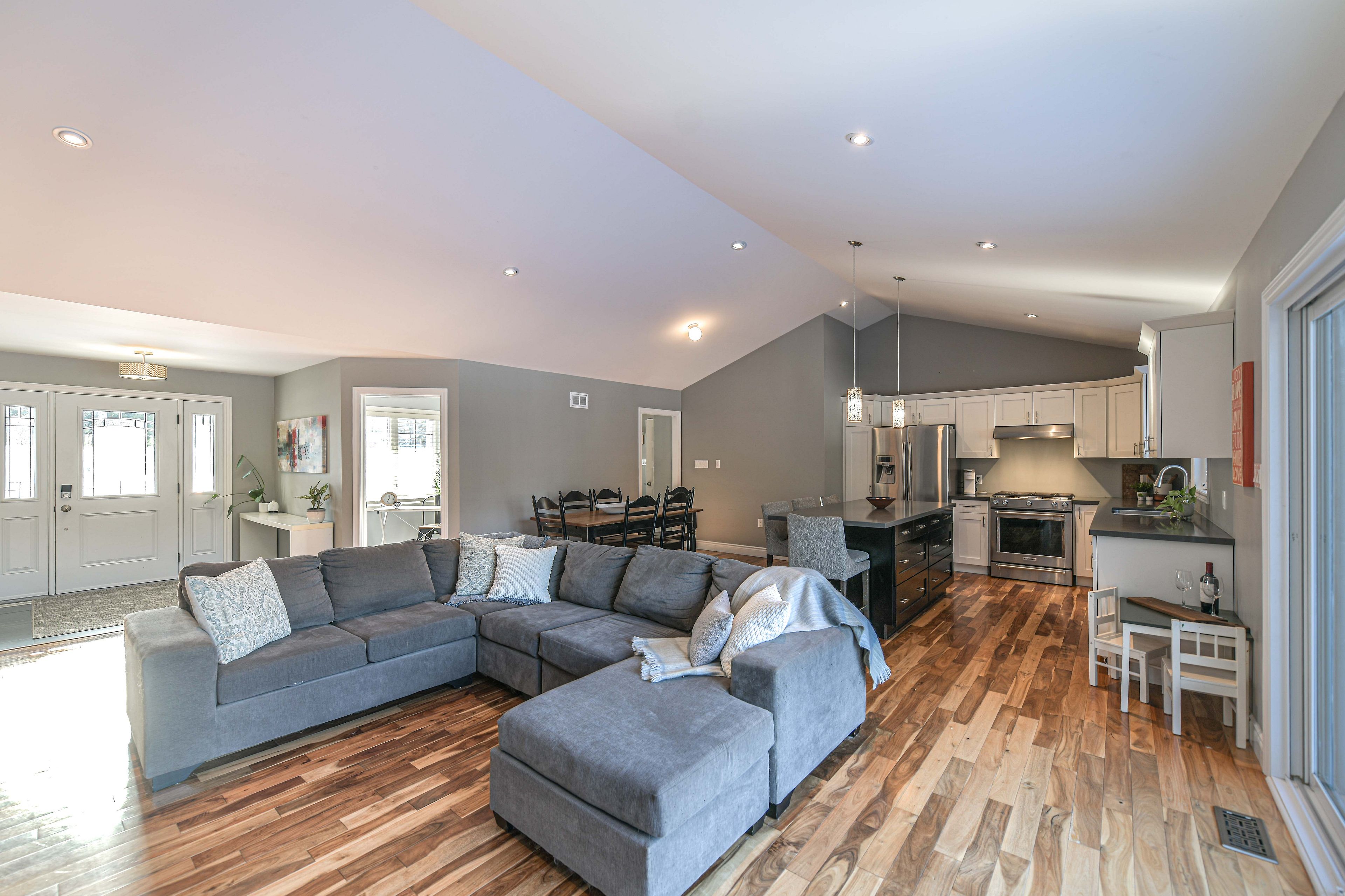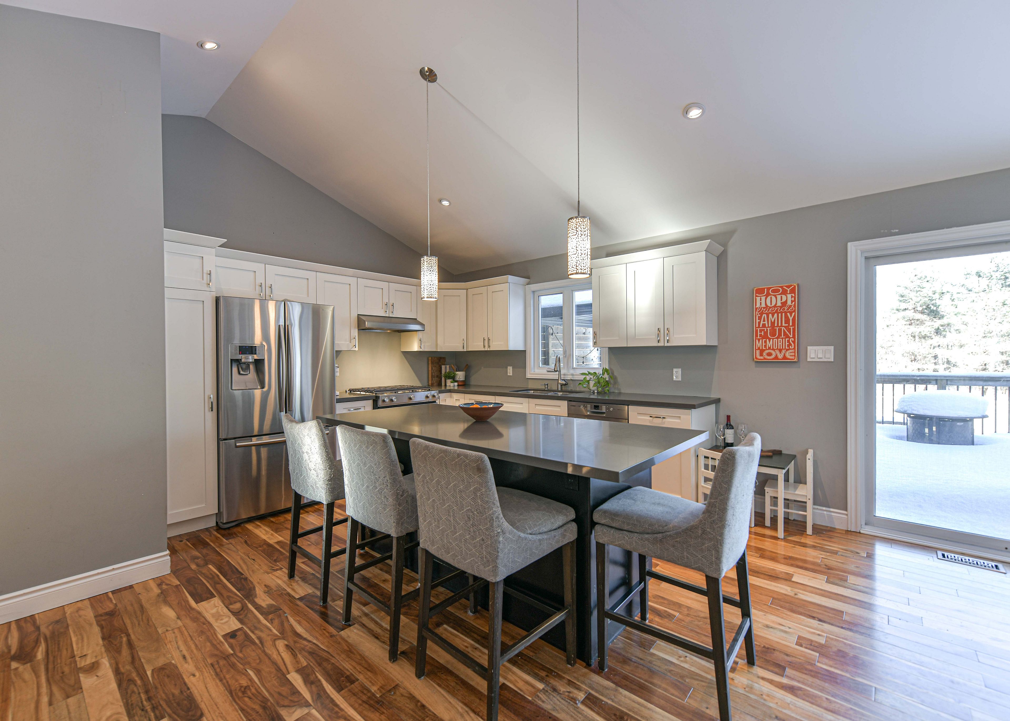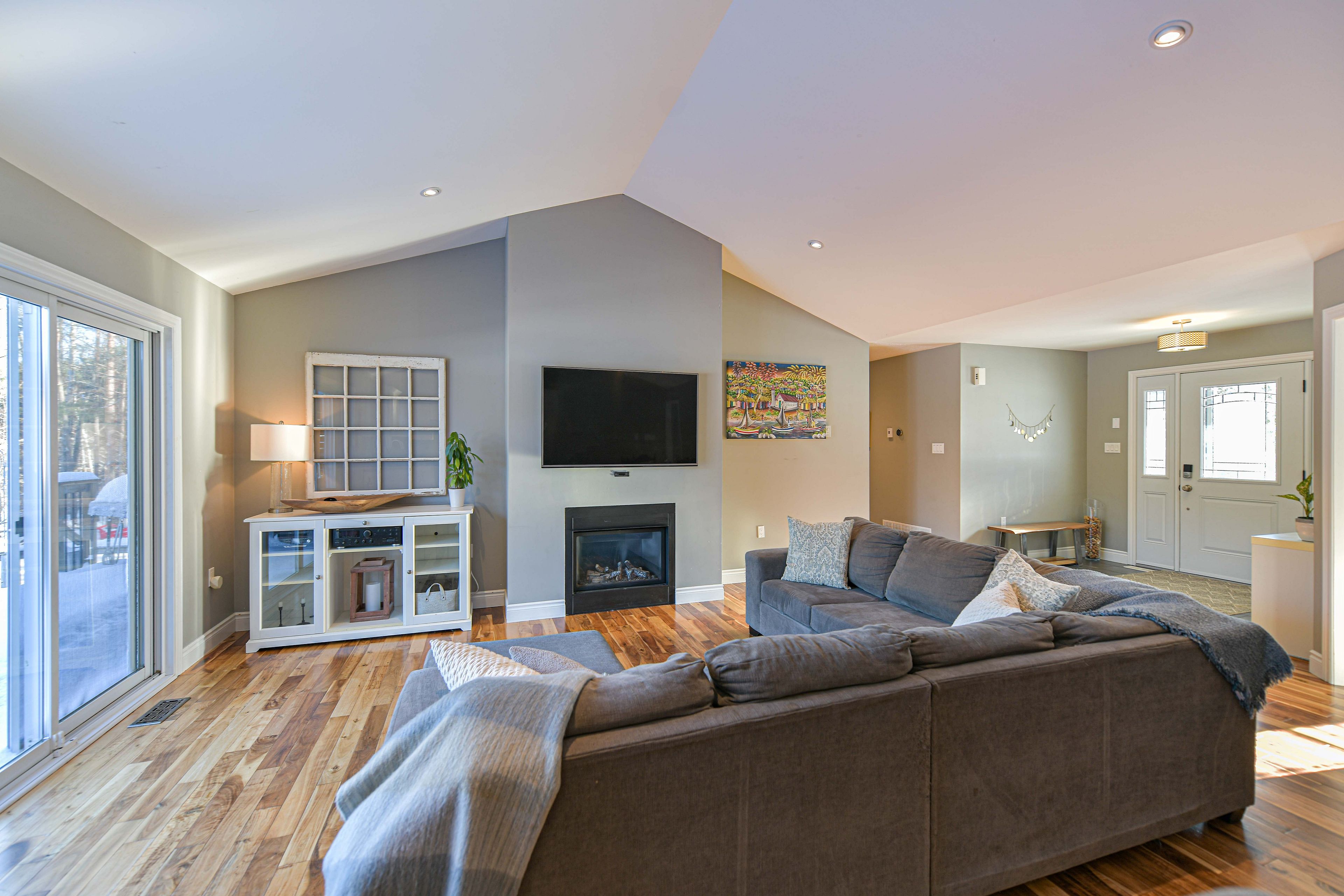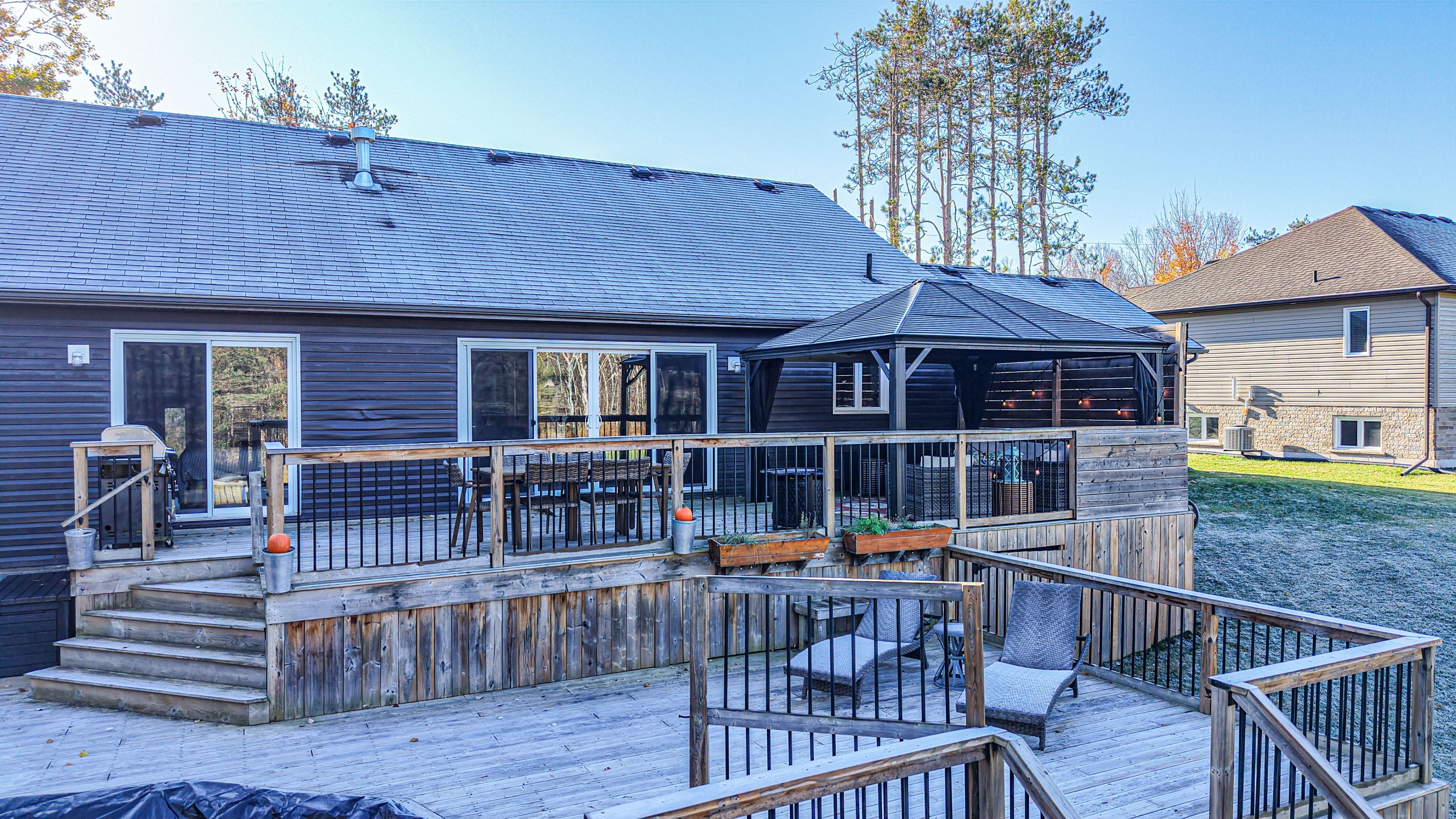 Welcome to this beautifully maintained 3,223 sq. Ft. Family home in the desirable and well-established community of marchmont. Built in 2013 and lovingly cared for by its original owner, this 3+2 bedroom, 3-bath home combines thoughtful design with warm, inviting living spaces. The open-concept main floor showcases a striking vaulted ceiling, a cozy gas fireplace, and an upgraded kitchen featuring quartz countertops and a generous island-perfect for gatherings and everyday family life. The main level offers exceptional functionality with a bright and spacious primary bedroom complete with a full ensuite, a dedicated home office ideal for remote work, and the convenience of main floor laundry. Large windows throughout the home bring in abundant natural light, enhancing the home's welcoming atmosphere. Step outside to a wonderful two-tiered deck overlooking mature trees that create a peaceful, outdoor retreat. The professionally finished lower level extends the living space with a large, inviting rec room, two additional bedrooms, and a full bathroom-perfect for guests, teenagers, or extended family. Additional features include inside entry from the triple car garage and close proximity to orillia's amenities, parks, and recreation. The home is also situated within the boundary of the sought-after marchmont public school, known for its strong community and excellent reputation. With hwy 400 access only 10 minutes away, this property offers both tranquility and convenience. A rare opportunity to own a pristine, well-loved home in one of the area's most coveted neighbourhoods.