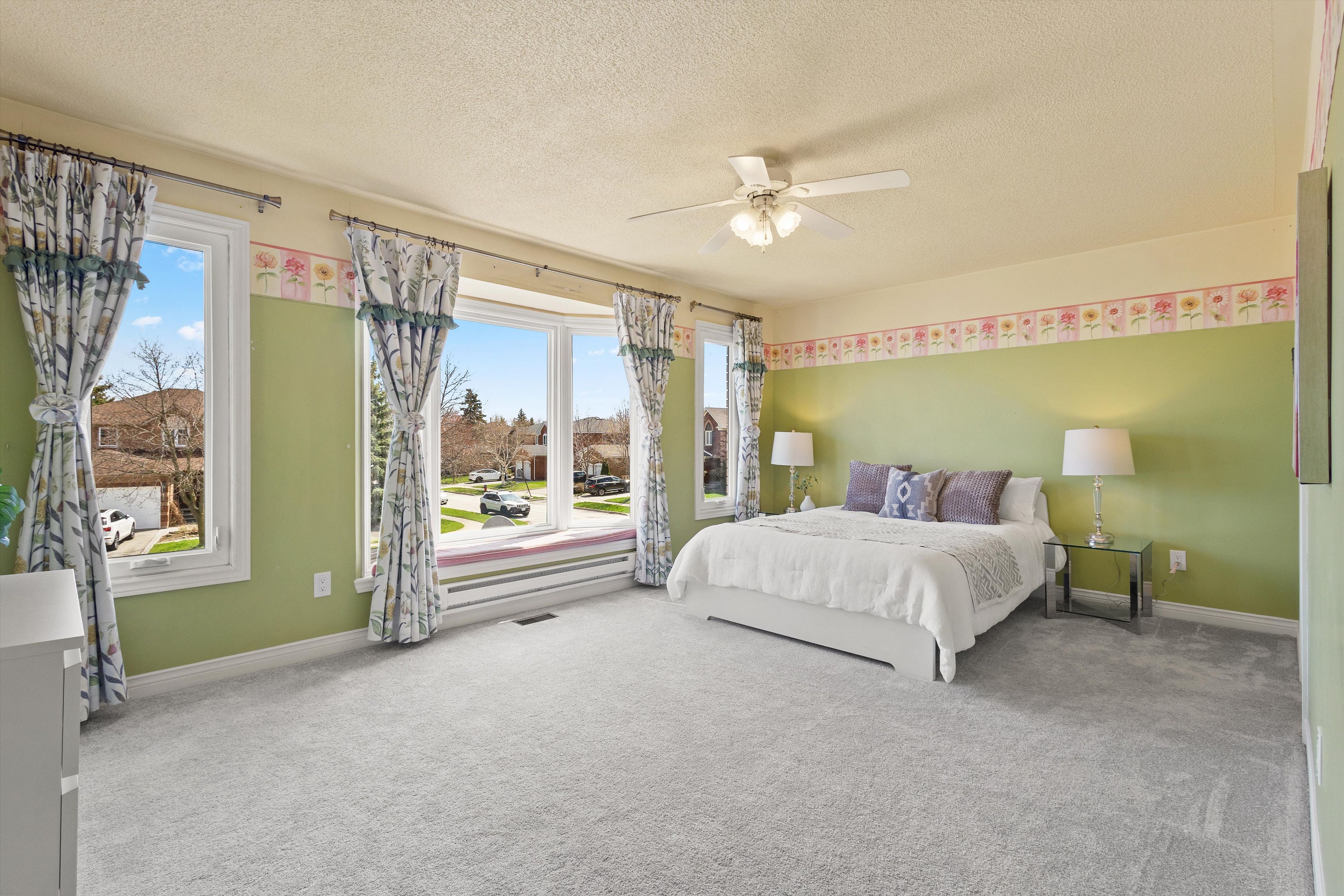• Large bay windows showcase stunning views and let in natural light.