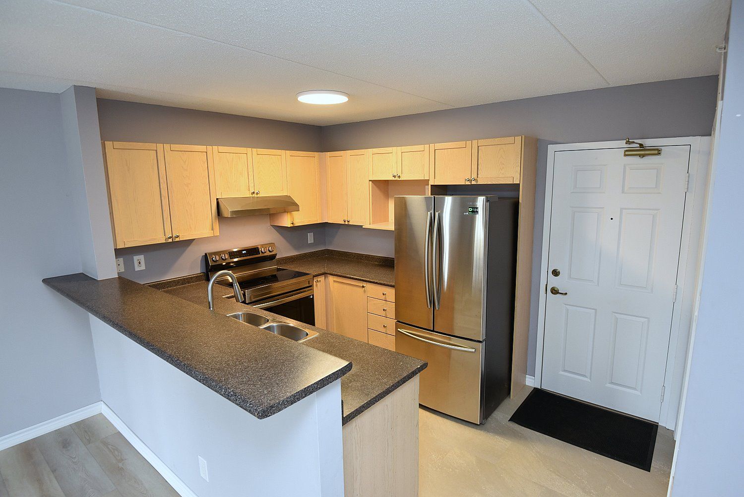 This 2 bedroom, 1 bathroom unit faces south allowing lots of natural sunlight to come and has easy access to highways, schools, restaurants, shopping and public transit. Located in the much sought after area of uptown orchard condos, this is a very comfortable unit with new vinyl flooring, freshly painted, a new stove and kitchen fixture. Don't miss the in suite laundry, the underground parking spot (#105) and locker offering additional storage space (#26). Other features in the complex include lots of visitor parking, car wash, club house, party room and sauna.