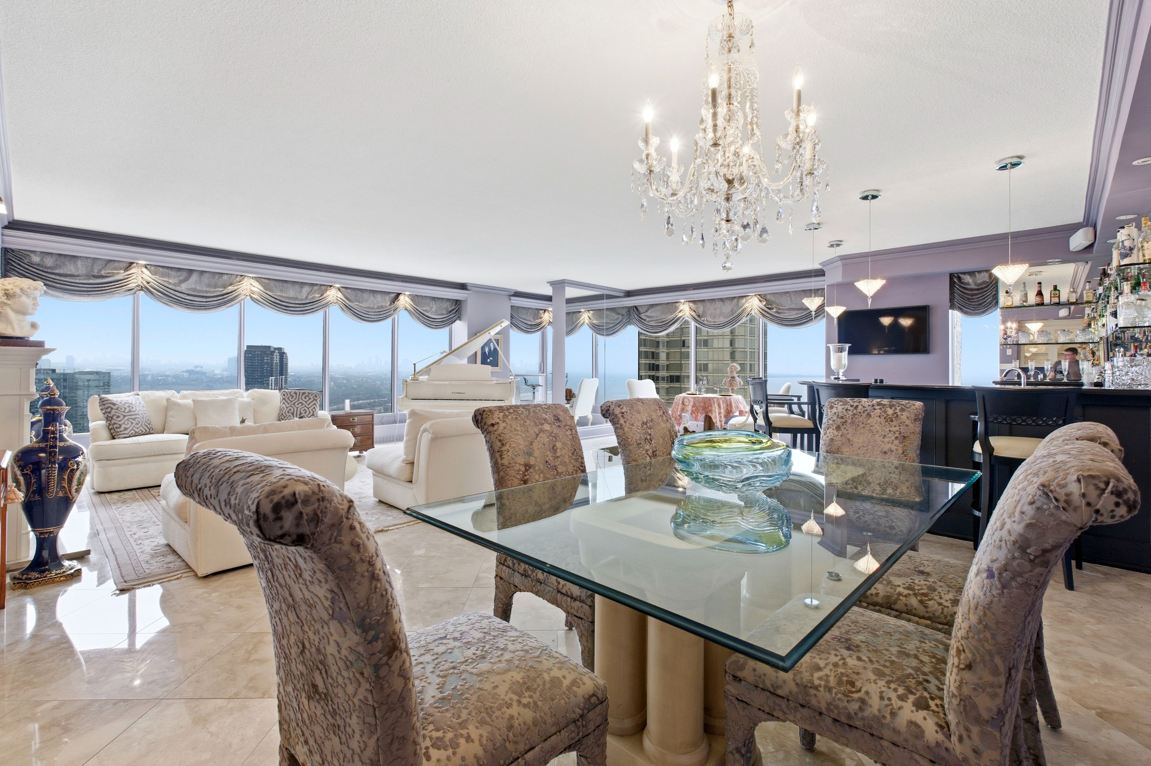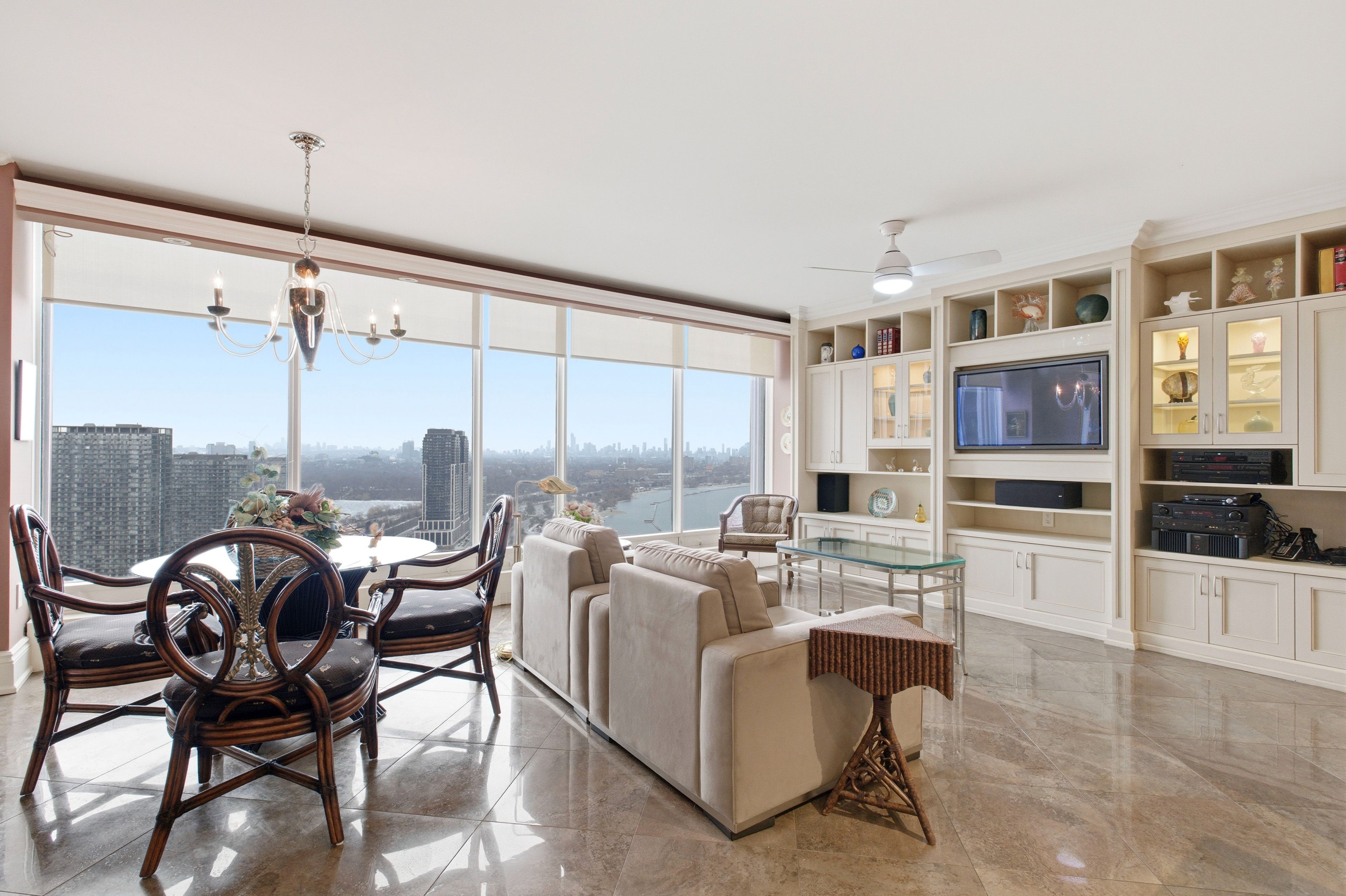 • Spacious 3,247 sq. ft residence with stunning lake and city skyline views.