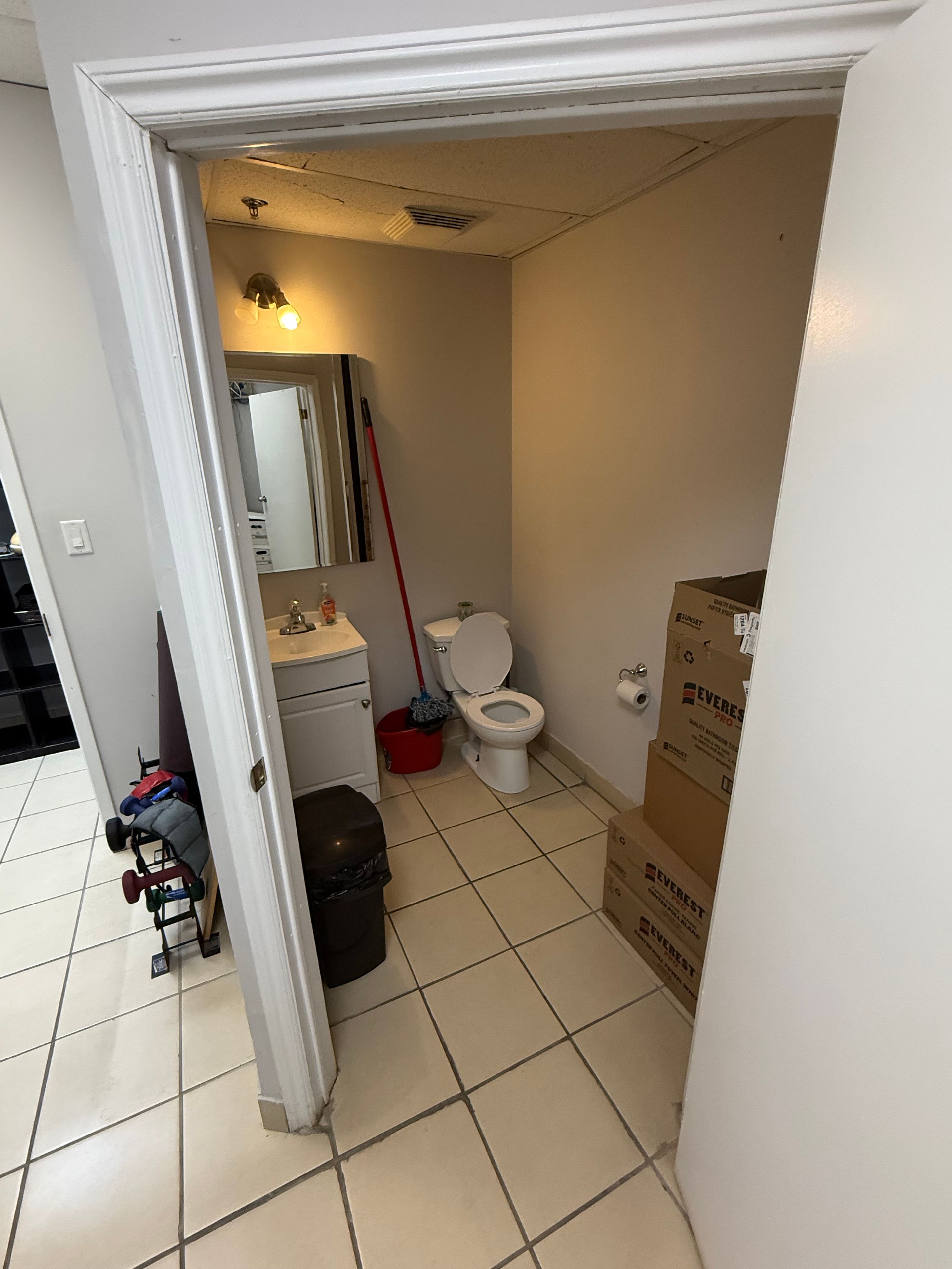 • Private restroom and public restroom available in common area.