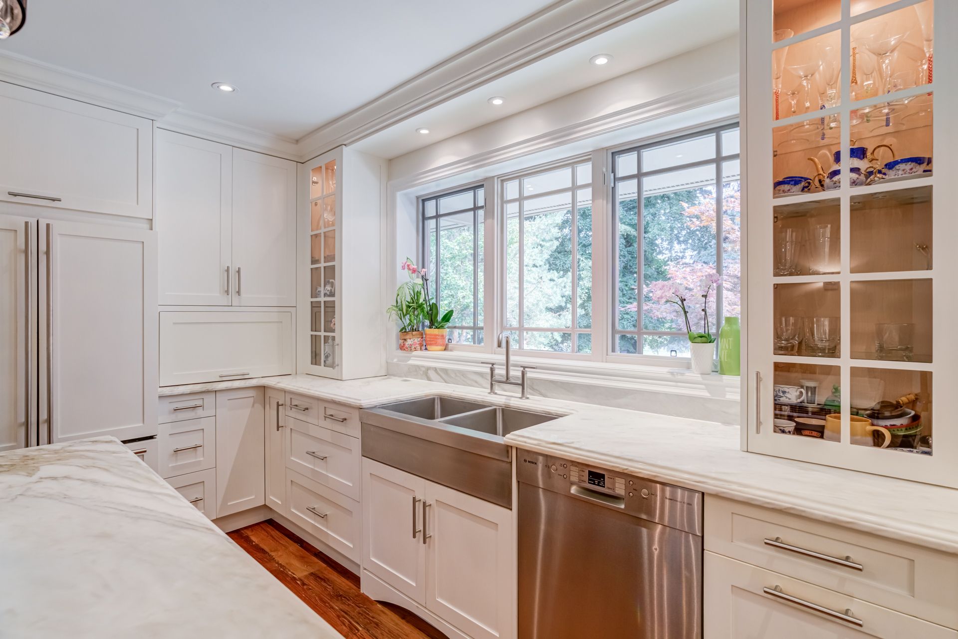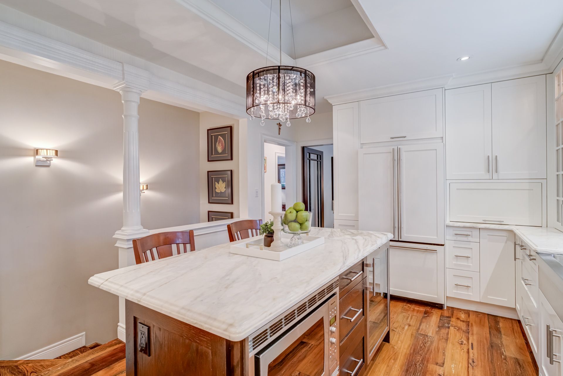 • Gourmet kitchen featuring an island breakfast bar and views of Japanese Maple.