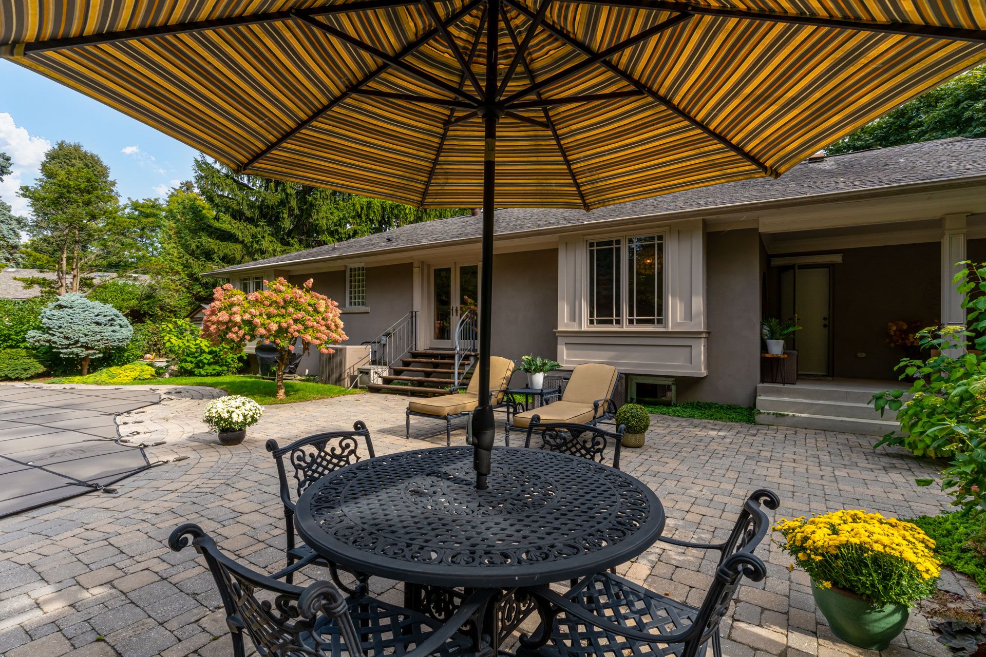 Residing on a mature, landscaped lot in oakville with tree-lined streets creates a gorgeous setting for this lovely 3+1 bedroom bungalow where there are green views from every window. This home provides both a private, tranquil setting and great entertaining spaces. There is a covered porch off the back of the house where views of trees and greenery can be enjoyed. A large, stone patio area hosts an l-shaped pergola framing a sitting or dining area and surrounds the in-ground pool. Centrally located within highly desirable, prestigious eastlake community of southeast oakville, this location makes it ideal for accessing both the lake and the area's top amenities and schools. The large, gourmet kitchen has an island breakfast bar and a large window with a view of a japanese maple tree. Three bay windows offer a warm, inviting ambience; two in bedrooms and one in the dining room. The basement has in-law suite potential as there is a storage area under the kitchen that sides onto the bathroom, and there is separate entrance potential. Situated close to the town's most valuable amenities, there is top-tier education, lakeside leisure with green spaces and close proximity to the waterfront including gairloch gardens and scenic lake ontario trails. For convenience and community, enjoy a short drive to vibrant shops, gourmet restaurants, and cultural attractions of historic downtown oakville. Maple grove village offers excellent shopping and services. Come and see all that this area and home have to offer!