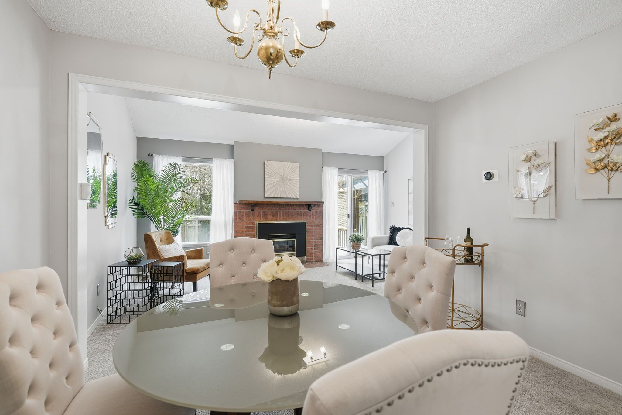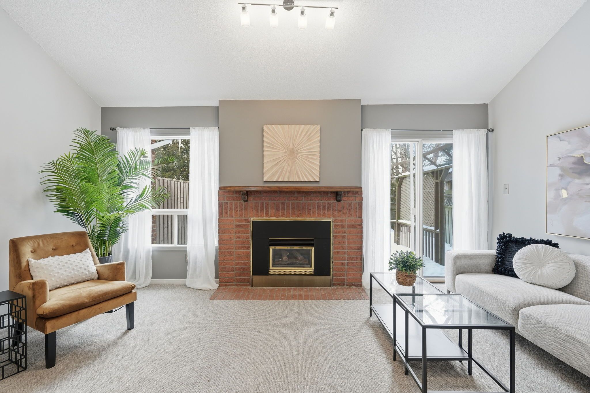 • Bright main floor with high ceilings and a cozy gas fireplace.