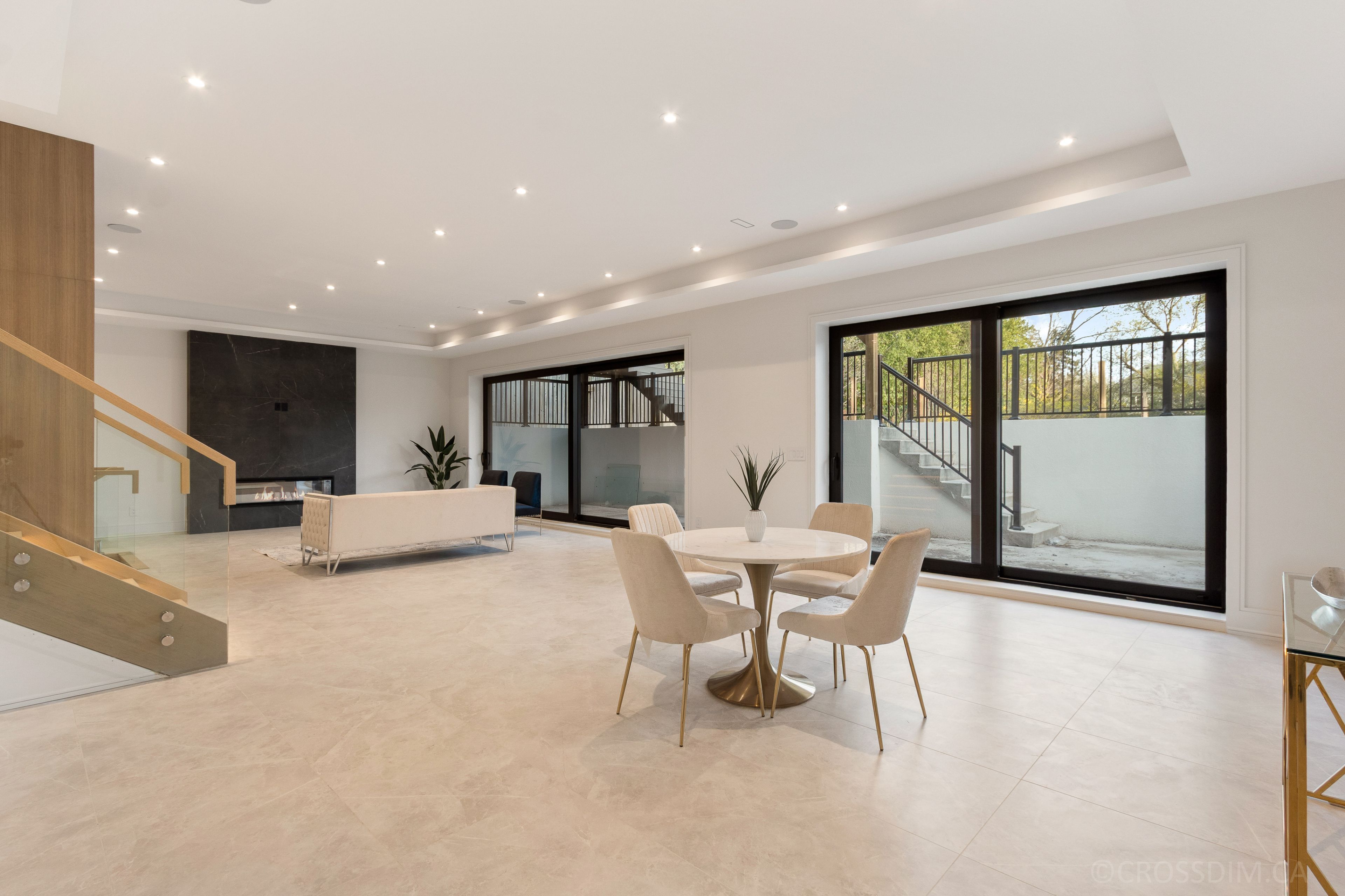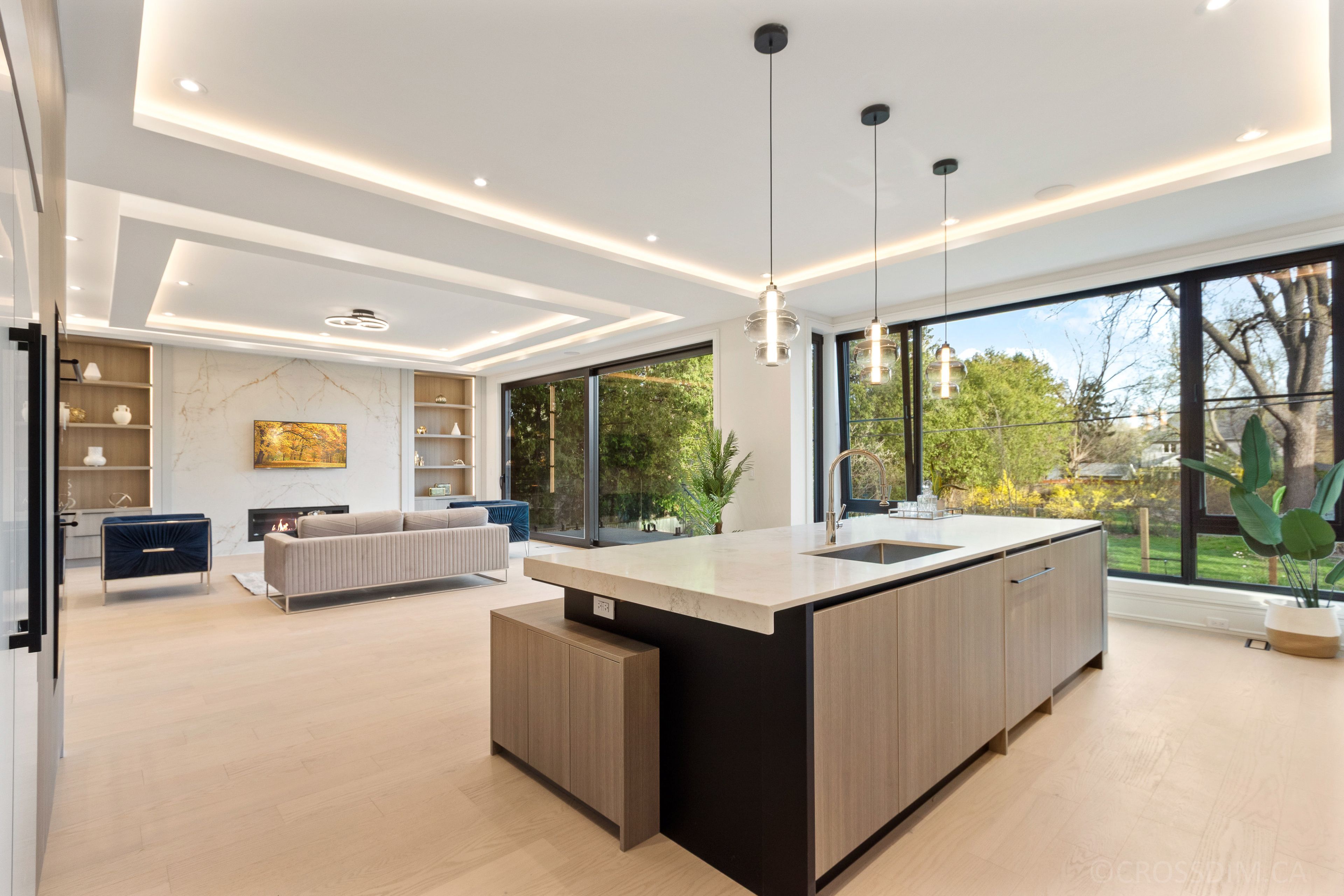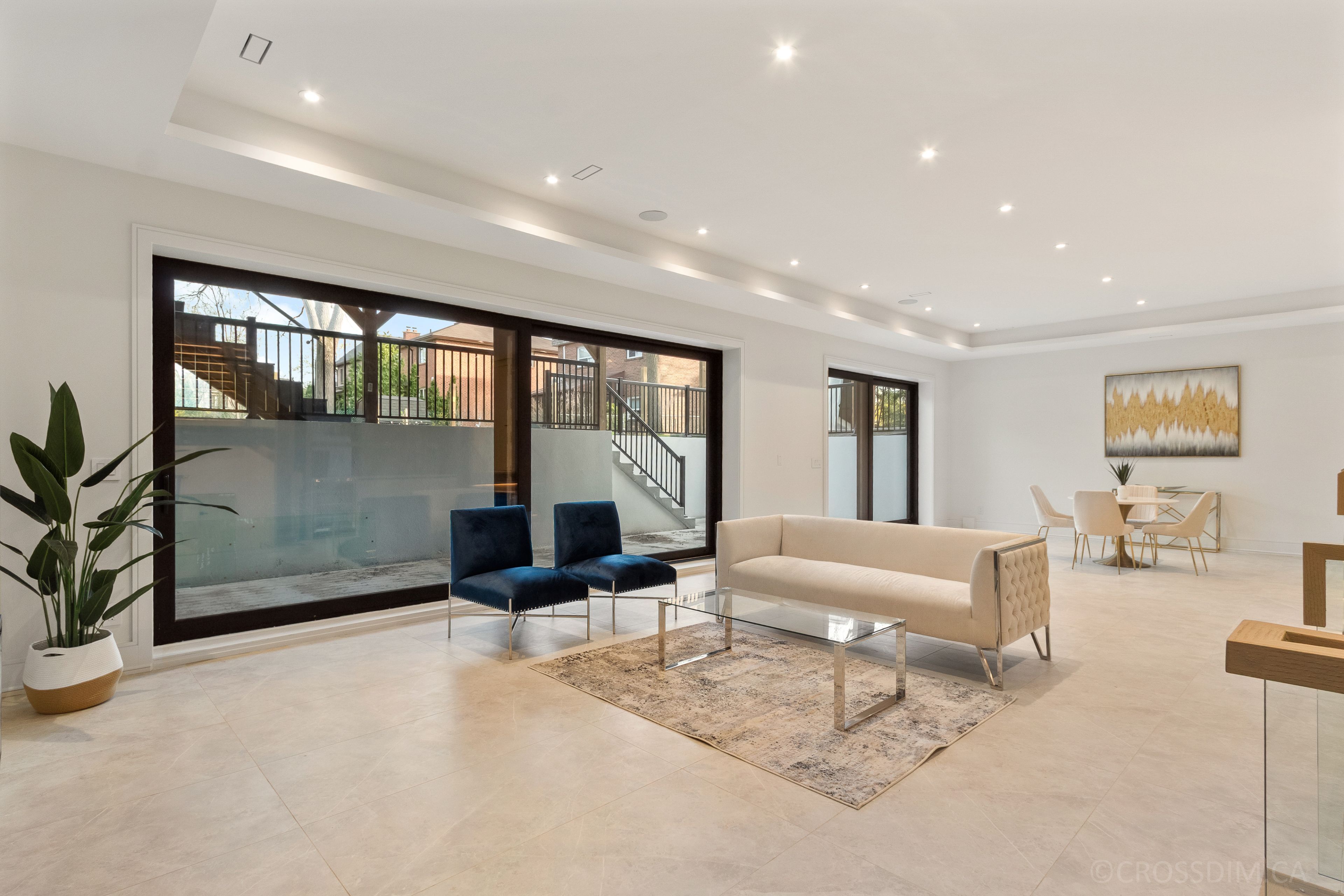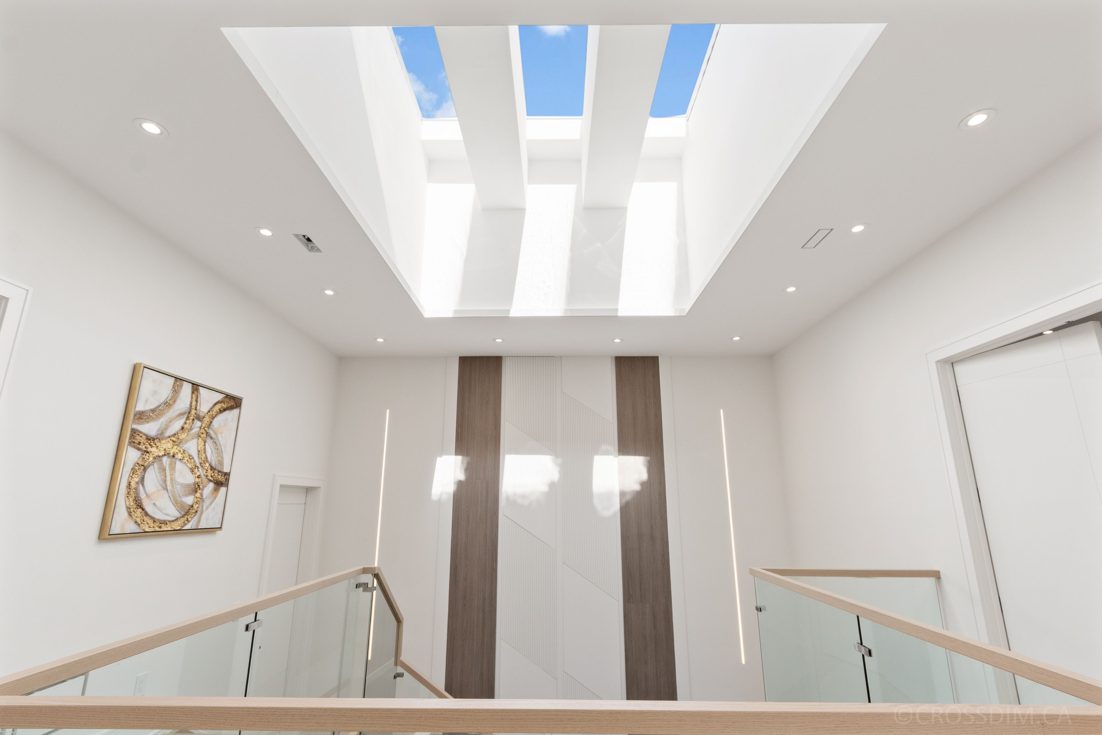 • Bright interiors featuring floor-to-ceiling windows and multiple skylights.