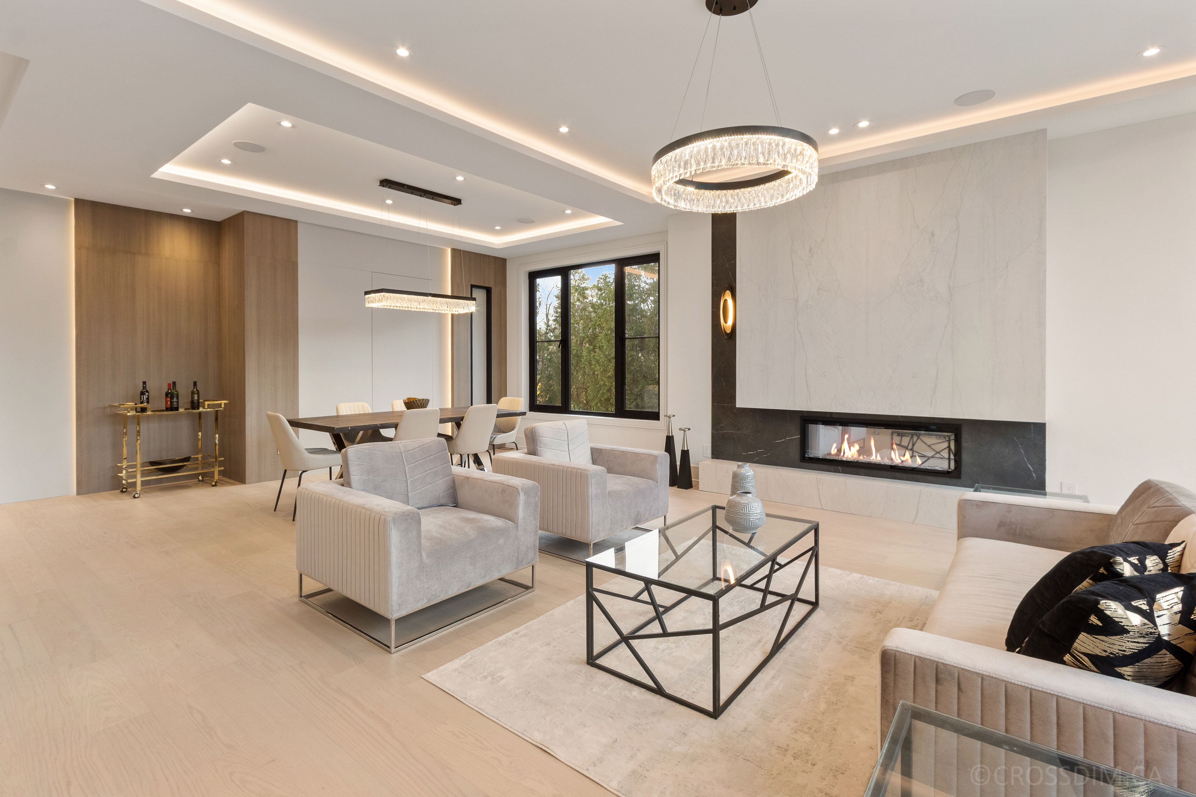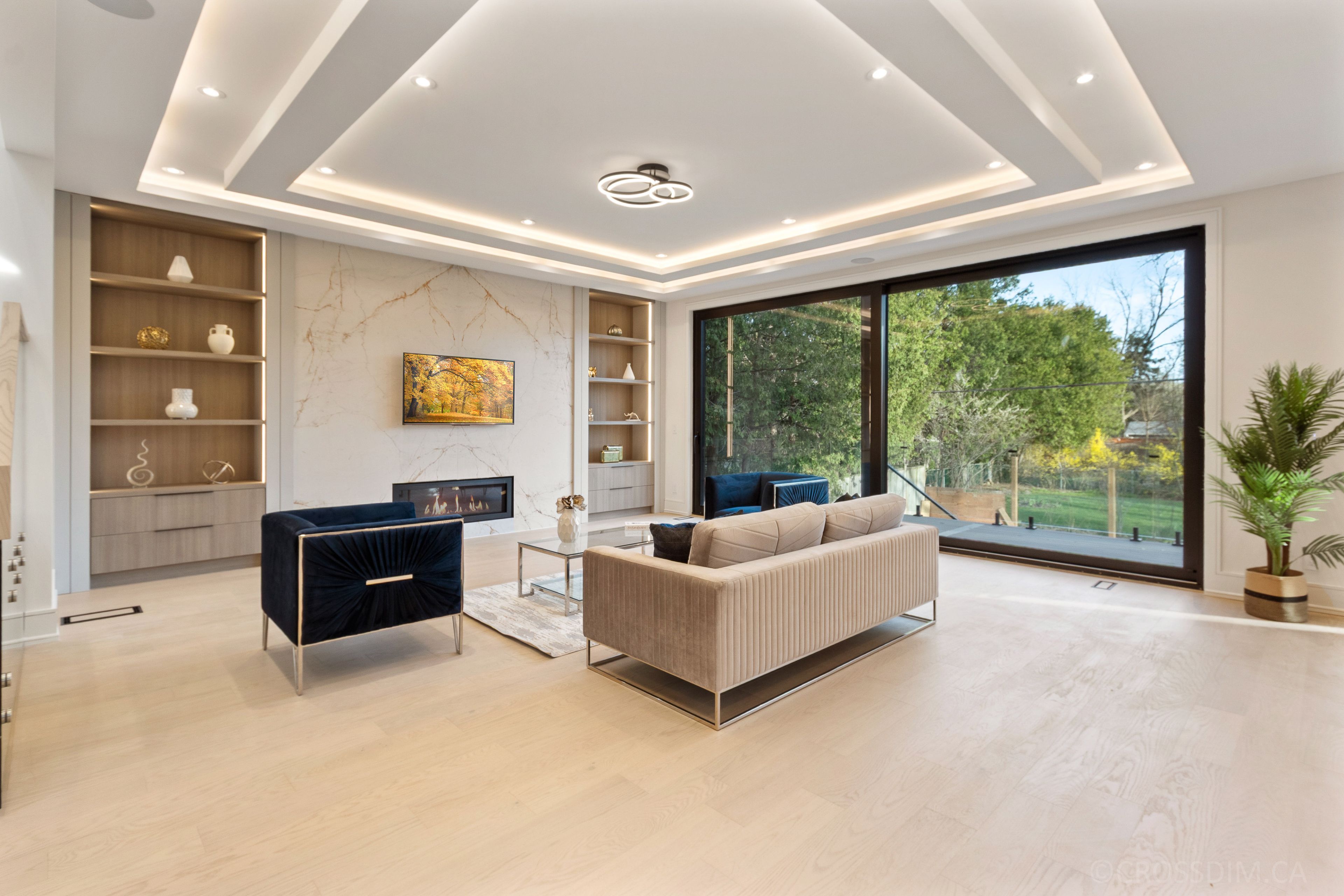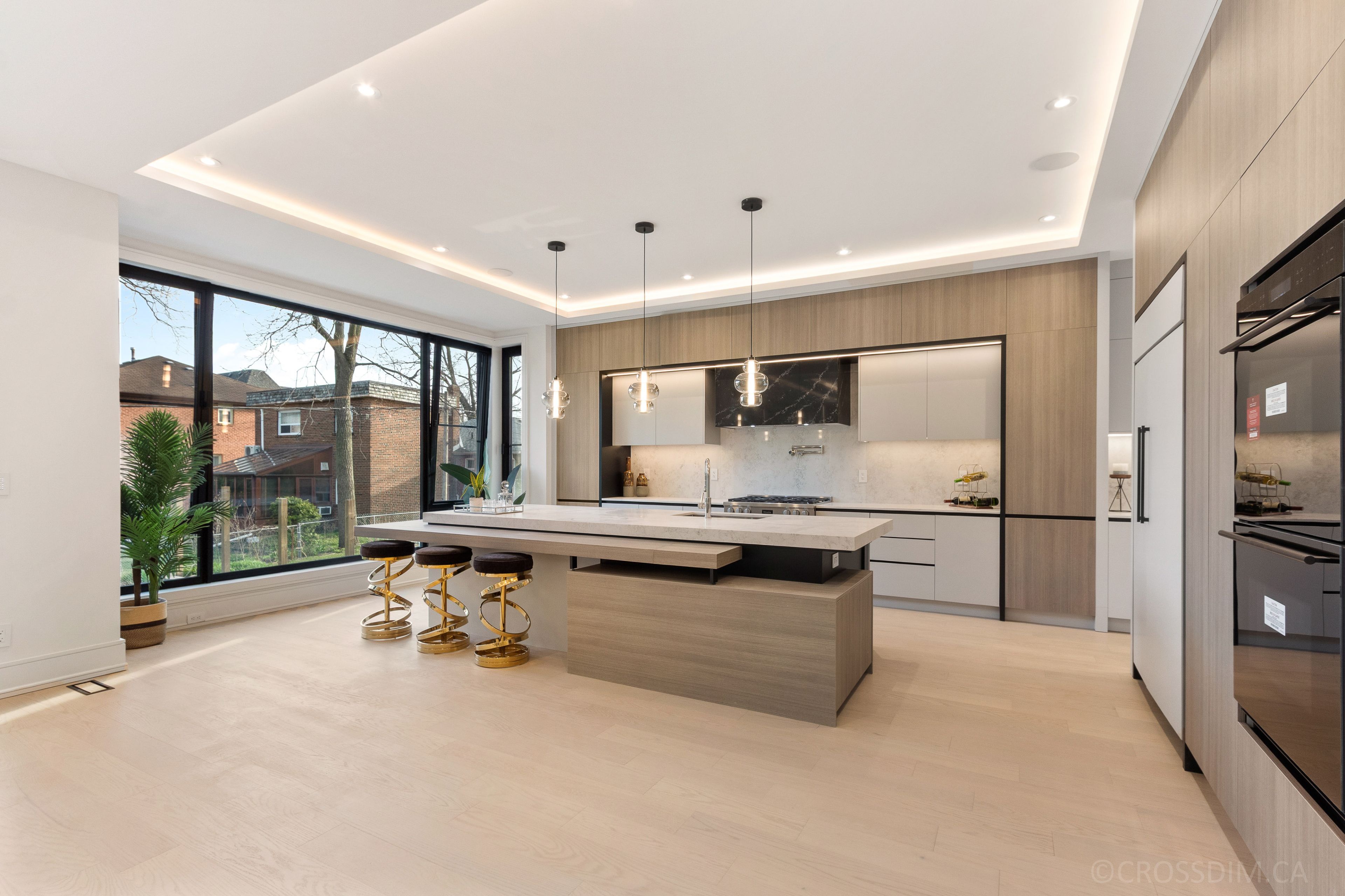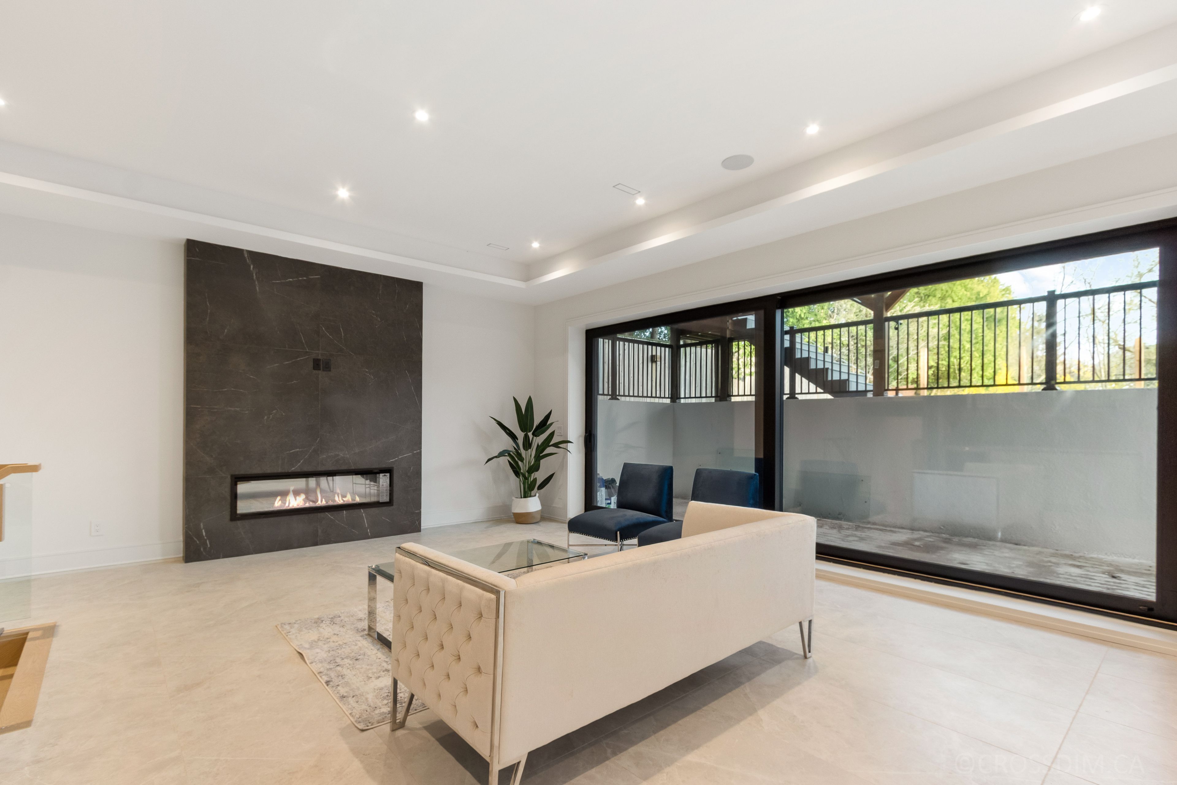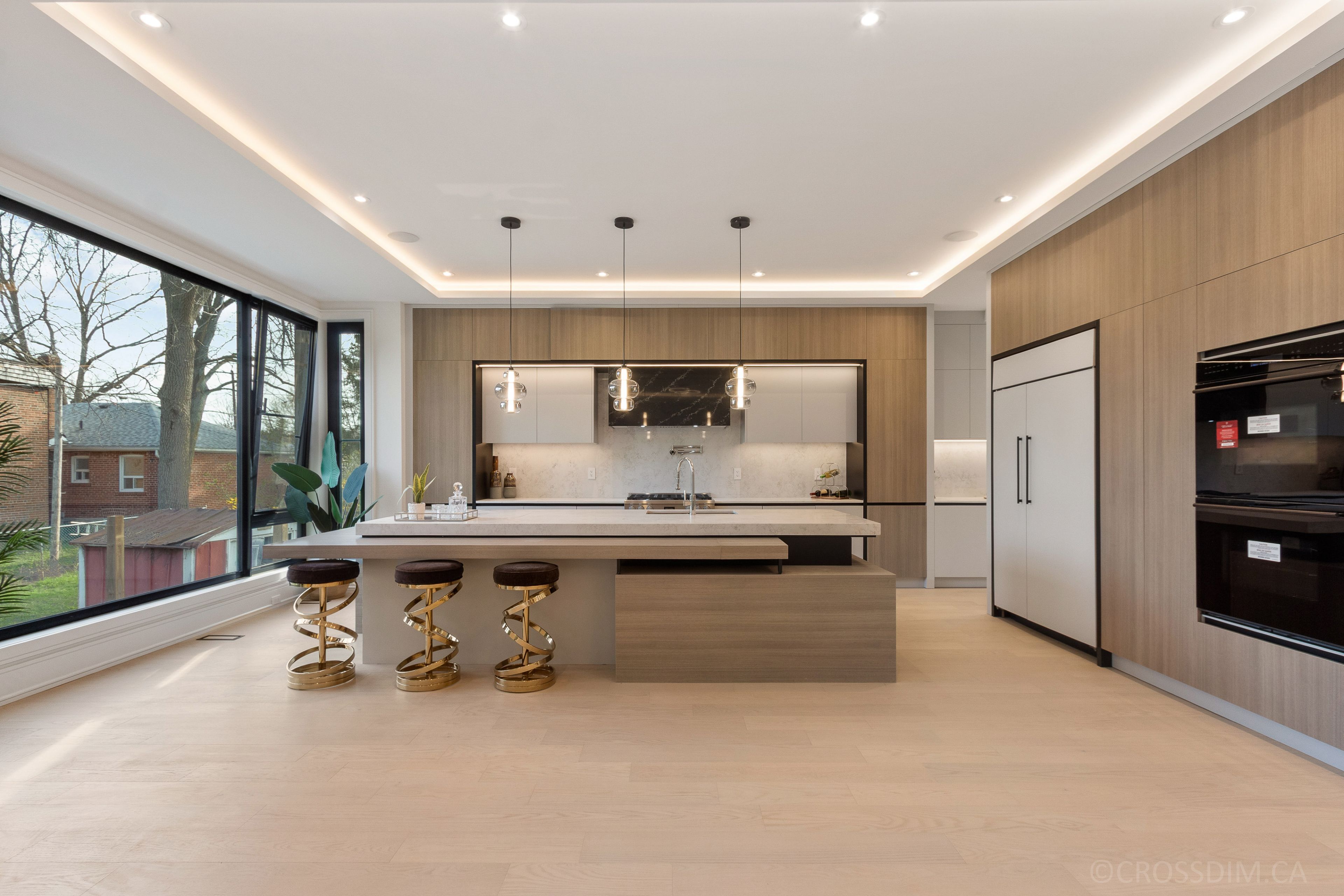 • Bright interiors featuring floor-to-ceiling windows and multiple skylights.