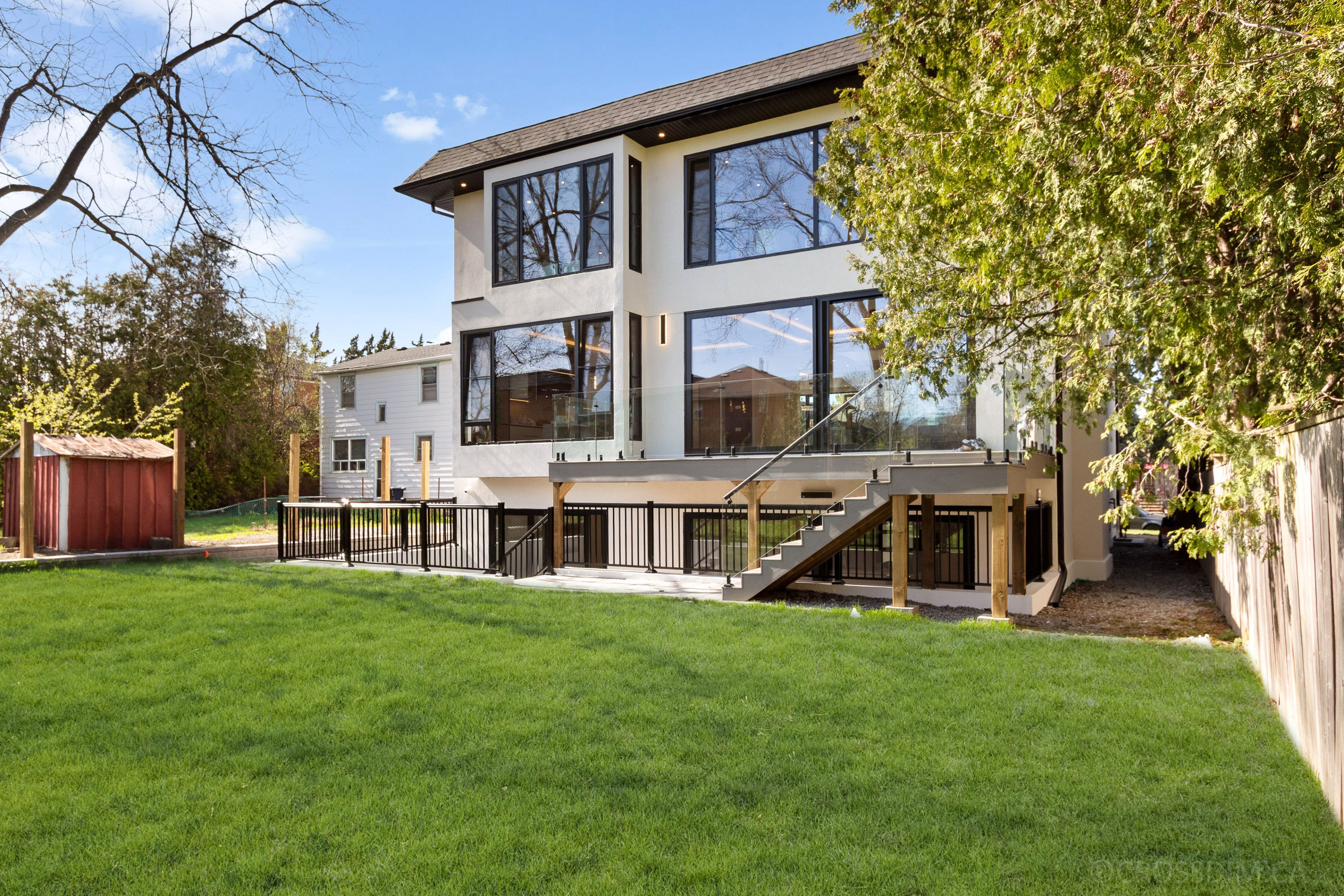 Welcome to this showstopping, custom-built modern masterpiece, situated on a large 53' wide lot, in the heart of the coveted willowdale west. Exceptional home features throughout, including 4500 sqft above grade, soaring 10' high ceilings, warm cove & led lighting, white oak hardwood floors, 4 skylights, 3 fireplaces, floor-to-ceiling windows, spacious & well-appointed floor plan, and an abundance of natural light flowing in. Complete with a convenient & accommodating elevator, to travel between floors with ease! Enter this magnificent property and be greeted by the elegant living and dining rooms, with extensive detailing: tray ceilings & warm lighting, a cozy fireplace, built-in speakers, pot lights, and unobstructed views through the vast windows. The main-level office provides a beautiful, private working space. Continue on to the sublime eat-in kitchen, fully-equipped with a sizeable island, high-end built-in appliances (see inclusions), quartz counters, a large servery, and gorgeous view of the backyard. Further, the immaculate family room features a gas fireplace, built-in speakers & shelves, exquisite design, and a walk-out to the deck. Upstairs, 4 bedrooms and a convenient laundry room grace the second floor. Each bedroom comes complete with its own ensuite -- including the sophisticated primary room, a quiet retreat that features a spectacular view, a huge walk-in closet with a skylight, and luminous 6 piece ensuite with heated floors & freestanding tub. Downstairs, the finished, walk-out basement offers the perfect entertainment space. The grand recreation room includes heated floors, a built-in wet bar area with a drink cooler, fireplace, and a walk-out to the backyard! And, discover a relaxing sitting area, an additional bedroom, and two bathrooms -- providing even more living space. Experience pure luxury and leisure; only minutes to high-ranking schools, tranquil parks, and much more.