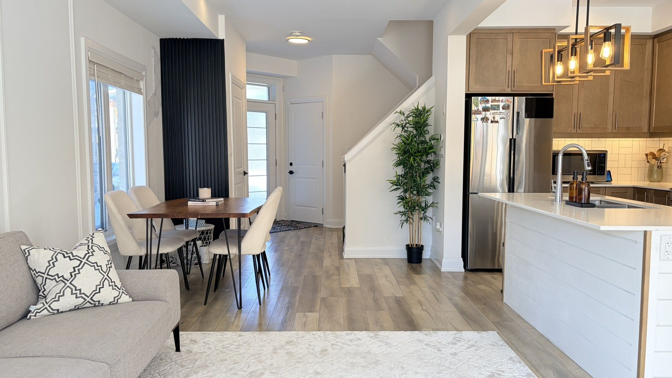 Welcome to this exceptional 3-bedroom, 2. 5-bath freehold end-unit townhome built in 2022 by renowned losani homes. With only one owner since 2023, this property has been meticulously cared for and thoughtfully upgraded throughout. Boasting approx. 1,900 sq. Ft of living space (above & below grade combined). This house offers the feel of a detached home thanks to its oversized 1. 5 - car garage with ev charger outlet installed, extra-wide driveway, this home stands out for style, space, and functionality. The main floor features 9 ft ceiling, elegant wainscoting, and an open-concept layout filled with natural sunlight. A modern kitchen showcases quartz countertops, quality finishes, and a bright breakfast area overlooking the backyard. Pot lights on all floors - inside and outside - create a warm and inviting ambiance day and night. Upstairs, enjoy three spacious bedrooms including a large primary suite with a walk-in closet and a beautifully upgraded ensuite with quartz counters. The convenience of upper level laundry adds to the home's practicality. The finished basement provides additional living space and offers potential to be converted into a future rentable suite. Step outside to a fully fenced backyard, complete with a stylish floating deck, perfect for relaxation and outdoor entertaining. Located in a family-friendly brantford community close to parks, trails, schools, shopping, and major roadways, this home offers the perfect blend of comfort, modern features, and great curb appeal. This is truly a move-in-ready home that checks all the boxes, come see it in person and experience everything it has to offer!