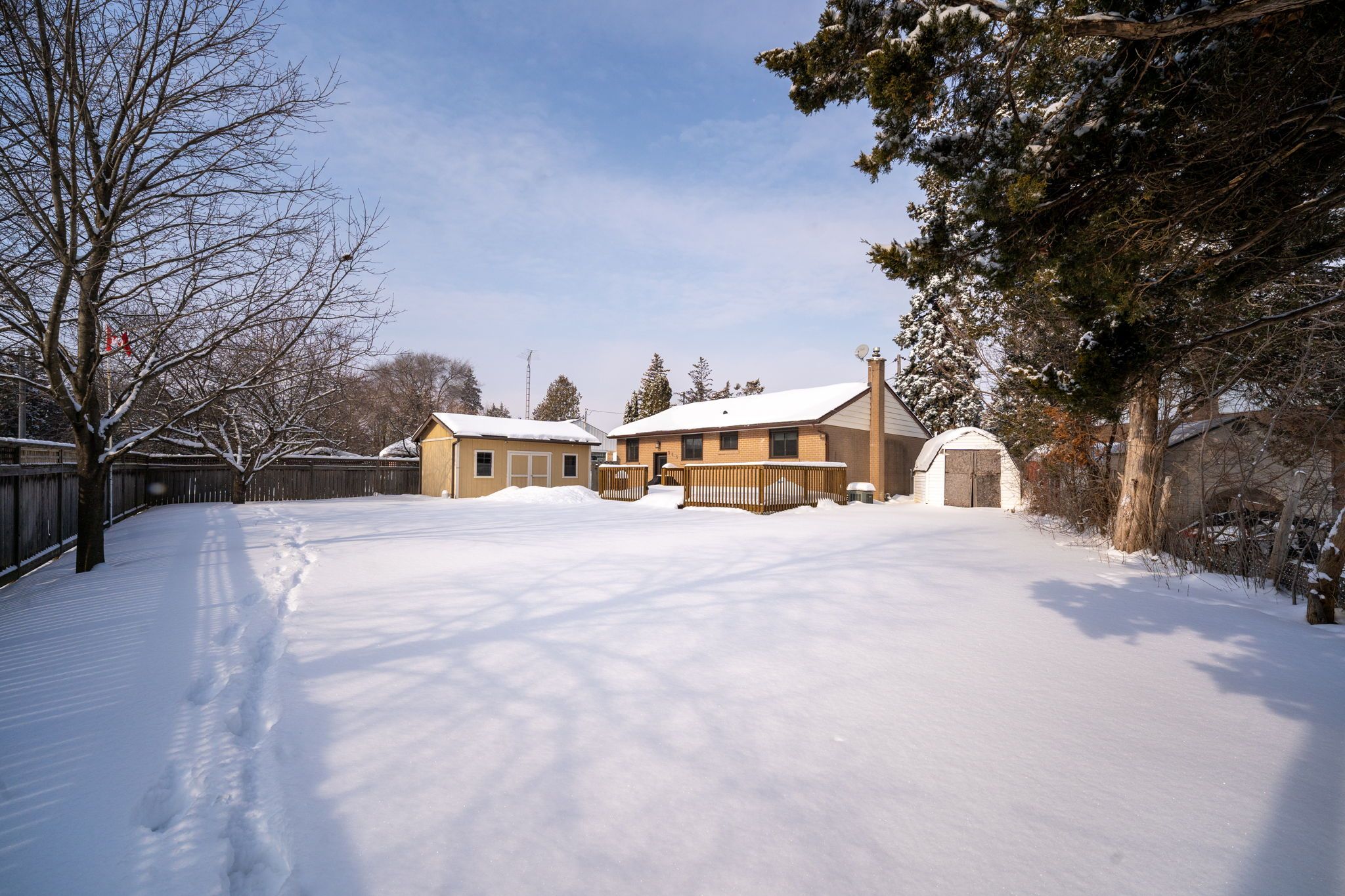Welcome to 205 martha crescent in the sought-after bolton west community! Set on an oversized pie-shaped lot with a 50 ft frontage and a backyard widening to over 80 ft across the rear, this lovingly maintained home reflects true pride of ownership while offering outstanding outdoor space to design your own private green space retreat. From the moment you arrive, the curb appeal impresses with a newly finished stone walkway, mature trees, and a spacious 5-car driveway. Step inside to a bright main level filled with natural light, gleaming hardwood floors, pot lights, and a flowing open-concept layout. The welcoming living room with large windows connects effortlessly to the dining area just off the updated galley kitchen. Ideal for the home chef, the kitchen offers generous cabinetry, a pantry, stainless steel appliances, microwave hood fan, hardwood flooring, and a window overlooking the backyard. The main level also includes a primary bedroom, two additional well-sized bedrooms, and an updated 3-piece washroom. The lower level, featuring a separate private rear entrance, opens onto a charming stone patio with direct access to the back deck and the heated, powered utility workshop. The fully fenced yard offers incredible potential with a large deck for outdoor entertaining, beautiful mature trees for extra privacy, and a spacious heated workshop-perfect for storage, hobbies, or home projects. The lower level also features a fourth bedroom, a large open recreation space, ample storage, and a 3-piece washroom, ideal for a growing family, multi-generational living, or an in-law or nanny suite. Located close to parks, schools, shops, and minutes from historic downtown bolton, this is a wonderful opportunity to call a special property home truly rare find in bolton