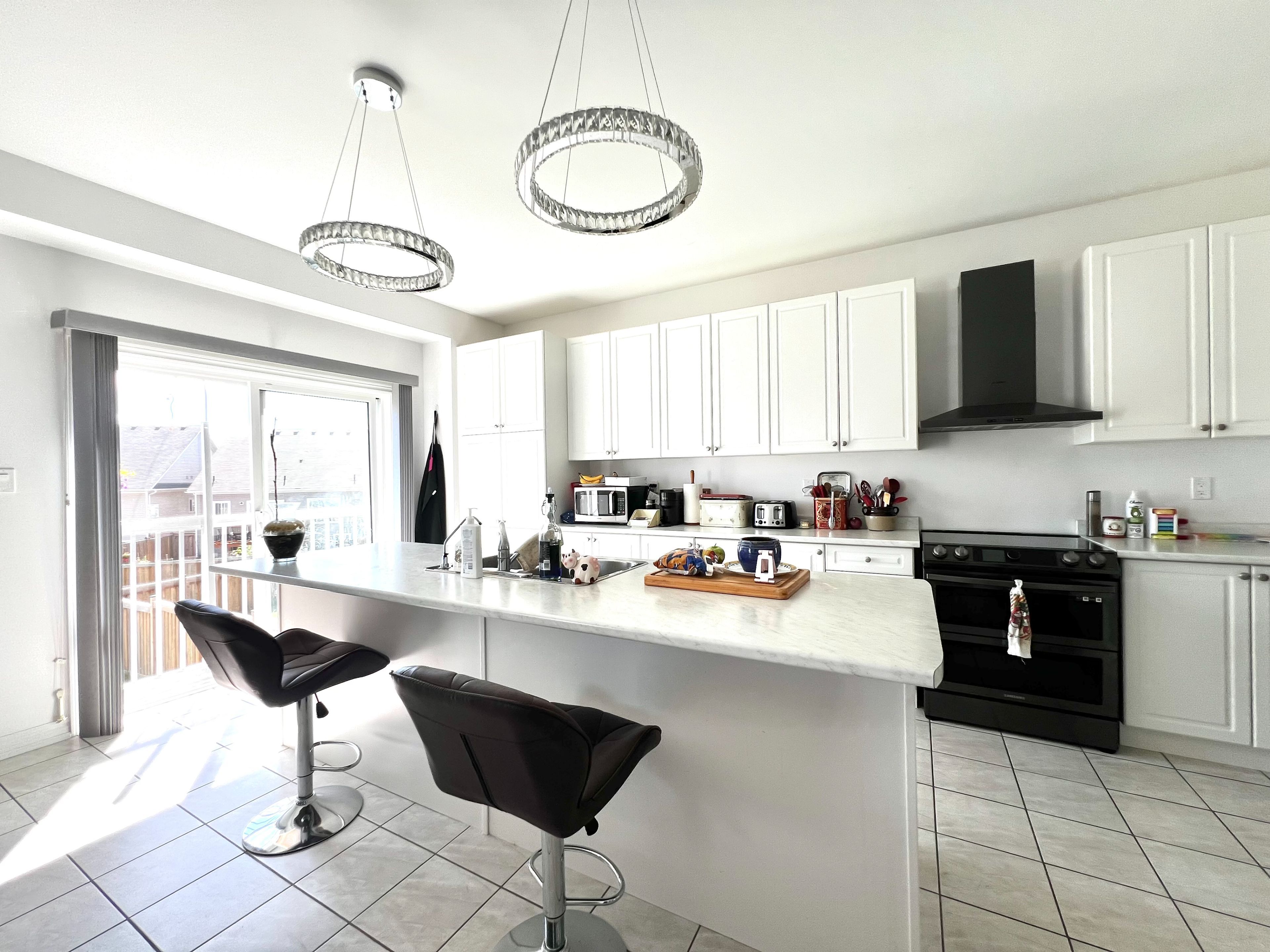 • Spacious kitchen with ample countertops and an 8 ft island.
