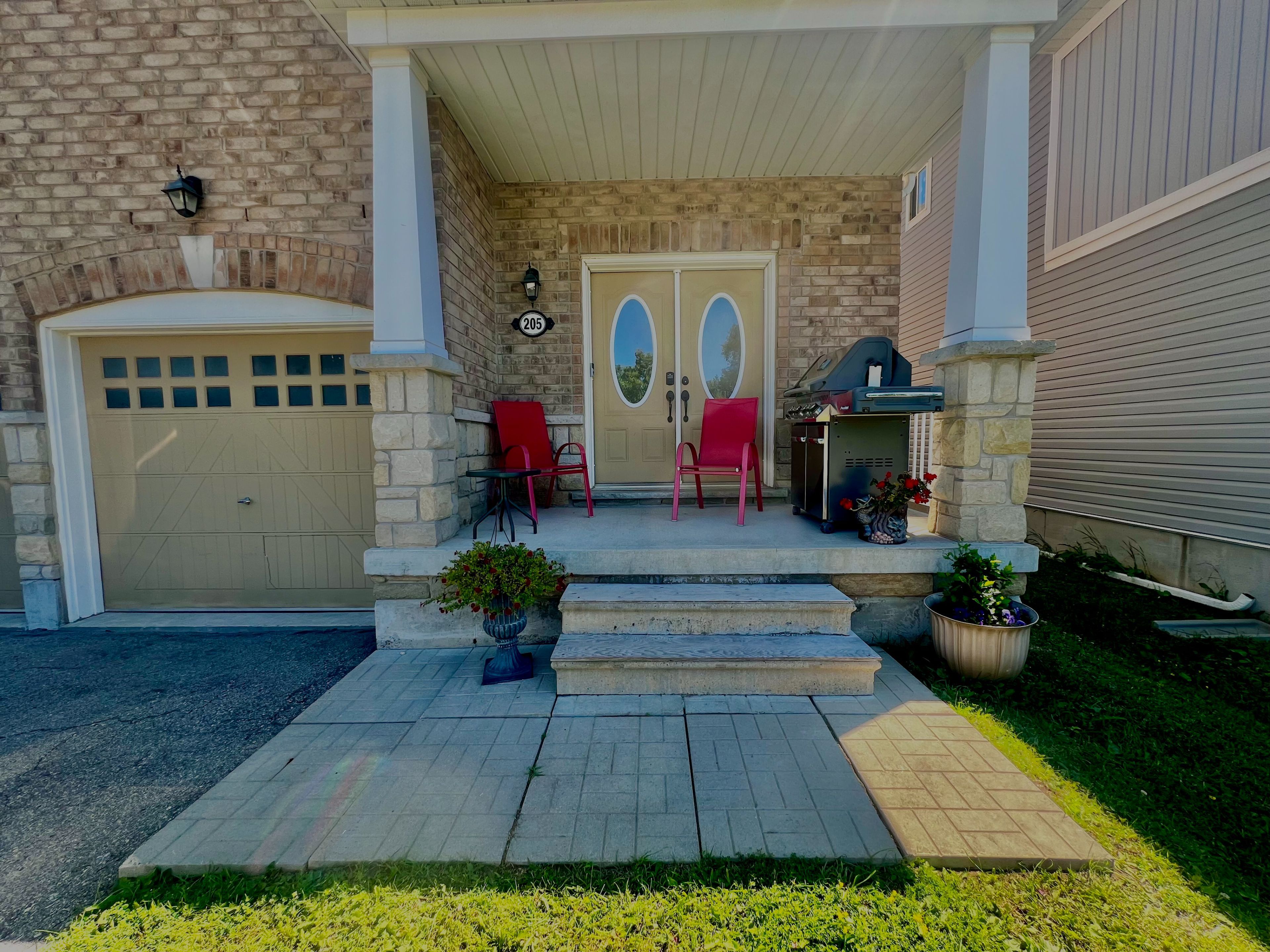 Welcome to 205 morden drive! Elegant 4 bed/ 4 bath, all brick, 3200 sq. Ft thornbury model. Formal dining room with 2 separate family areas, feat. Oak staircase with new vinyl flooring and bright large windows, giant walk in closets, generous sized master bath with walk in glass shower. Convenient upstairs laundry. All 4 bedrooms have adjoining ensuite bathrooms. Kitchen feels like miles of countertops with separate 8 ft island breakfast bar. W/o from the kitchen to the fully fenced backyard. Premium sized lot. Large 2car garage has its own mudroom entrance with access to the unfinished walkout basement for those seeking +1200 sq. Ft of separate living area. Great potential for basement apartment or in-law suite.