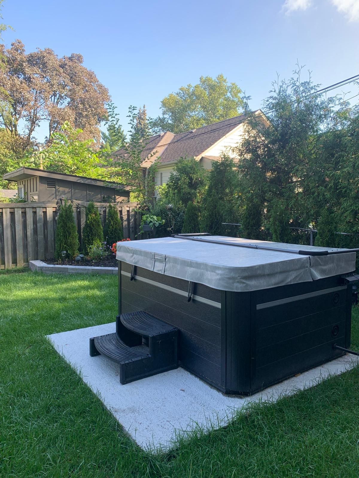 • Backyard oasis features landscaping, pergola, hot tub, and cedar cabana.