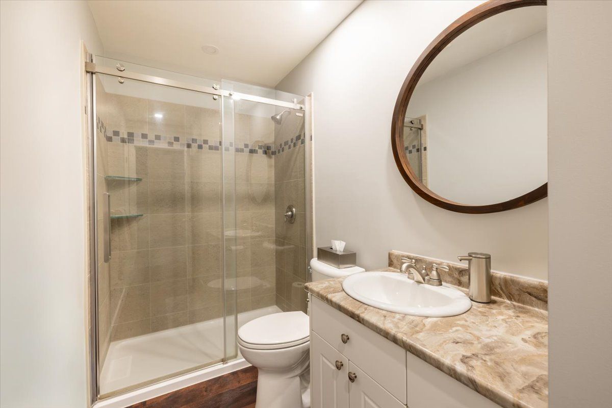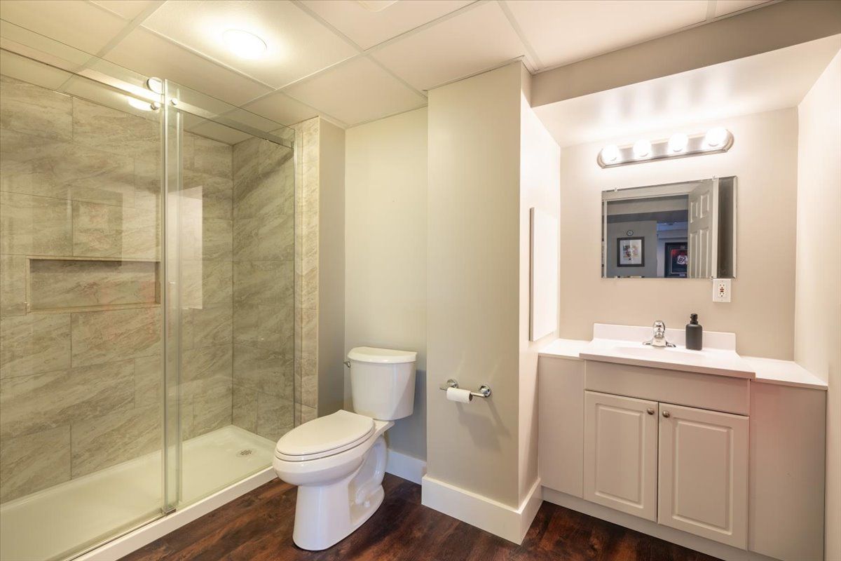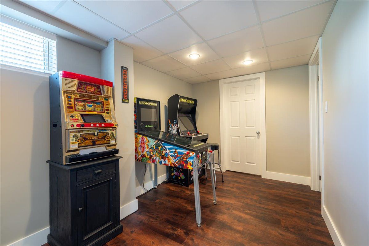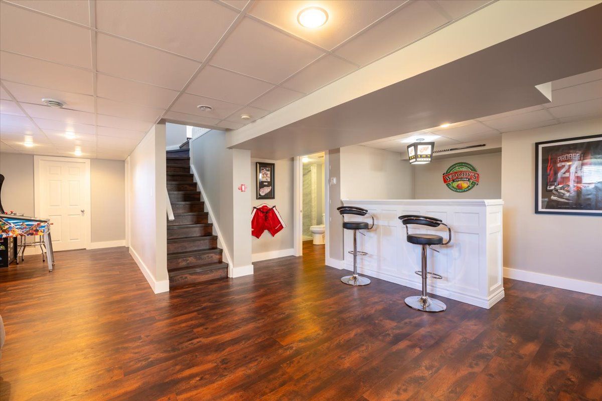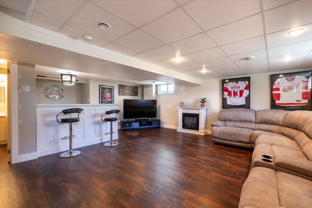 • Spacious lower level with rec room, electric fireplace, and bar.